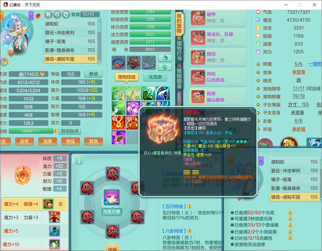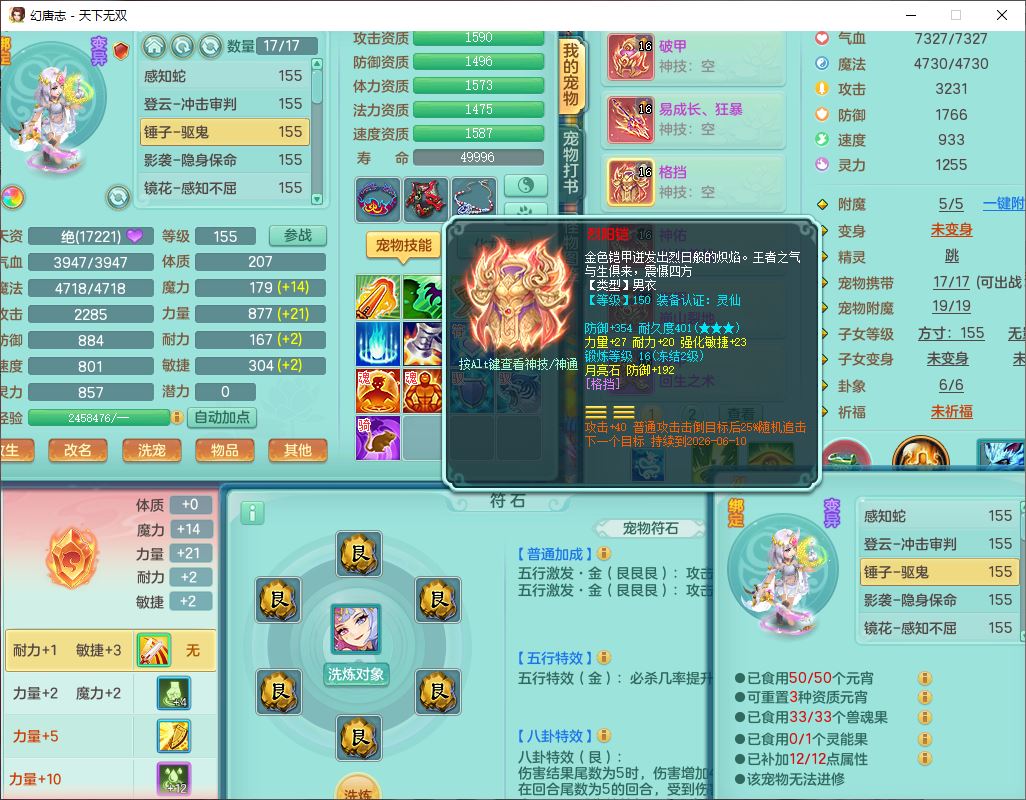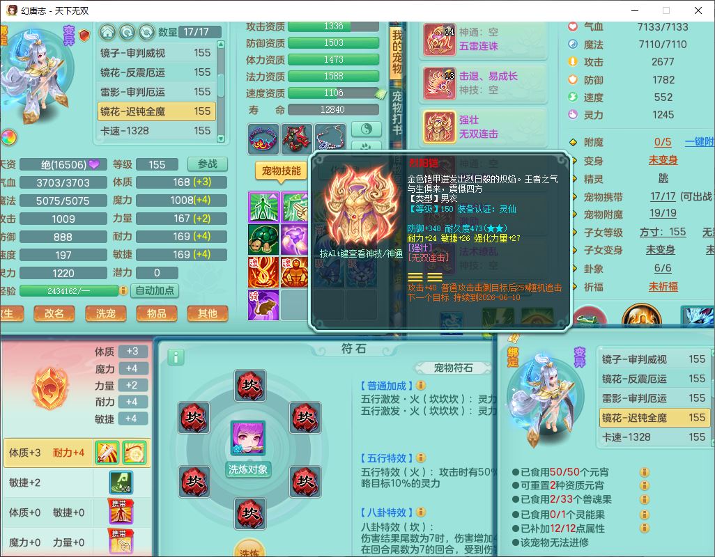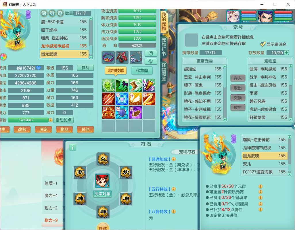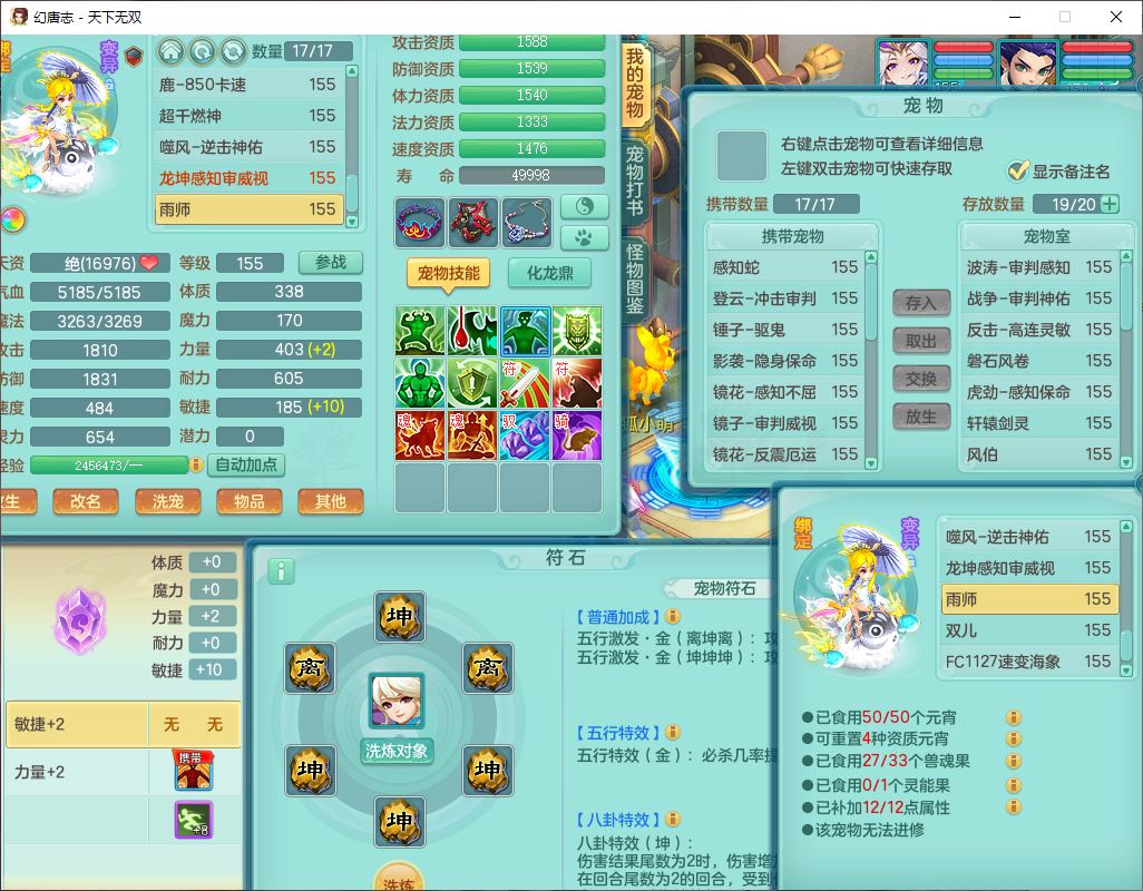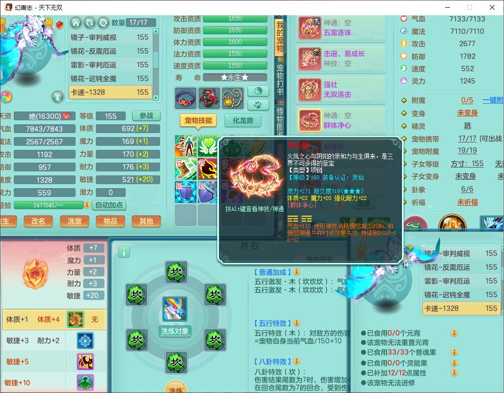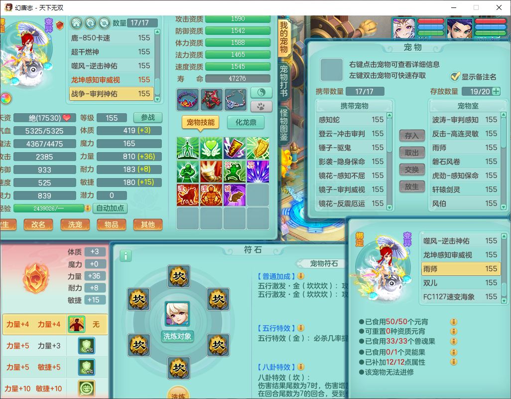 24321天下无双159男天宫【潜龙号+暴龙洪荒+西瓜冰】精灵歌,1龙(换,无内)1内丹青蛇8特殊(破碎、影袭、号角、噬风,兽决飞花、以战、双星、怒破)5镜花灵1龙姬1金炉,21觉醒4宠皮17六字3四字综合21只满果子,17格子,10红双破甲星辰之拥装备,,单加Y狂暴武器,破甲帽子,格挡衣服,神佑以战项链,指挥崩山腰带,破甲回生鞋子,一套法系装备,Y击退武器,法缭衣服,五雷帽子,法缭鞋,鼎6.0+70+280,房屋166,永久外观精灵皮肤,31内丹碎片,360w神武币,宠排在榜,7只双人坐骑