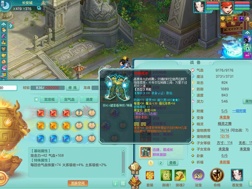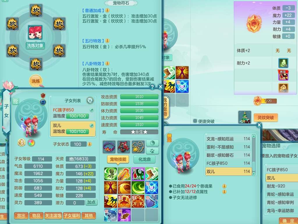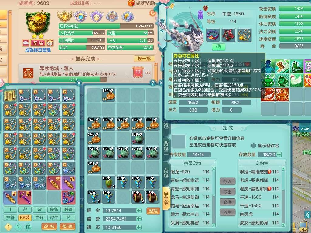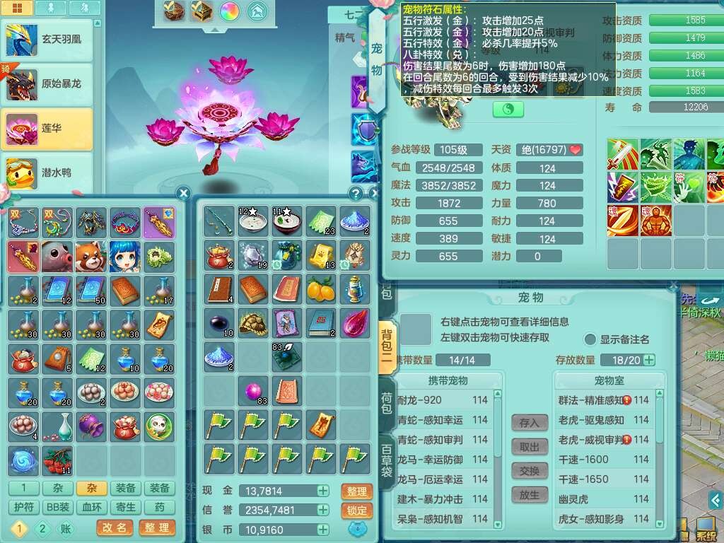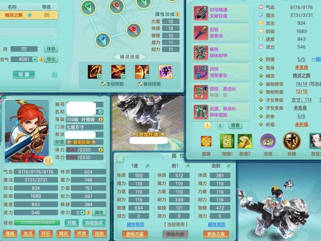 p22323,2020区109男方寸,精灵舞,1龙无内,4内胆神(2蛇2马),1神兽+44神兽内胆碎片,【11只觉醒,已潜龙】,7宠皮,愤怒易成长单加腰带,三红迅捷易单加鞋子,封印四海单加头,格挡群体卸甲单加衣服,药师慈航单加项链,封锁驭兽决武器,星辰之拥,3.0基础鼎+42攻+168血,8个纯六字,2个五字,25只满果子,宠排在榜,4只坐骑,暴龙逍客,带104天月卡。带个109男天策奶粉,双人坐骑。