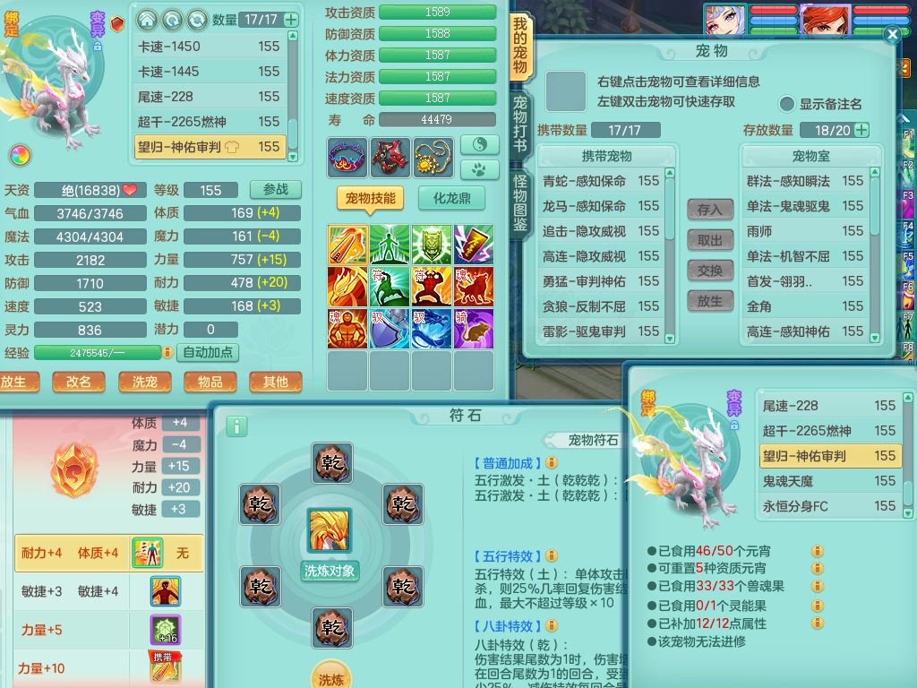 tx10421天下无双159男方寸【潜龙号】精灵舞,4字靓号,2套星穹,3内丹龙2内丹神(1蛇1马)1皮,1特殊(冲锋)4镜花灵,17格子25只满果子13觉醒9个纯6字,10红愤怒6特,Y流云头,Y止戈衣服,愤怒水清腰带,Y晶清鞋,Y四海项链,鼎5.5+70+280,41天月卡,庭院154,永久外观精灵皮肤,29内丹碎片,5坐骑(2只双人)
