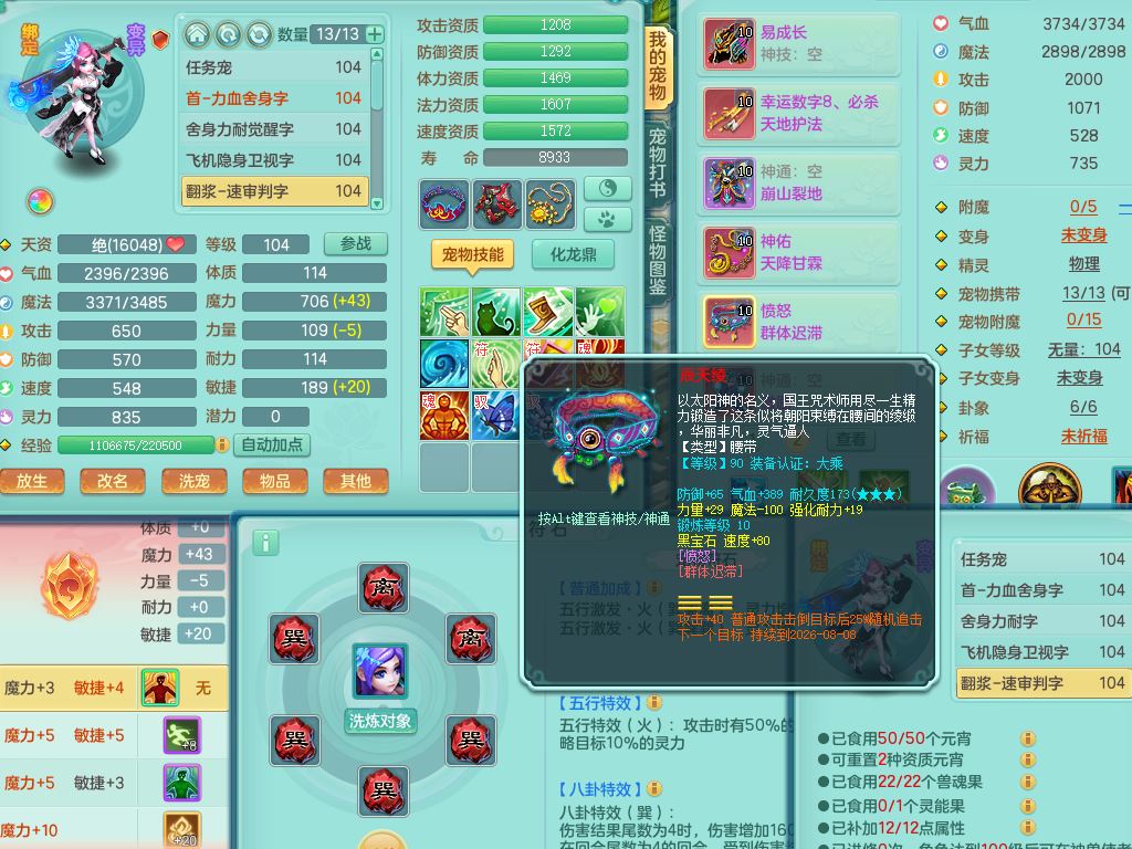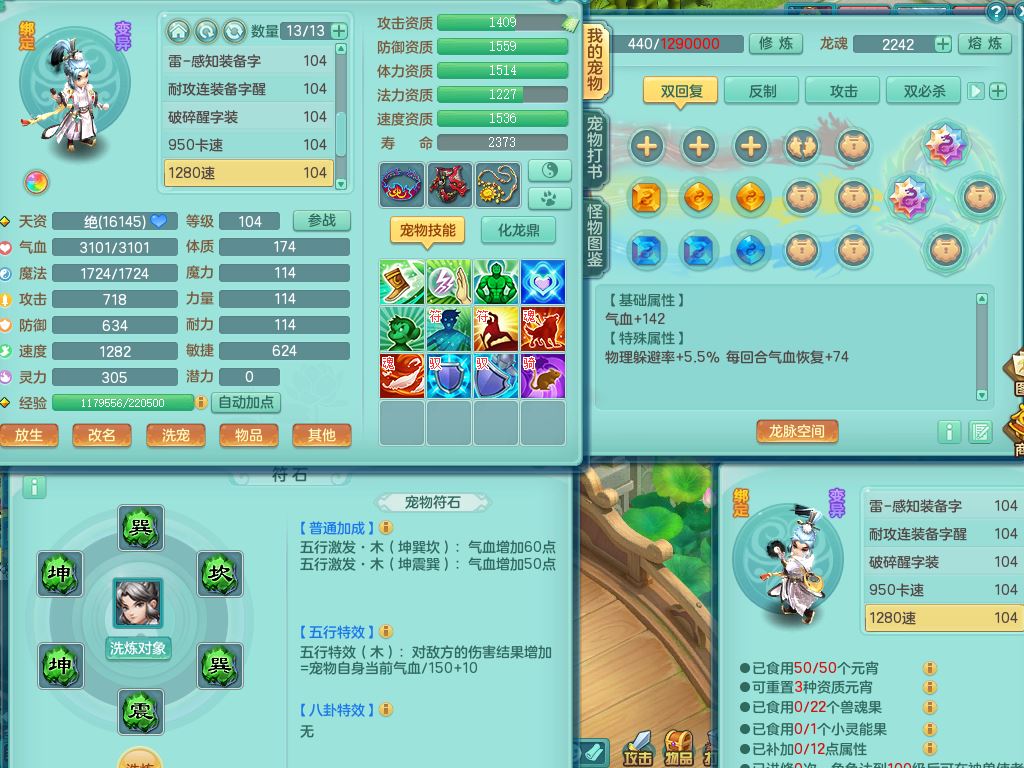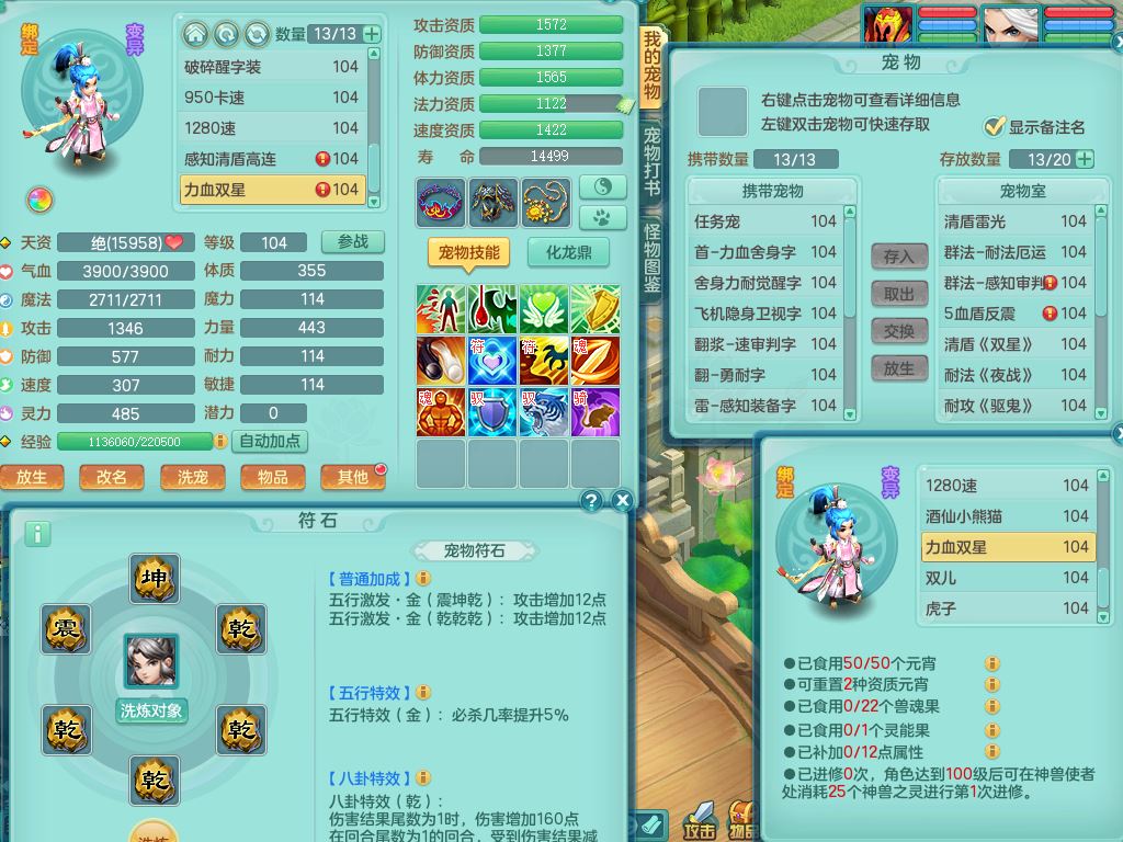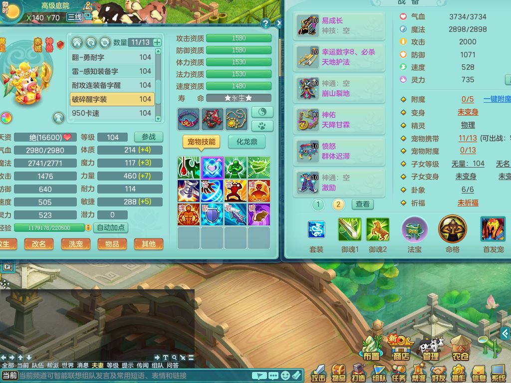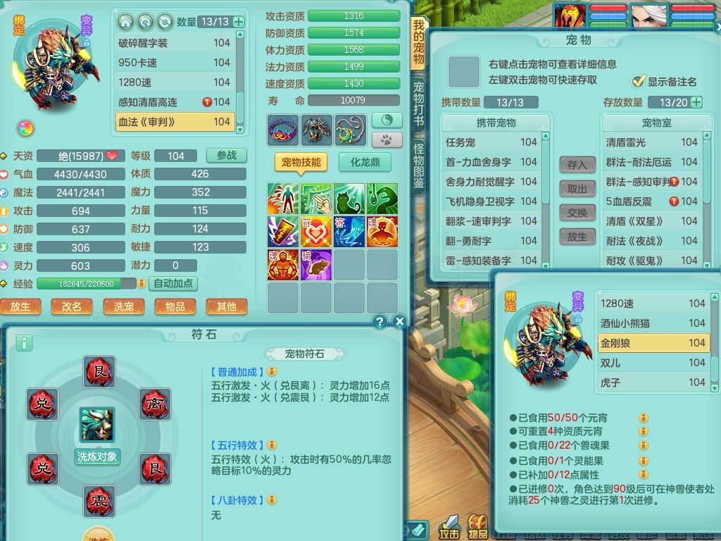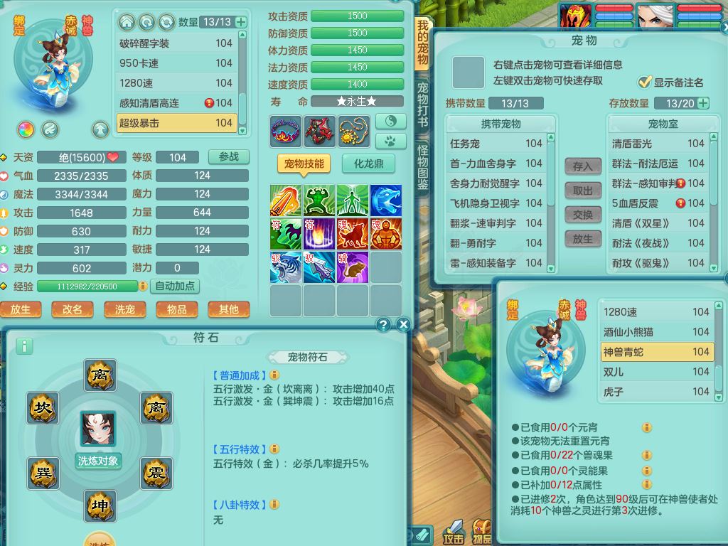 tx10423天下无双99男天策3系精灵,1内丹神1青蛇无内,7只满果子8觉醒2个纯6字,全身单加10红,537幸运必杀罗汉武器,崩山衣服,神佑四海项链,愤怒双红腰带,鼎2.5+42,精灵皮肤,双人坐骑