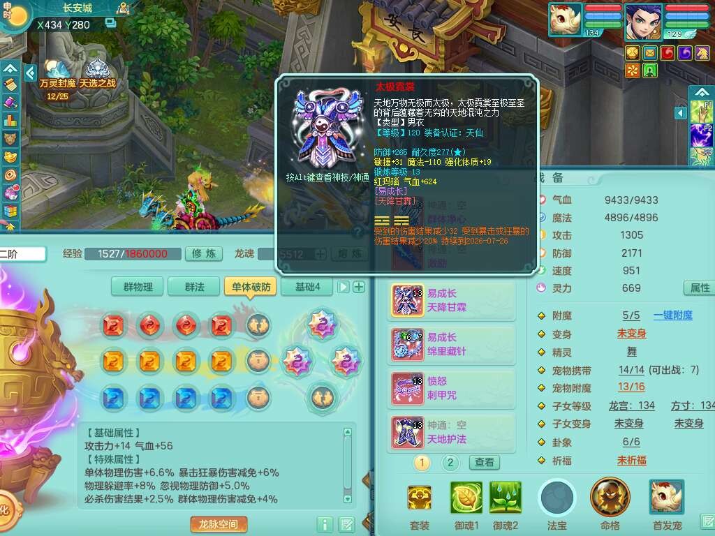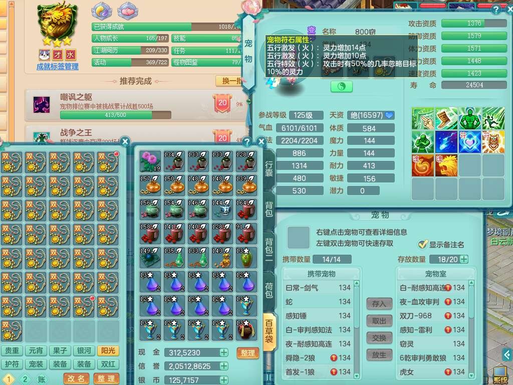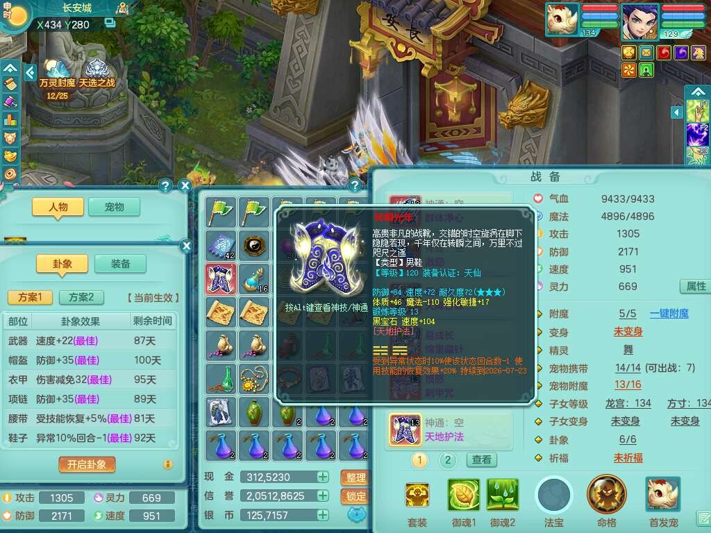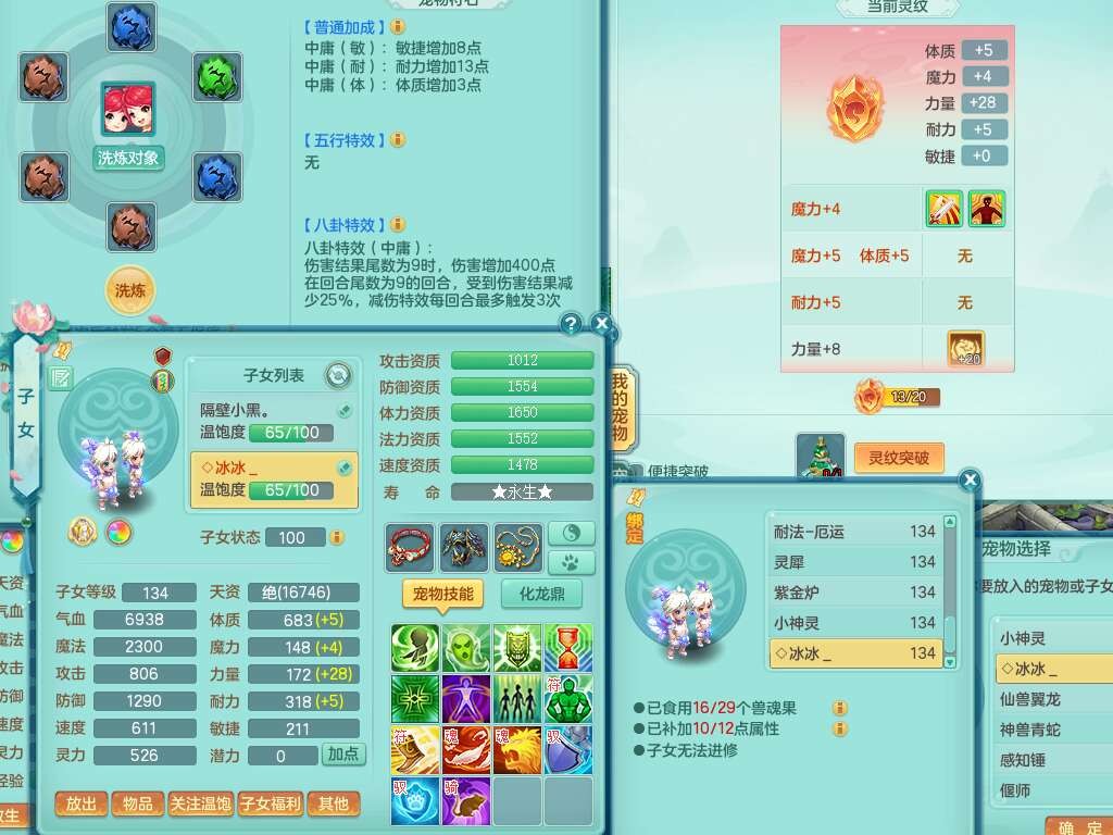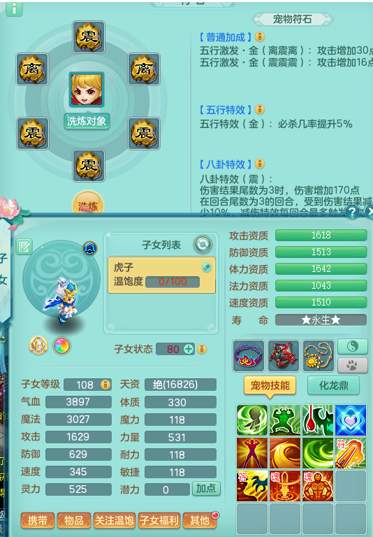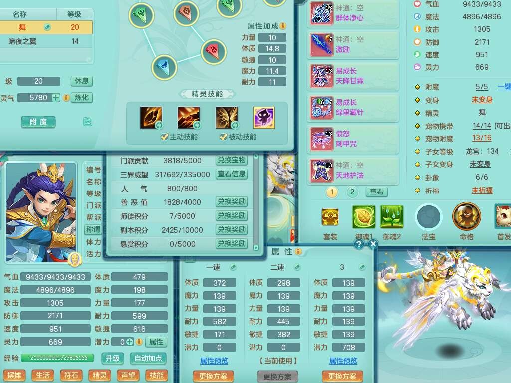 K22337花好月圆129男普陀,精灵舞,1灵2内胆神(1蛇),6觉醒,易成长四海单加衣服,易成长笑里链子,愤怒刺甲咒单加45腰带,六特,4.0基础鼎+56攻,2个纯六字,12只满果子,宠排在榜,双人坐骑。