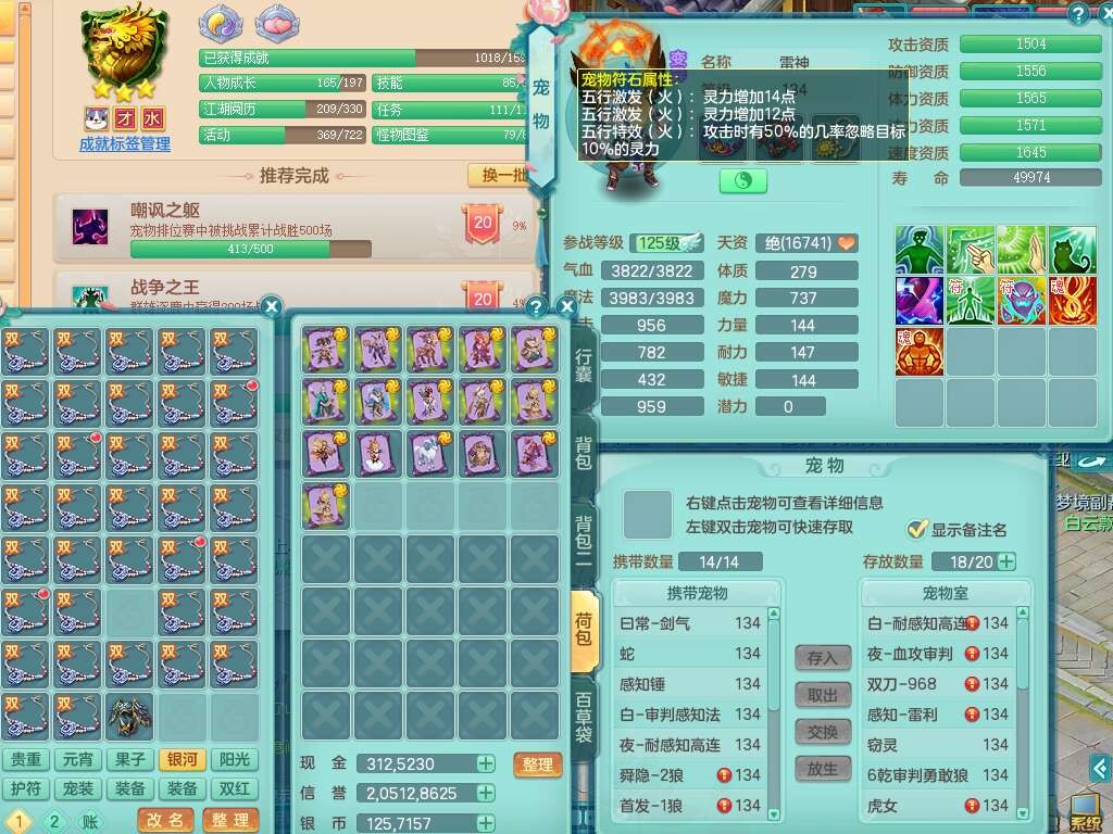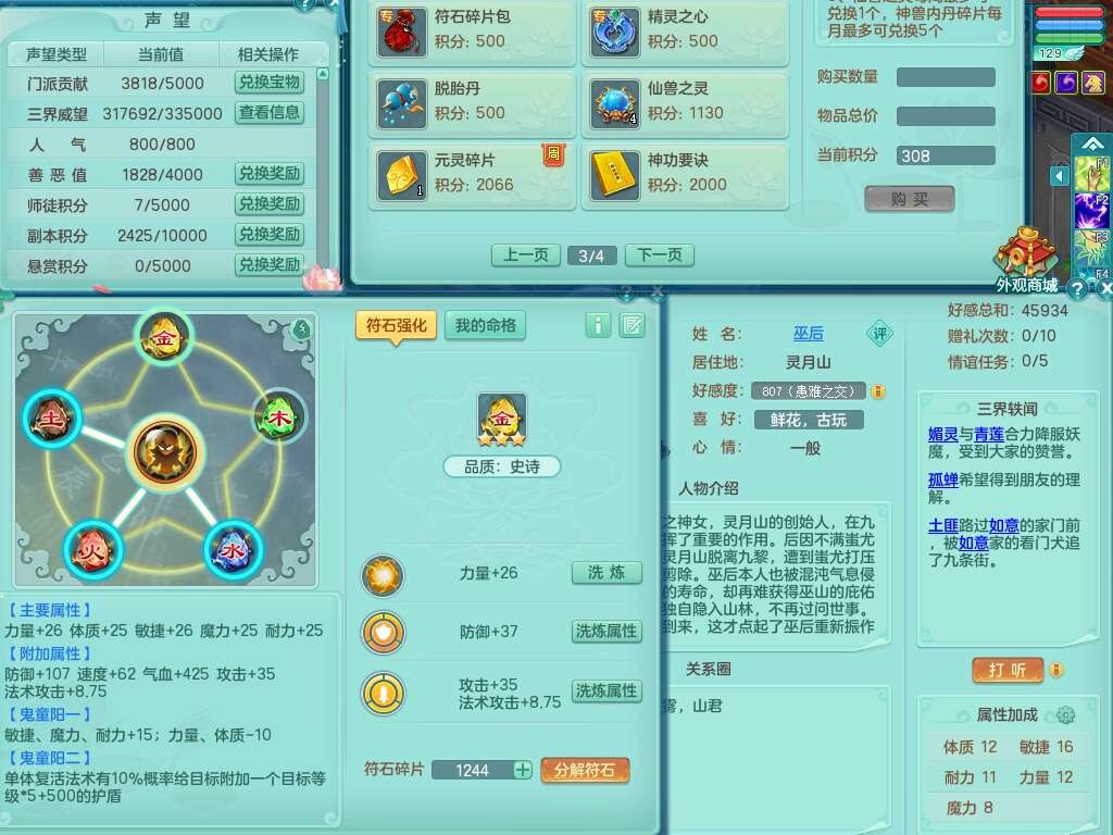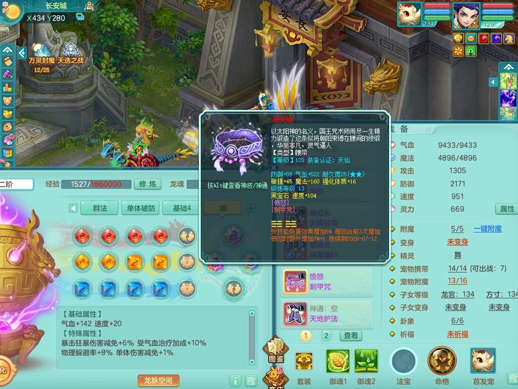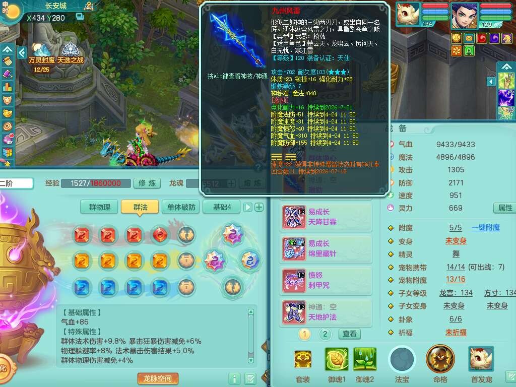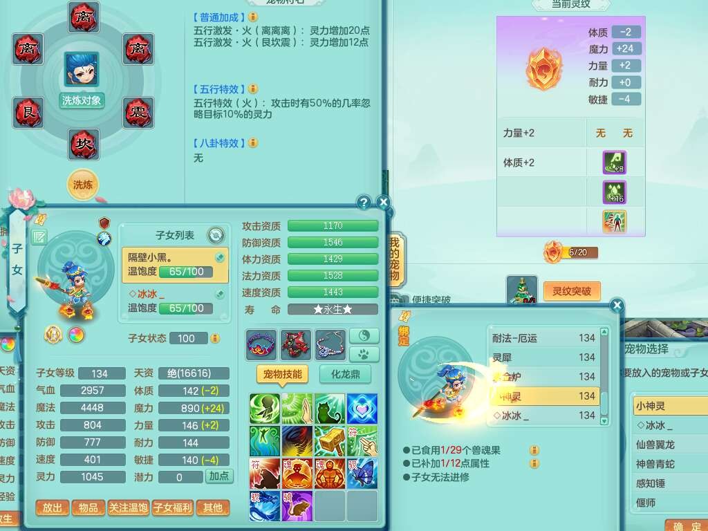 K22337花好月圆129男普陀,精灵舞,1灵2内胆神(1蛇),6觉醒,易成长四海单加衣服,易成长笑里链子,愤怒刺甲咒单加45腰带,六特,4.0基础鼎+56攻,2个纯六字,12只满果子,宠排在榜,双人坐骑。