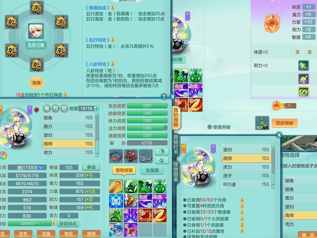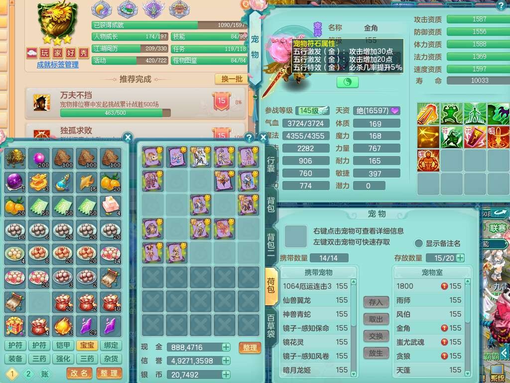 J22335风驰电掣159男无量,精灵舞,2龙(1龙没内),1内胆神,1神兽+30个神兽内丹碎片,5觉醒,2特殊(风卷,雷厉),3只六技能镜花灵,1只六技能龙姬,愤怒疾速腰带,易成长慈航单加50鞋子,五特,有愤怒单加54腰带,4.5基础鼎,1个五字,6只满果子,双人坐骑。➕159女五庄,精灵舞,2觉醒,3特殊(剑气,登云,勇猛),1只六技能镜花灵,易成长止戈单加57链子,震怒心神合一单加55腰带,六特,4.5基础鼎,带1246金币。➕159男鬼谷,精灵歌,1觉醒,易成长单加57头,法爆单加56武器,易成长玉清单加53衣服,易成长烽火单加55腰带,迅捷单加57鞋子,有24个神兽内丹碎片,1294金币。