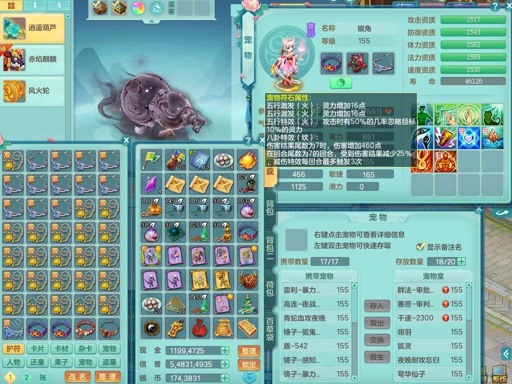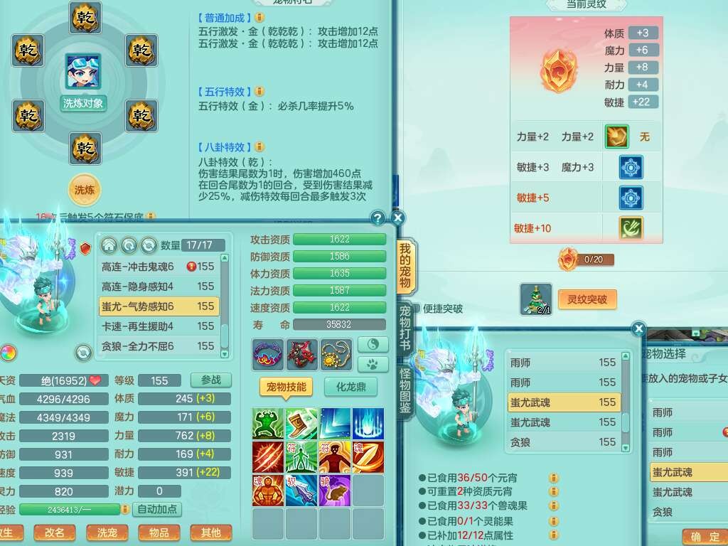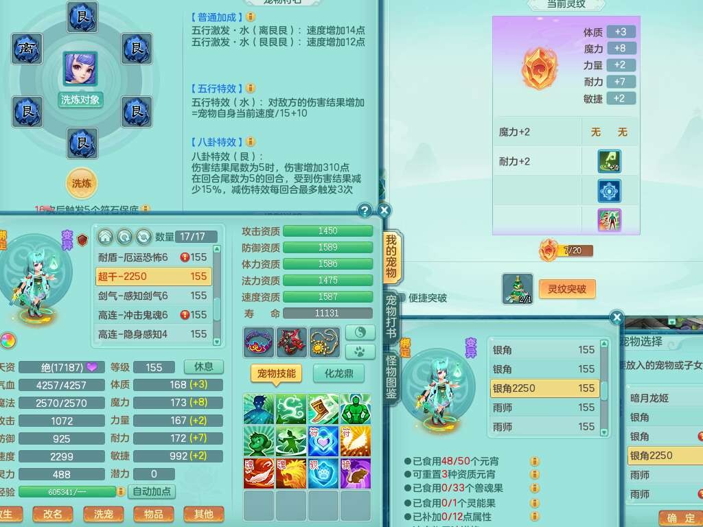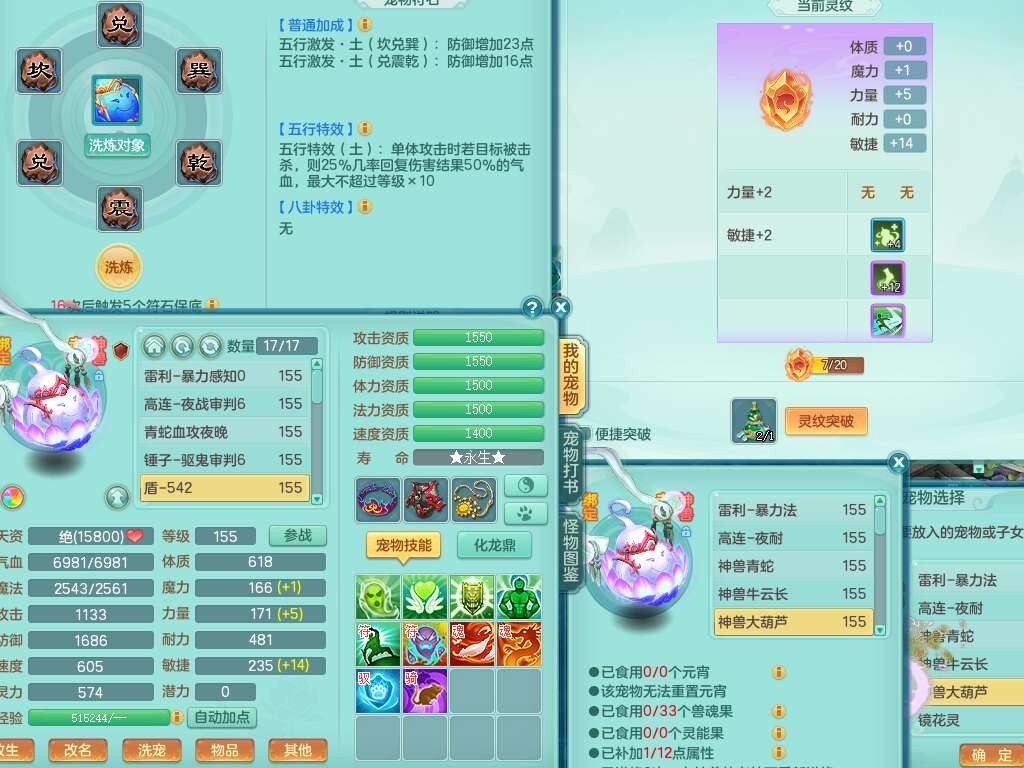 j22333今年勇159男万兽,精灵歌,2龙2内胆神(1蛇),2神兽+46个神兽内丹碎片,【7觉醒,已潜龙】,4宠皮,3特殊(锤子,上善,善恶),2只六技能镜花灵,2只六技能龙姬,易成长破血单加52头,913狂暴单加51武器,易成长单加55衣服,坚毅慈航链子,指挥易成长腰带,易成长守护鞋子,可玩愤怒六特,5.5基础鼎+70攻,280血,15个永久格子,12个纯六字,2个五字, 22只满果子,宠排在榜,经验在榜,2只双人坐骑,带174w神武币,63天月卡。带三个150奶粉。