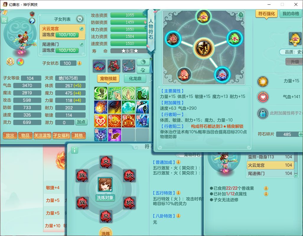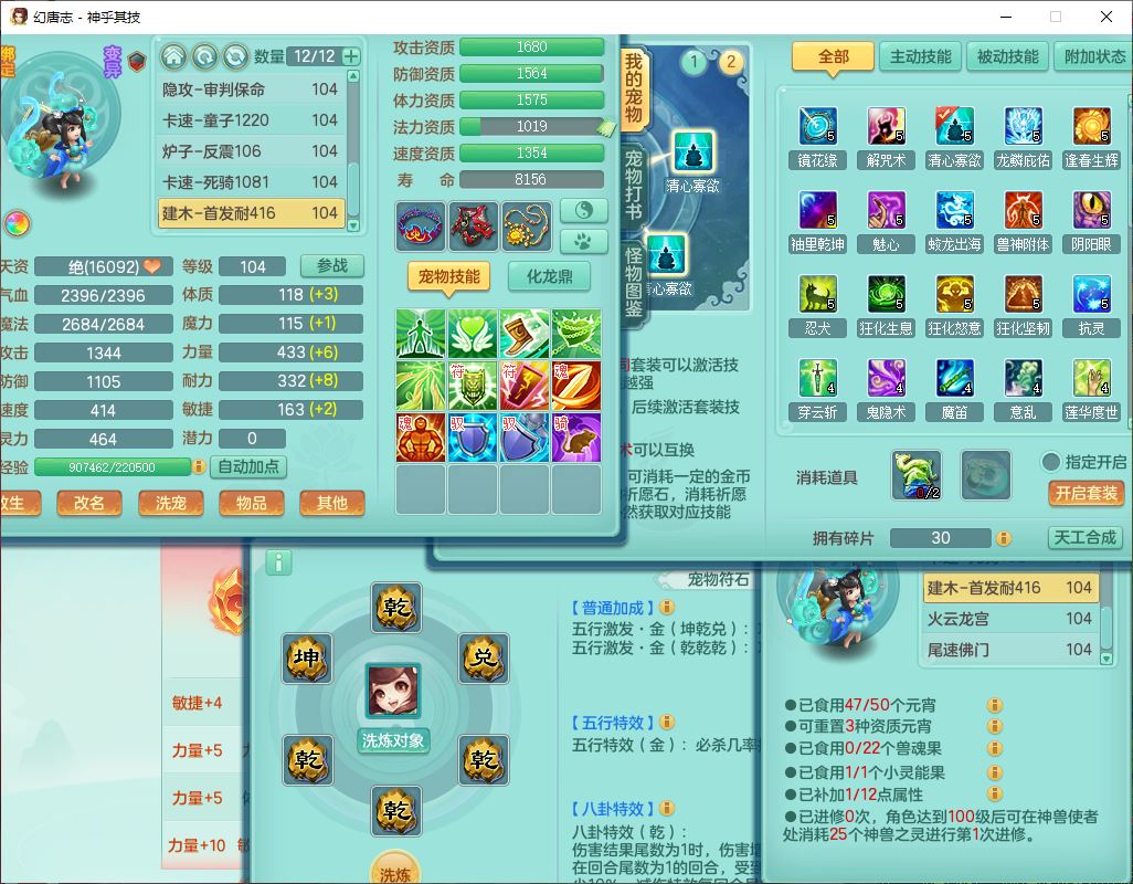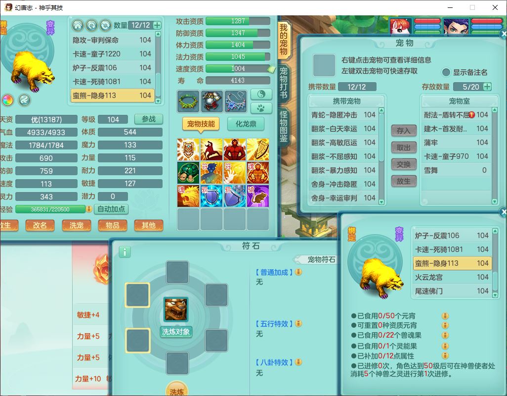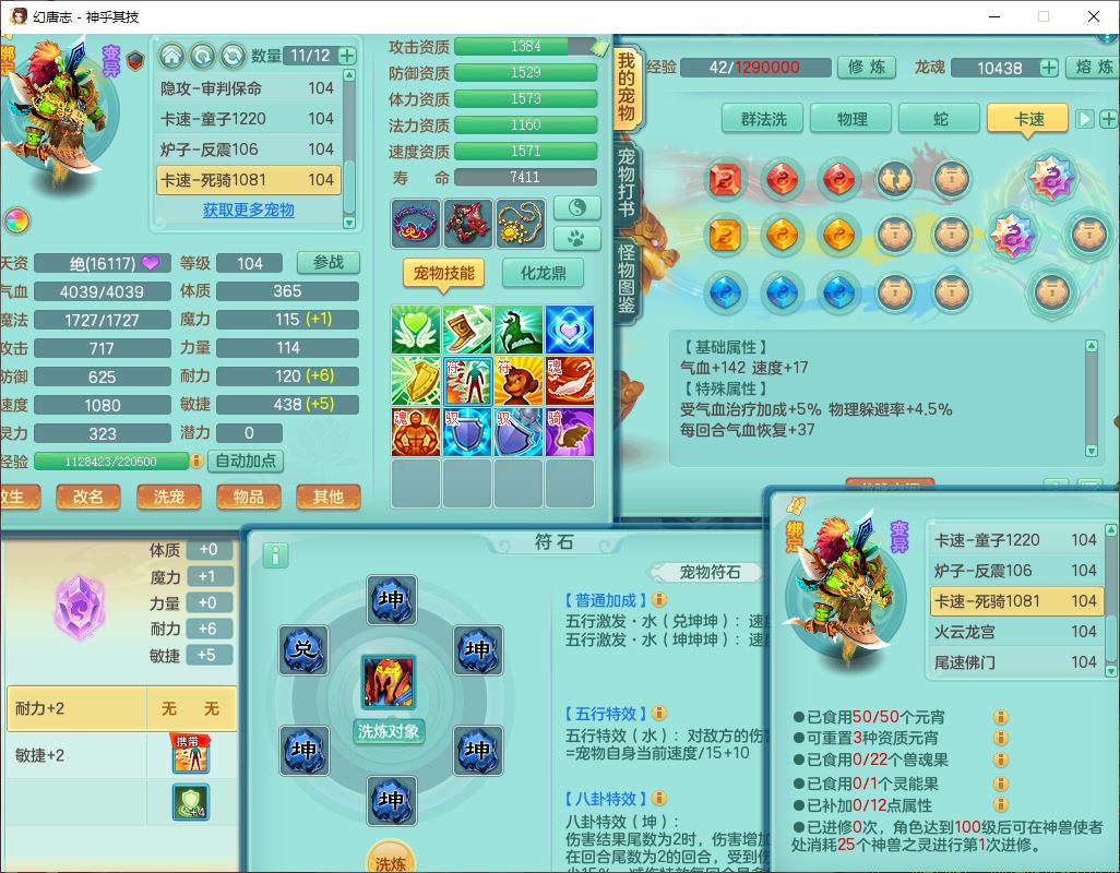 99797神乎其技99男普陀【暴龙逍客+西瓜冰】体敏耐精灵,1内丹小马(带蛇影)4翻江2舍身1童子1金炉,2觉醒1宠皮2六字1五字10四字,9红装备,匠心明镜帽子,回春移魂武器,愤怒群体迟滞腰带,鼎1.2,34天月卡,永久外观、精灵皮肤,33个内丹碎片,2坐骑