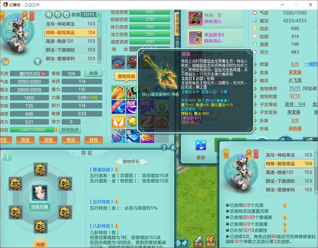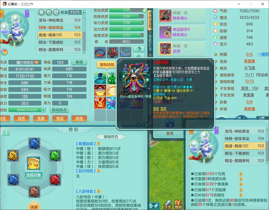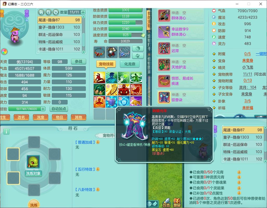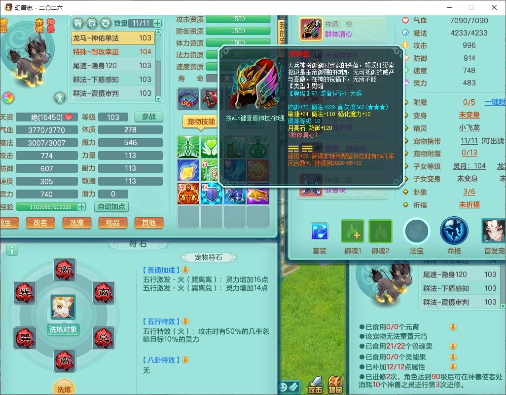99796,2026区99男盘丝【马到成功+火焰之力+流光翎】体敏耐精灵,2内(1青蛇1龙马)1金炉1童子,10只成品满高书宝宝,2孩子(龙宫+灵月),9红装备,幸运玉清武器,愤怒Y疾速腰带,抗灵五件套,63天月卡,满修炼,永久外观,17个内丹碎片
