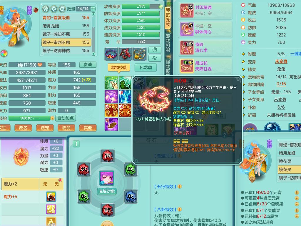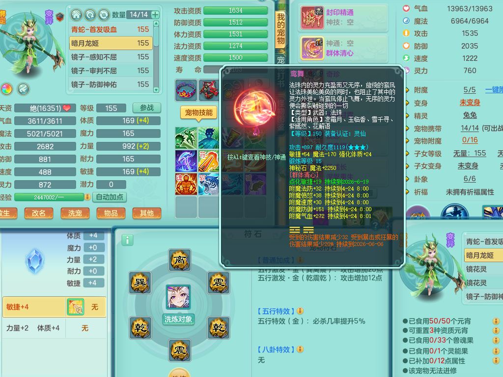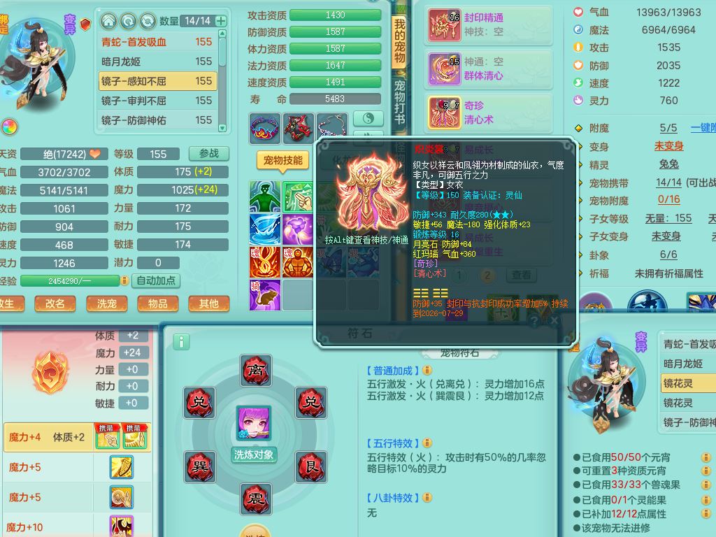 tx10424天下无双159女方寸【火焰之力】精灵舞,1内丹青蛇1皮,3特殊(祈雨/羽袭/藕断)3镜花1龙姬,11只满果子6觉醒3个纯6字,9红,封印头,Y四海项链,愤怒绝幻腰带,Y慈航鞋,鼎5.5+70,80天月卡,庭院159房屋150,永久外观精灵皮肤,1020金币,51仙兽灵,2只双人坐骑