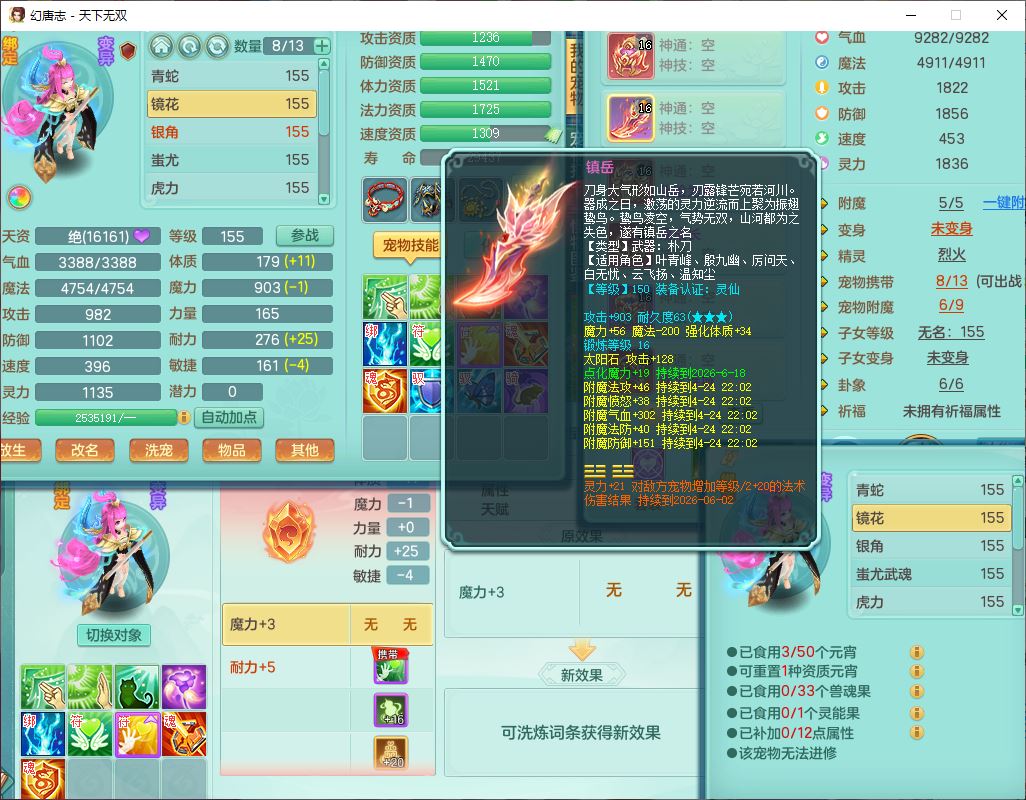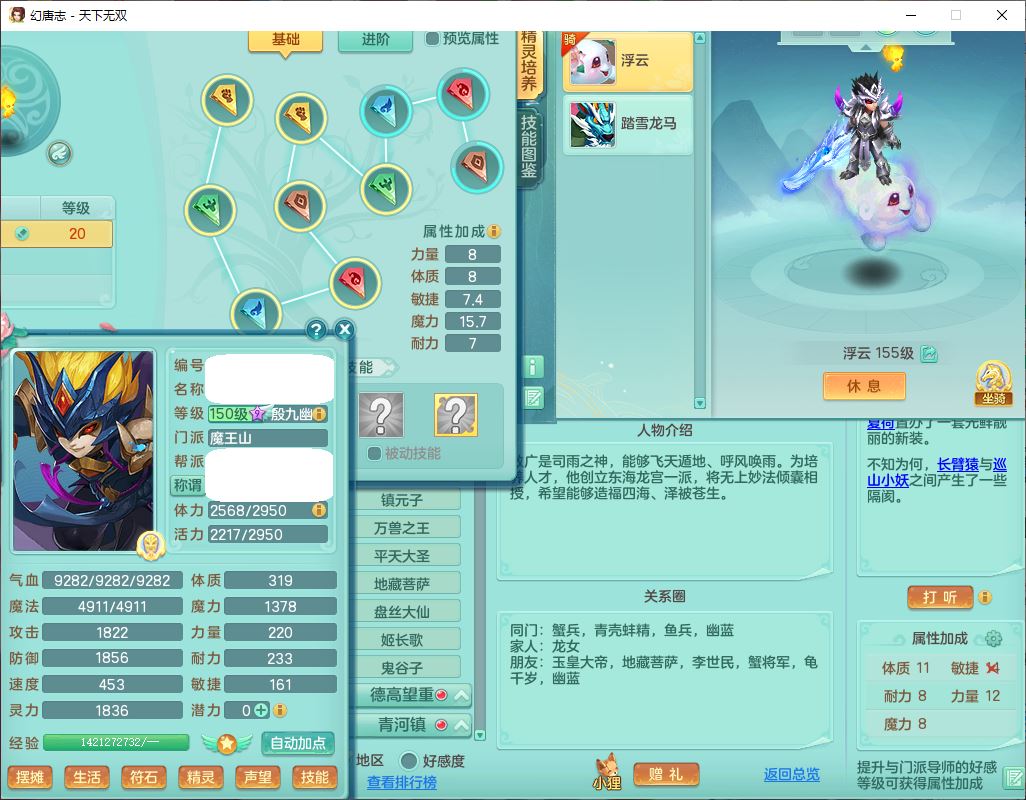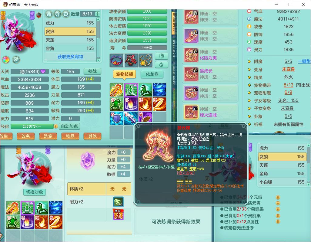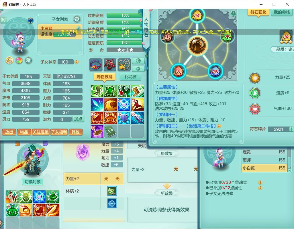 tx10429天下无双159男魔王1小精灵,1青蛇(无内)14只成品满高书宝宝,1孩子(无名),装备齐全,260多w神武币,1页多还童丹,有秘方药,1飞行坐骑