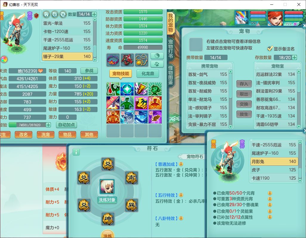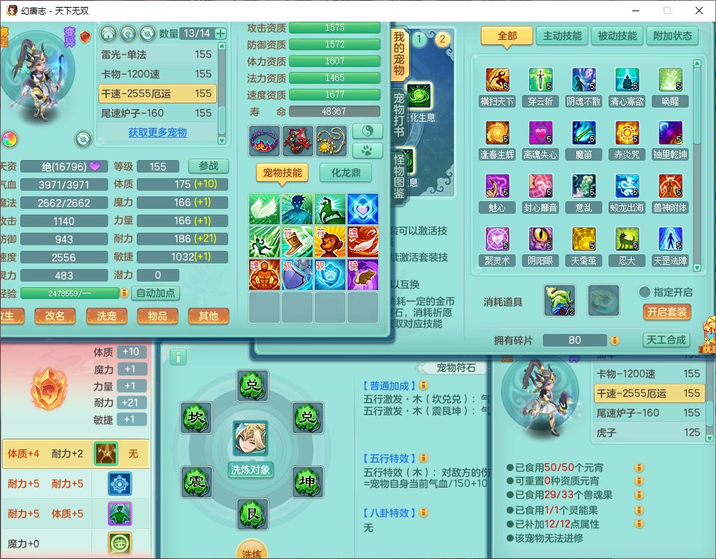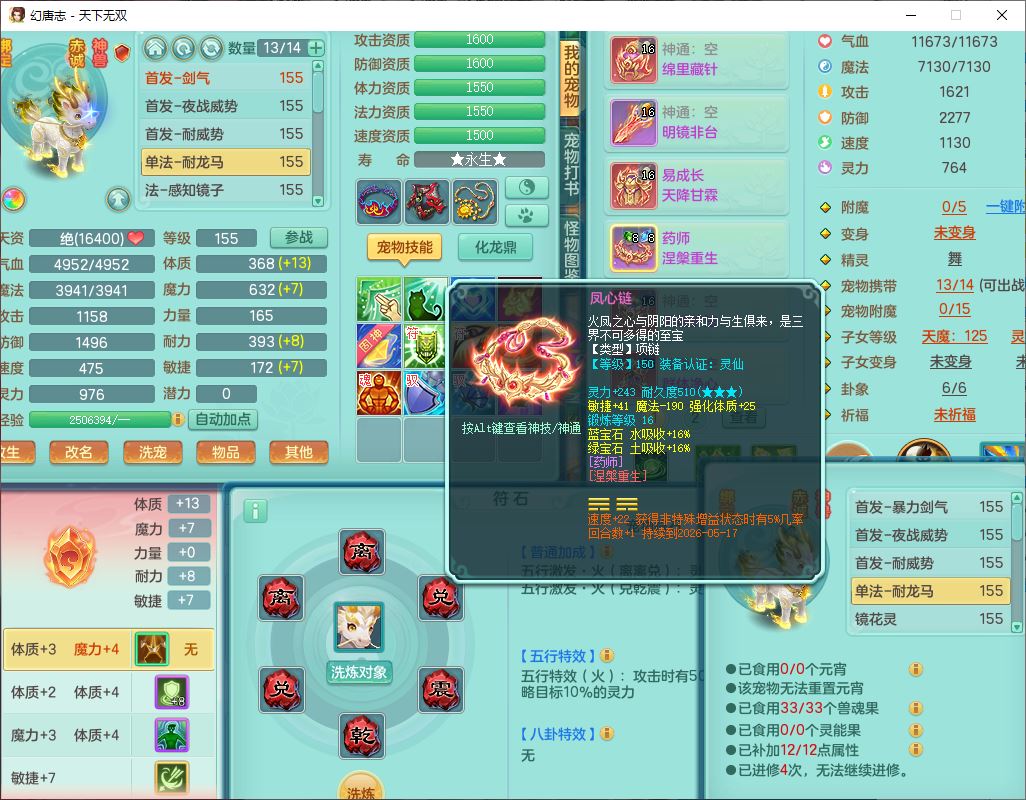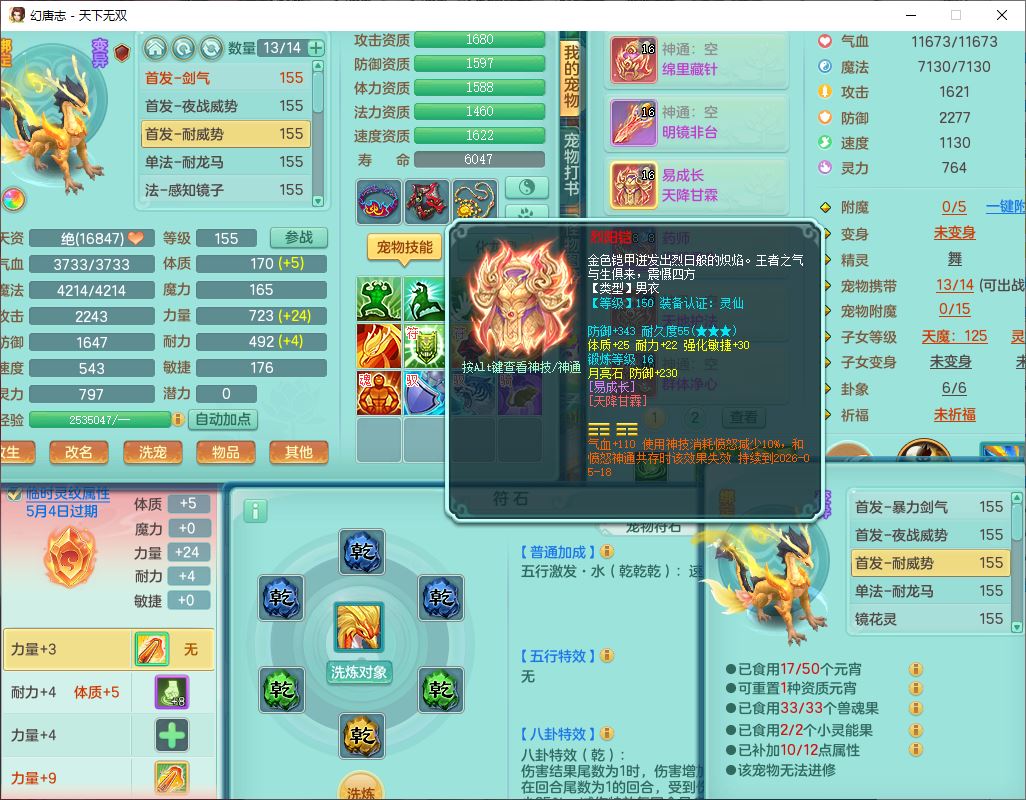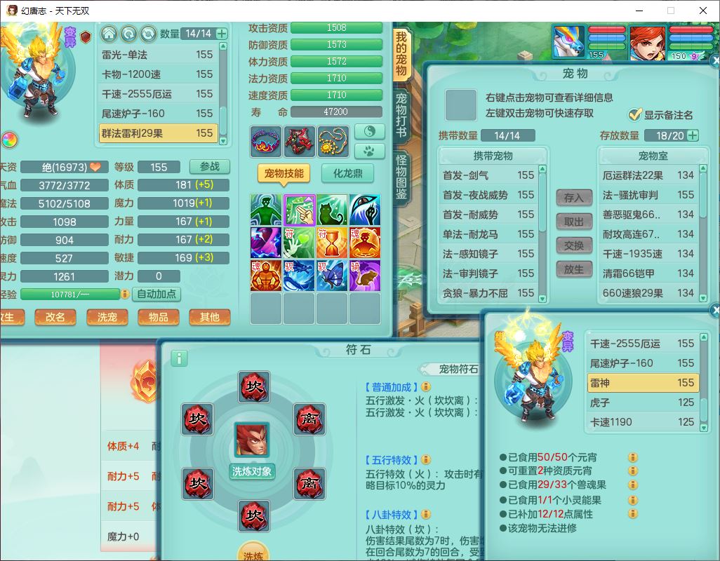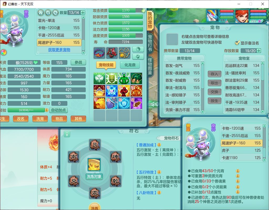 tx10427天下无双159男无量精灵舞,满级共鸣,1龙(无内)1内丹龙马1望归3镜花灵(1胚子)1龙姬1金炉,4觉醒3宠皮8四字综合13只满果子,8红6特,Y四海衣服,单加药师慈航项链,鼎5.5+70+280,化龙鼎满足潜龙要求,永久外观,29个内丹碎片,1飞行双人坐骑