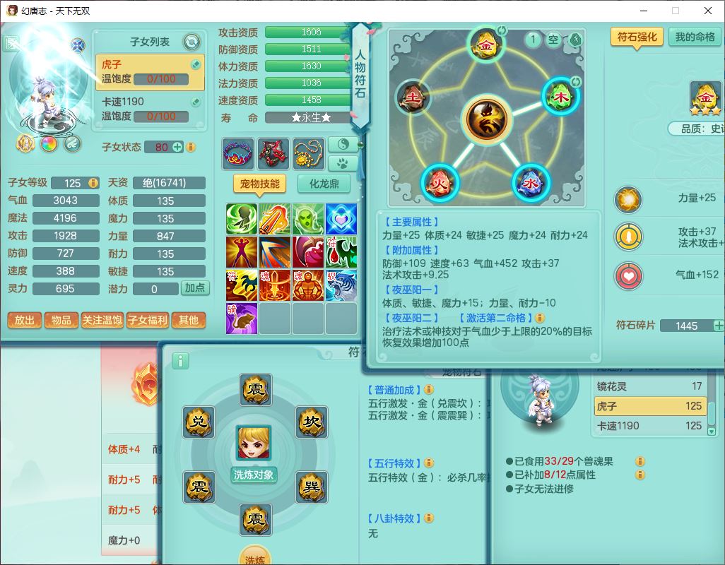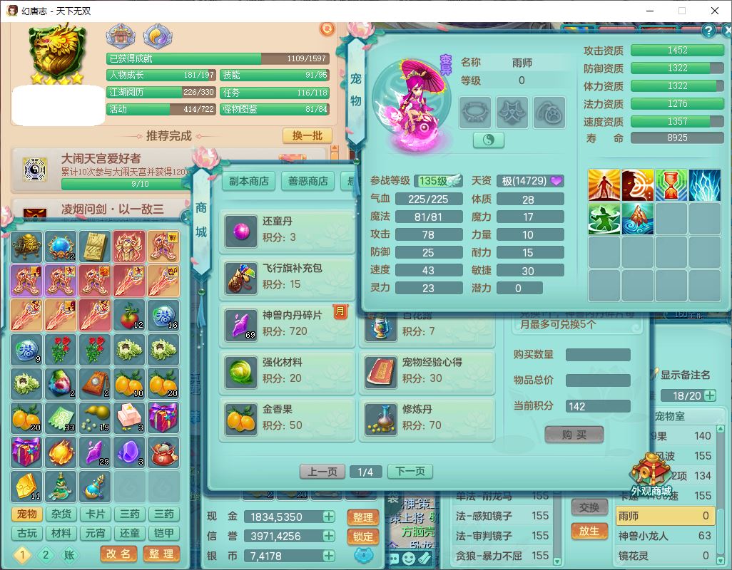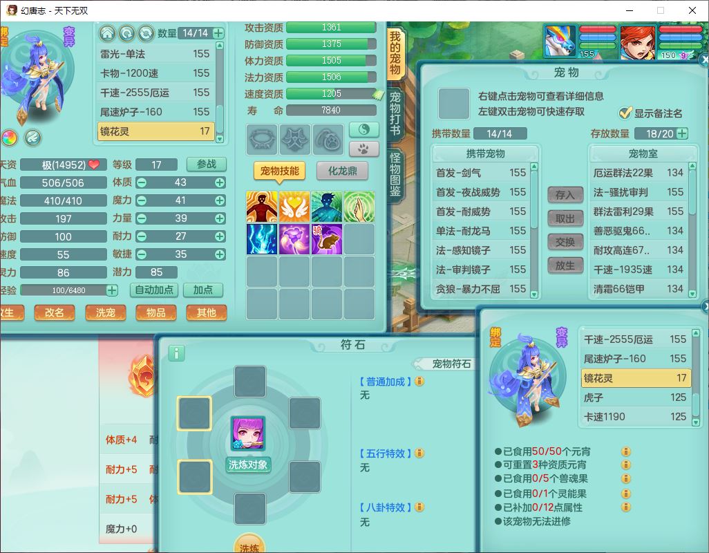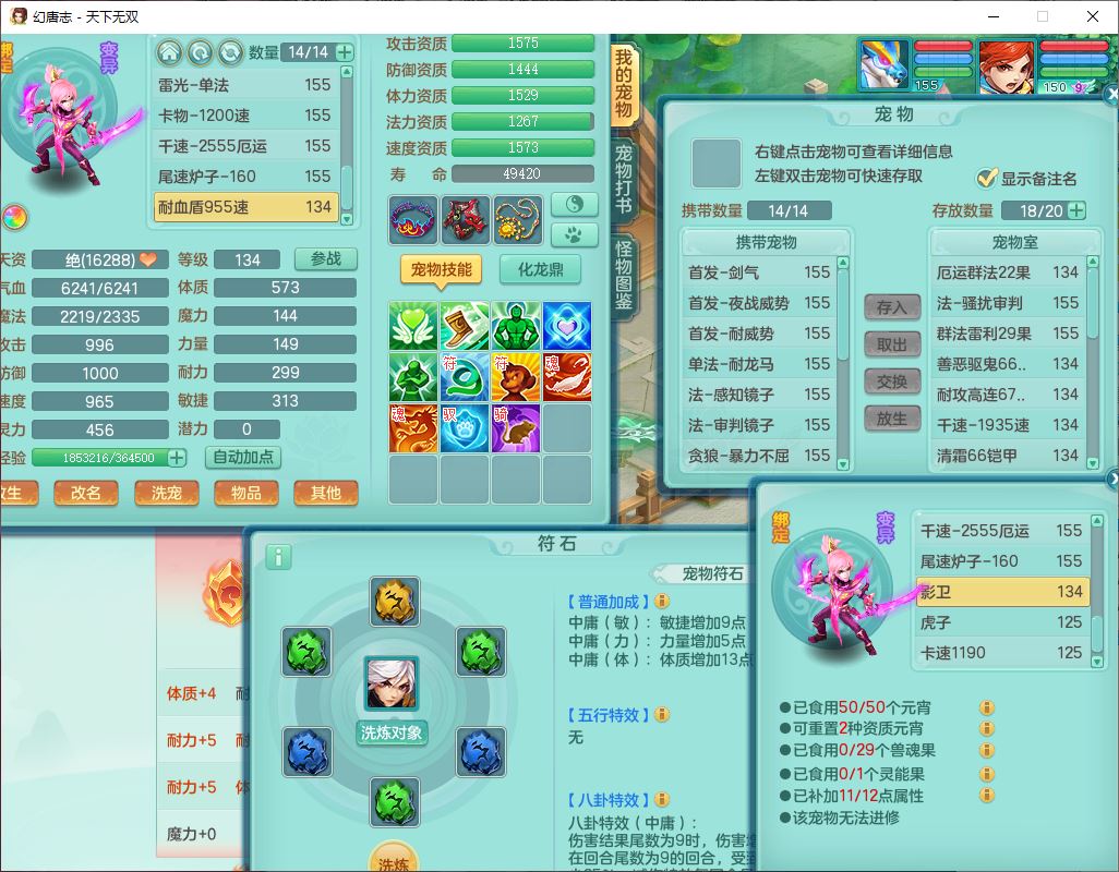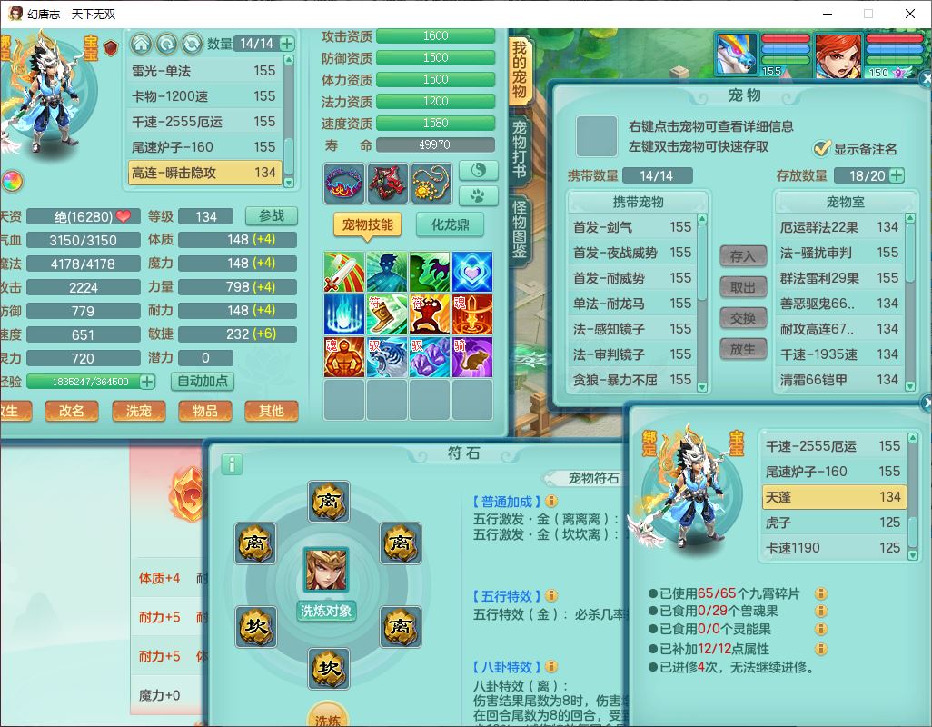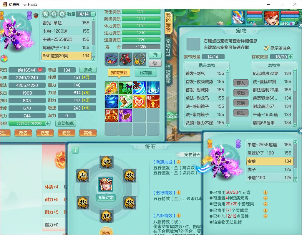 tx10427天下无双159男无量精灵舞,满级共鸣,1龙(无内)1内丹龙马1望归3镜花灵(1胚子)1龙姬1金炉,4觉醒3宠皮8四字综合13只满果子,8红6特,Y四海衣服,单加药师慈航项链,鼎5.5+70+280,化龙鼎满足潜龙要求,永久外观,29个内丹碎片,1飞行双人坐骑