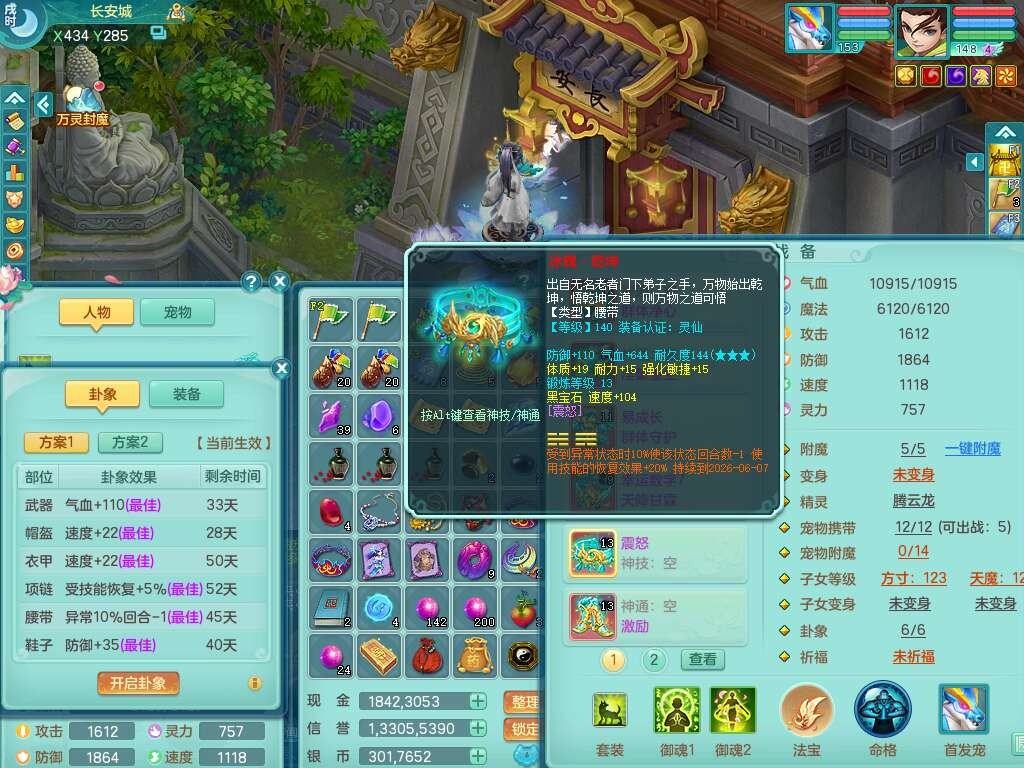 s22349风华绝代148男无量,1龙1内胆神(马),3神兽+39个神兽内丹碎片,1觉醒,4位靓号不含4,1只六技能镜花灵,双红易成长群体守护单加衣服,双红幸运7四海链子,震怒五特,带301w神武币。