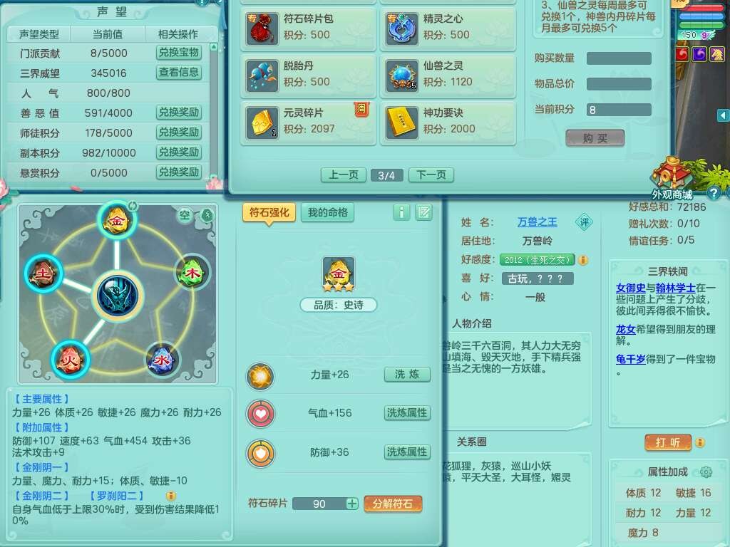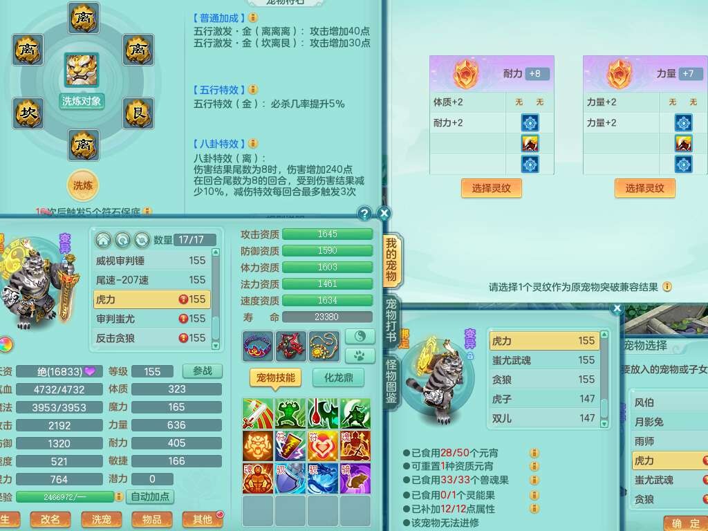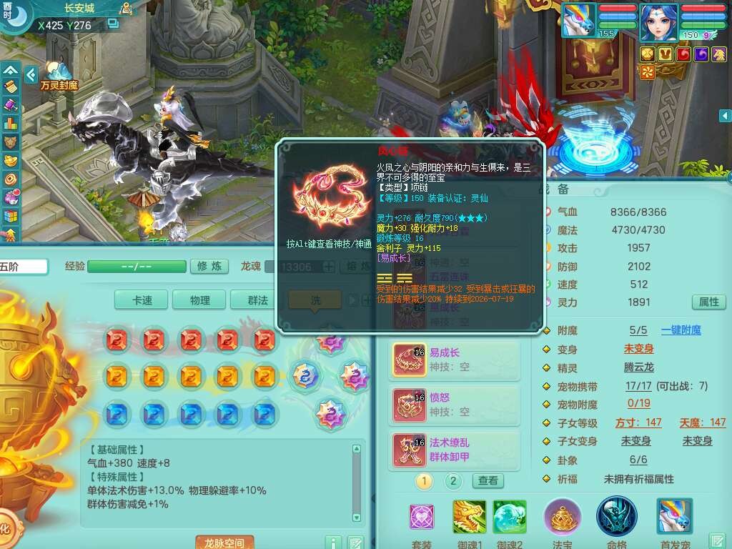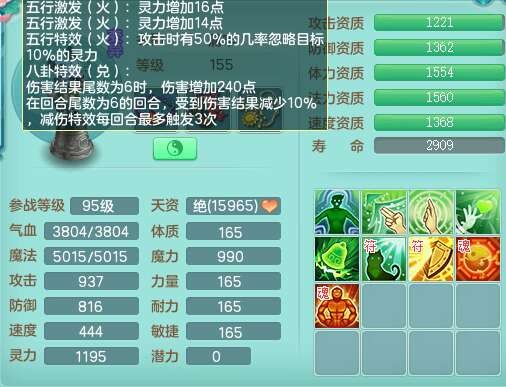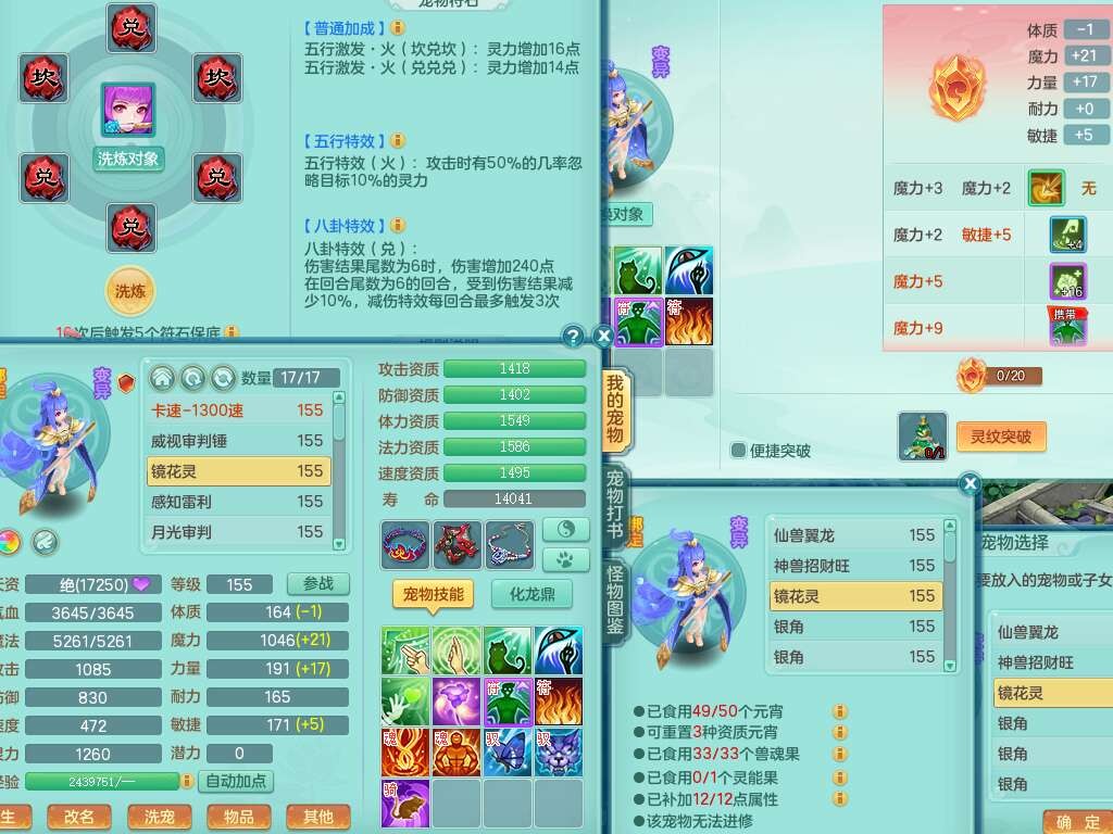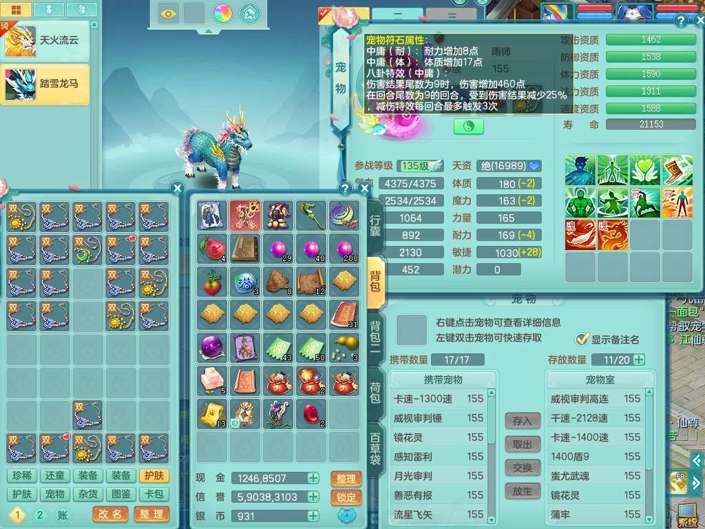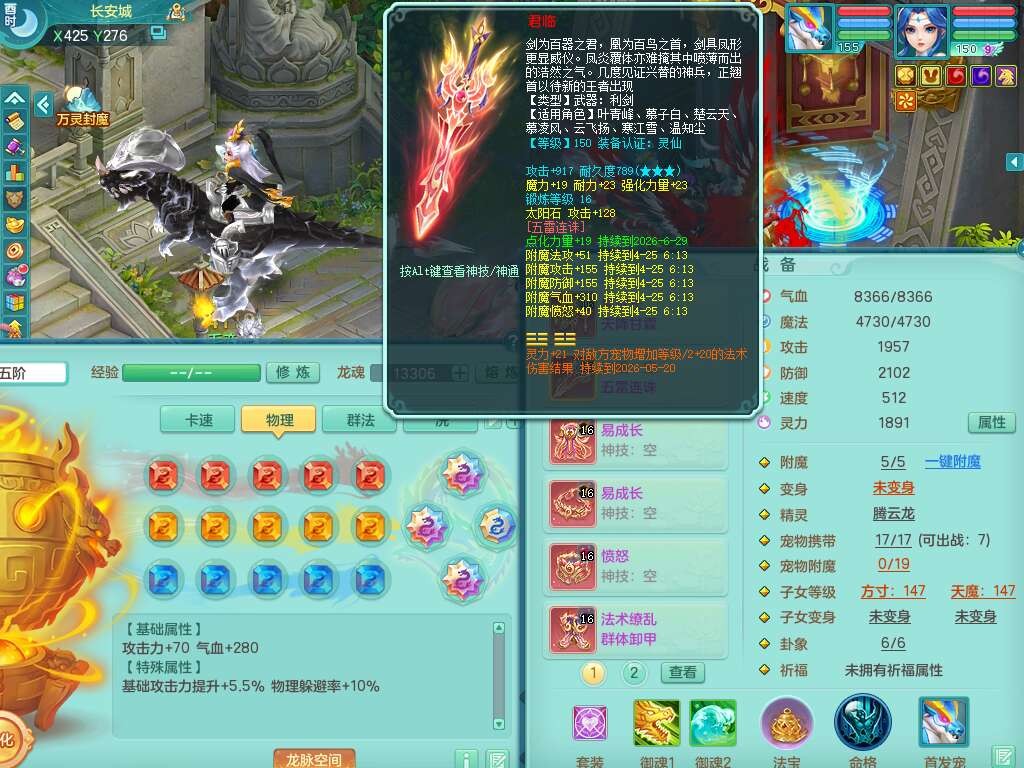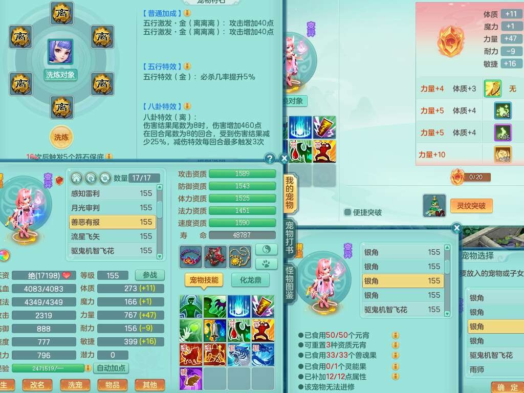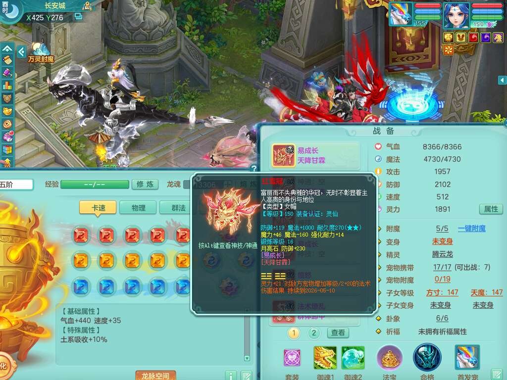s22348战无不胜159女龙宫,精灵舞,1龙无内,1内胆神,【10觉醒,已潜龙】,6特殊(雷厉*2,月光,善恶,流星,飞花),1只六技能镜花灵,易成长四海单加头,五雷武器,易成长单加50衣服,276易成长链子,愤怒单加51腰带,法缭群体卸甲鞋子,5.5基础鼎+70攻+280血,躲避10%,15个永久格子,8个纯六字,18只满果子,宠排在榜,经验在榜,双人坐骑。