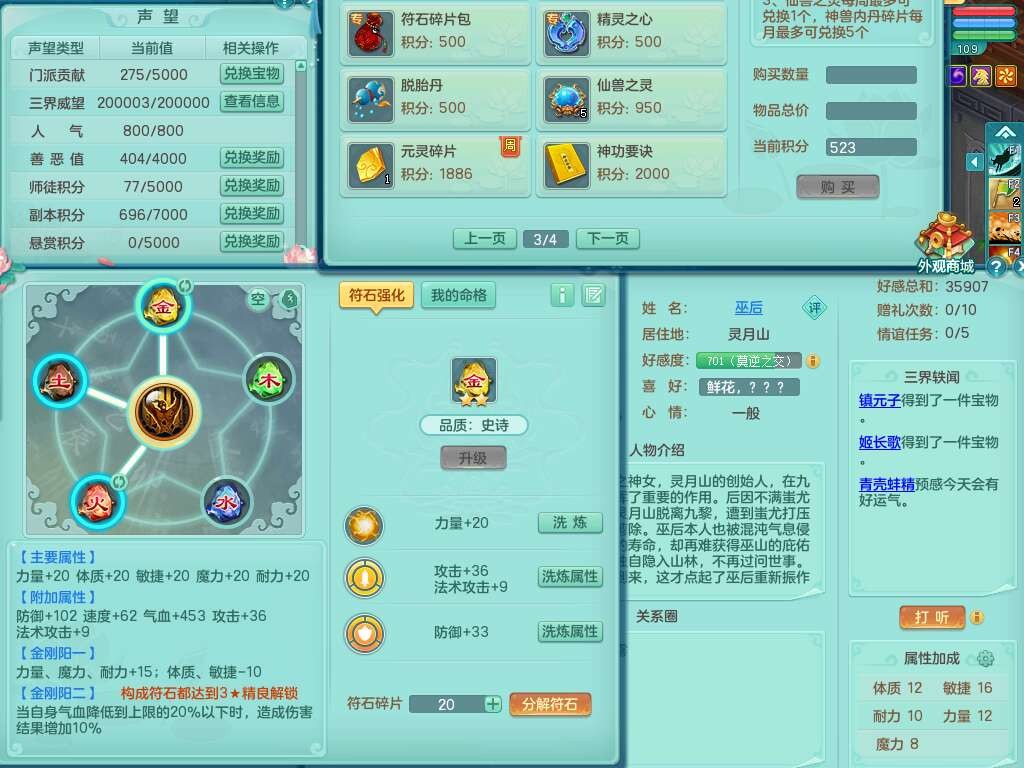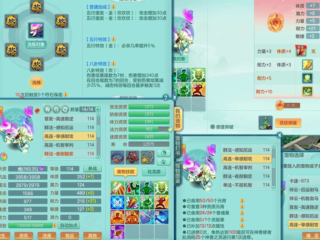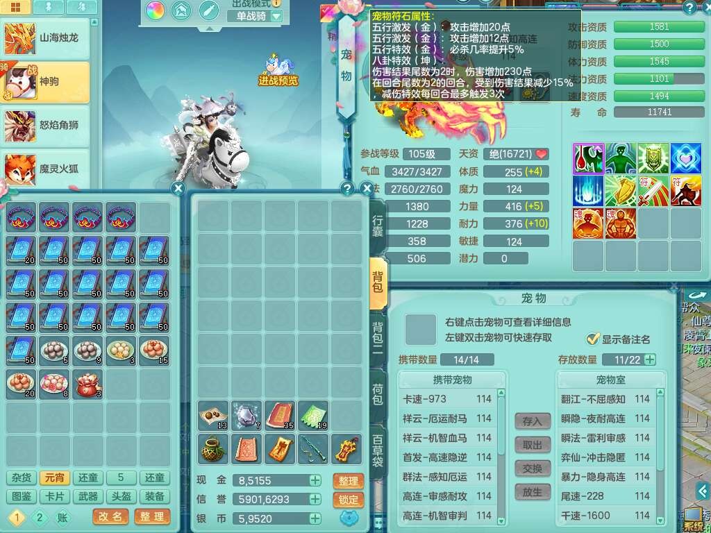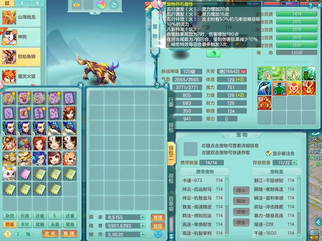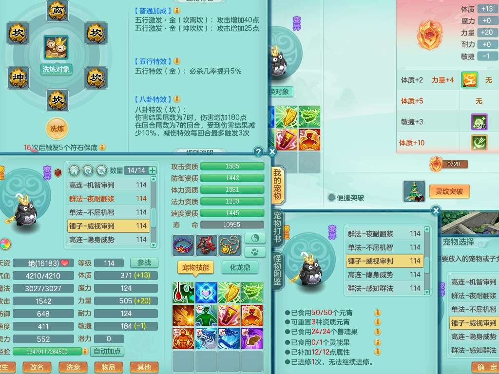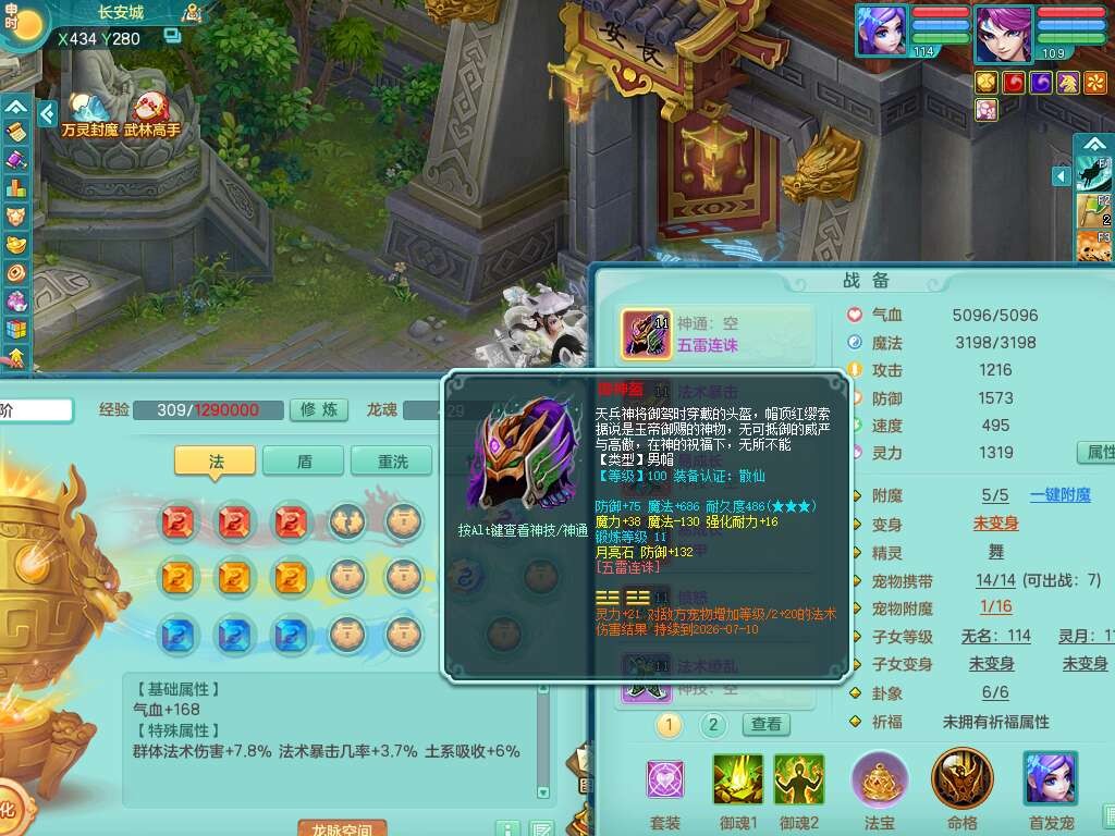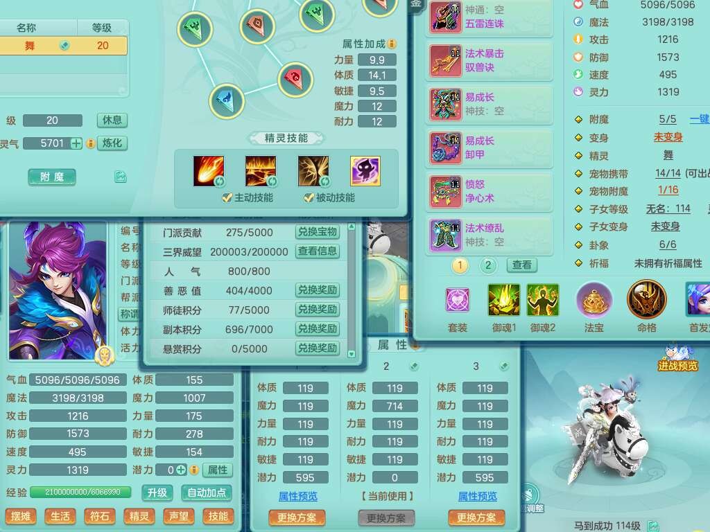 p22346超凡入圣109男魔王,精灵舞,1龙无内,2内胆神(马),7觉醒(潜龙条件化龙鼎满足,宝宝满足1只,符石差3个附加属性),3宠皮,五雷单加38头,法爆驭兽决单加34武器,易成长单加35衣服,166易成长卸甲单加38链子,愤怒静心术单加30腰带,法缭单加30鞋子,物理有破甲群体守护头,603必杀野兽武器,608狂暴卸甲单加武器,神佑单加37链子,愤怒崩山腰带,易成长笑里单加36鞋子,3.0基础鼎+42攻+168血,3个纯六字,2个五字,16只满果子,宠排在榜,4只坐骑,神驹马到成功+火焰之力武器,有24个神兽内丹碎片,141天月卡。