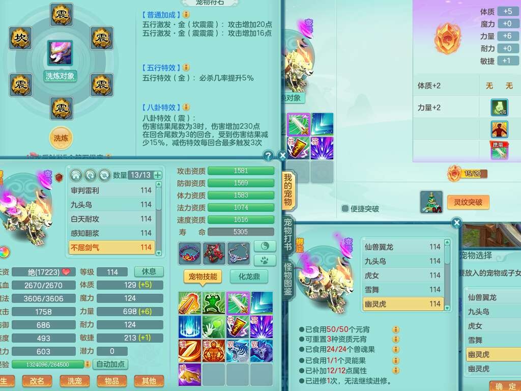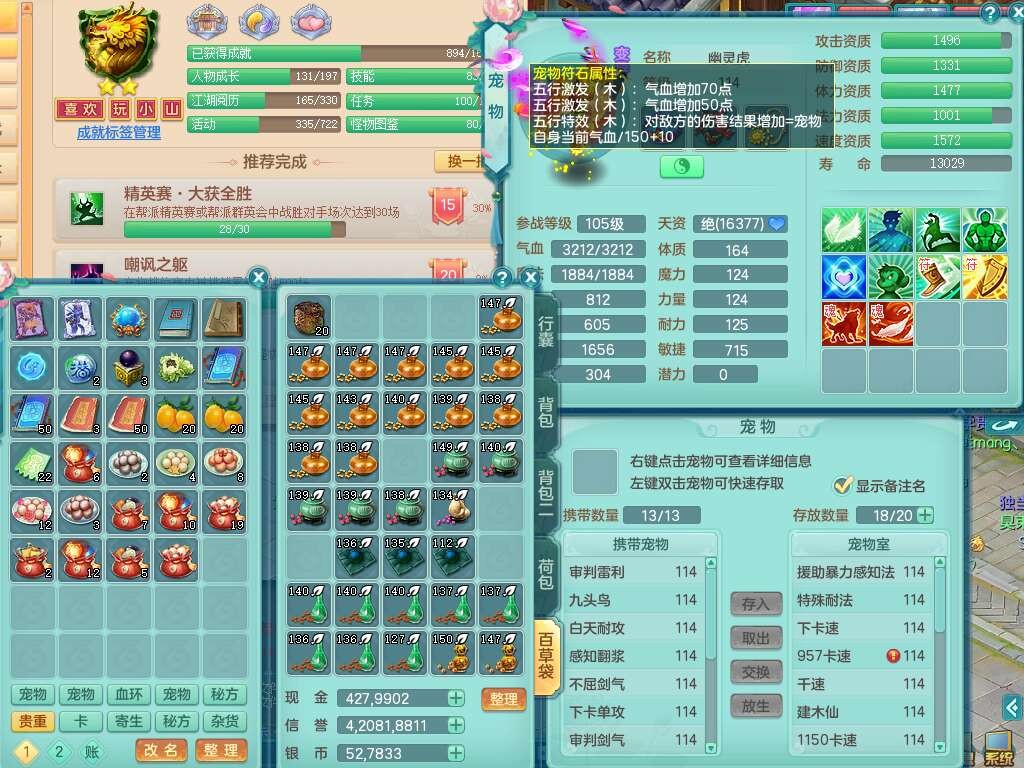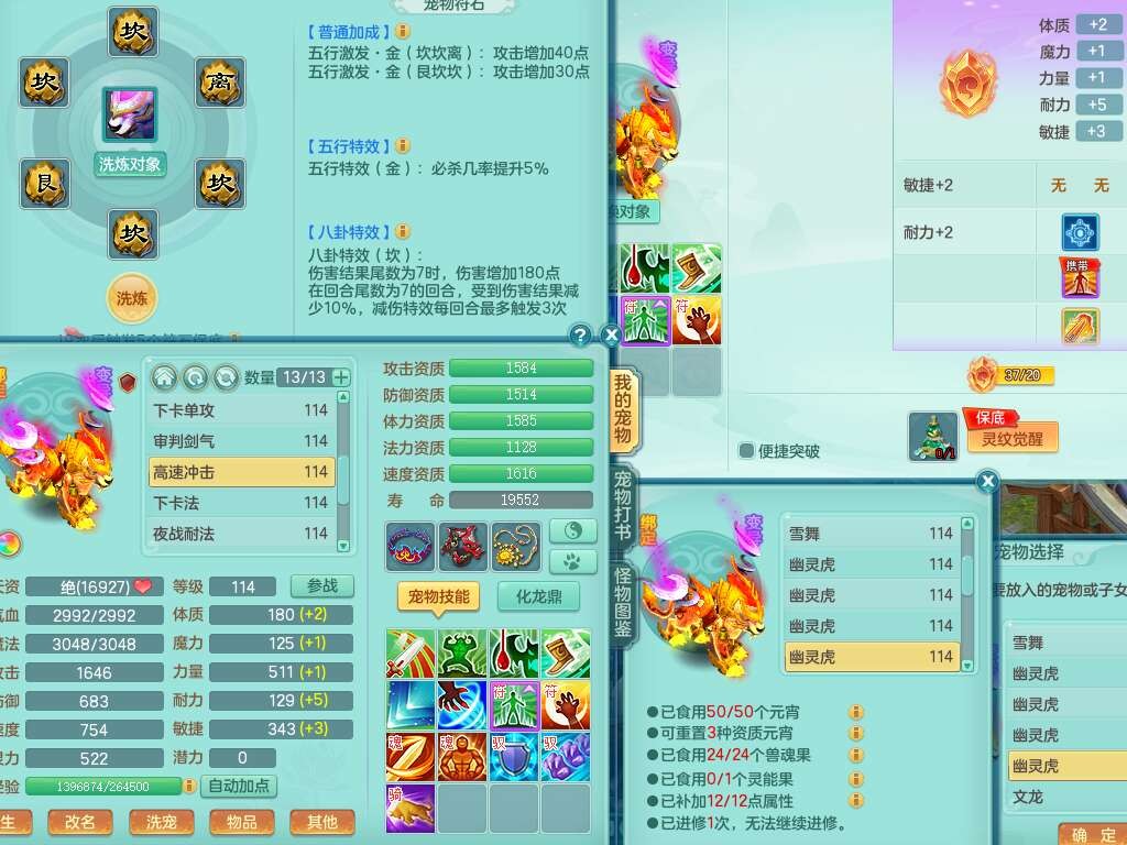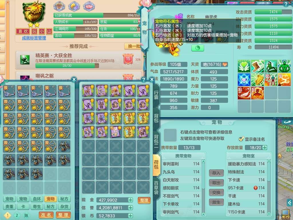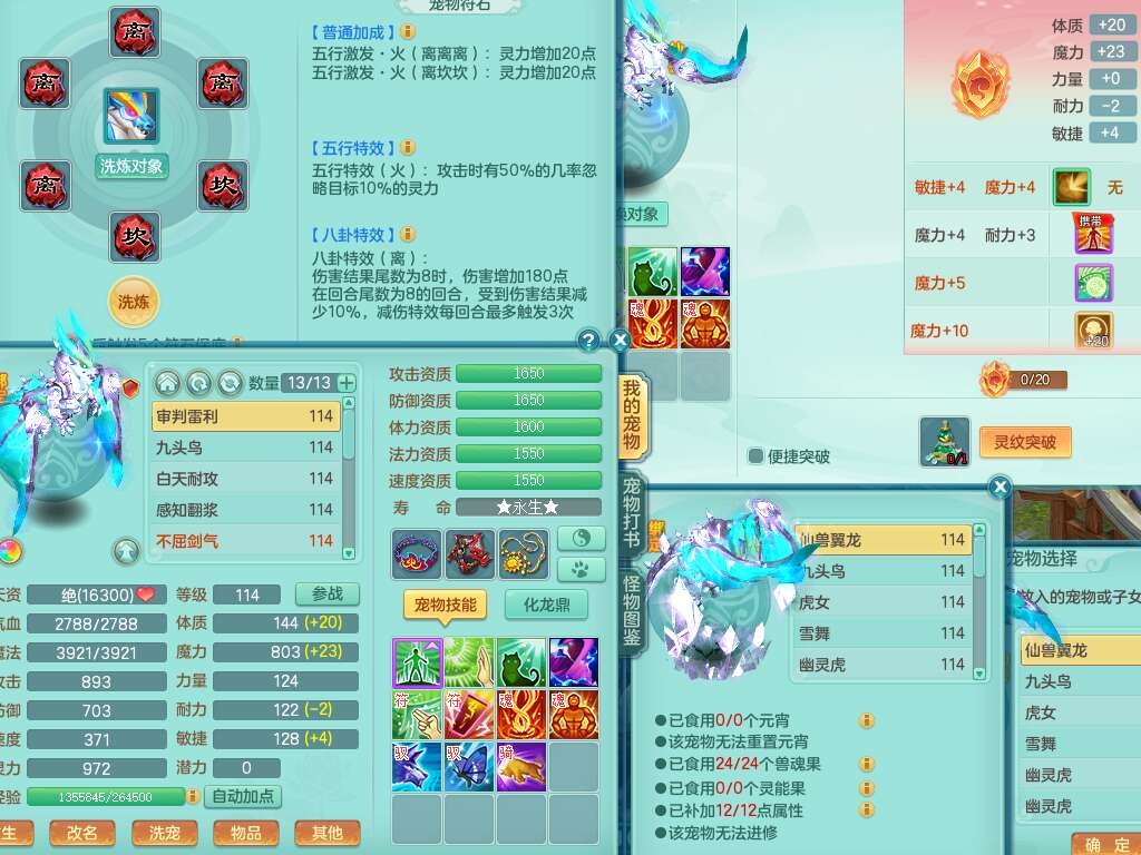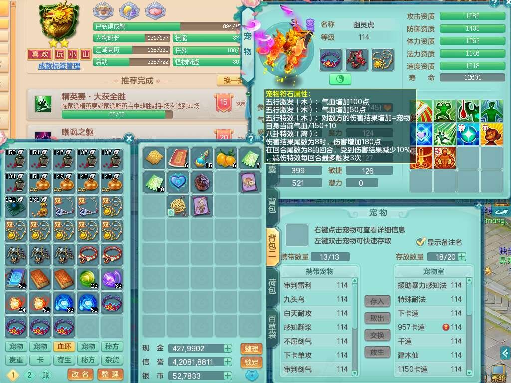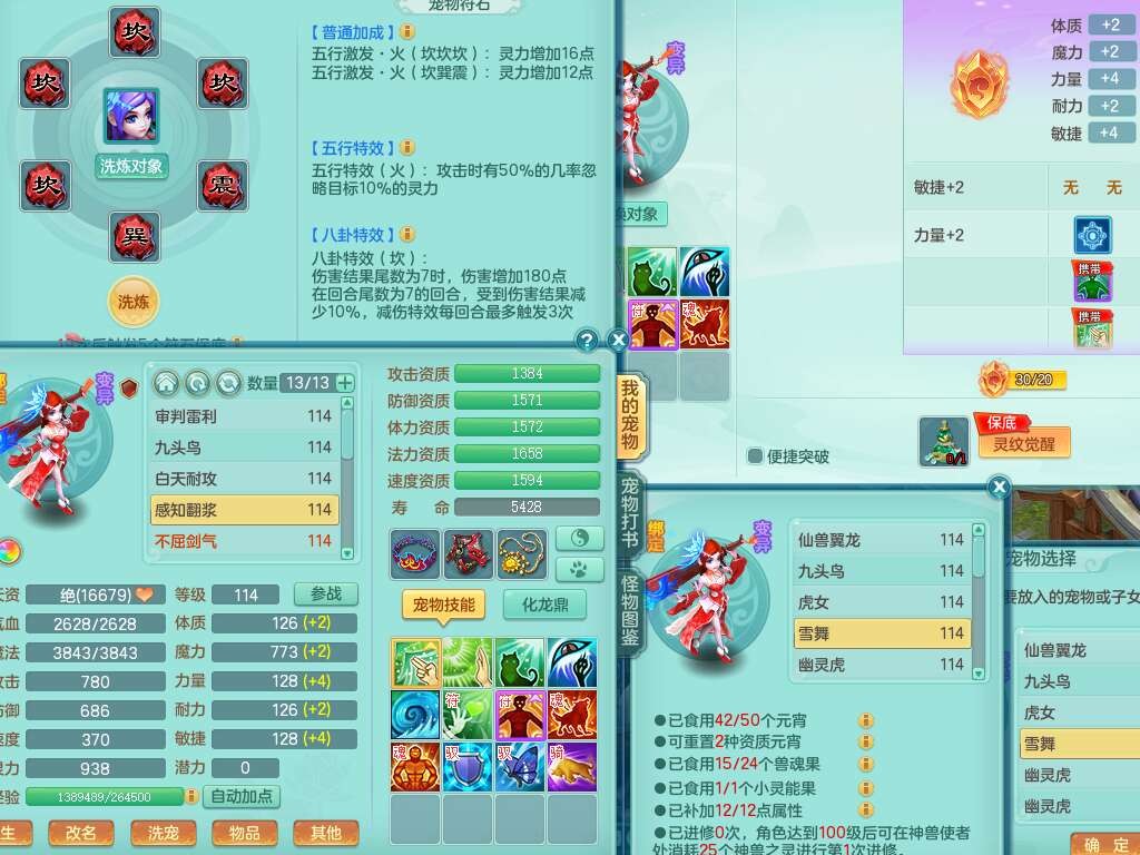 p22345花好月圆109男魔王,精灵歌,1龙没内,1神兽+35个神兽内丹碎片,4觉醒,易成长魔音摄心单加35头,法爆慈航单加31武器,易成长移魂大法单加39衣服,176易成长单加36链子,愤怒烽火单加30腰带,有易成长五雷单加鞋子,物理有595狂暴武器,神佑单加30链子,坚毅单加36链子,迅捷单加37鞋子,装备超多,3.0基础鼎+42攻+168血,2个五字,13只满果子,宠排在榜,双人坐骑。➕109女万兽,精灵歌,1神兽,易成长愈气诀单加35头,591必杀单加35武器,易成长破血衣服,神佑链子,易成长群体迟滞单加36腰带,易成长回气术单加38鞋子,有605易成长单加35武器,3.0基础鼎。