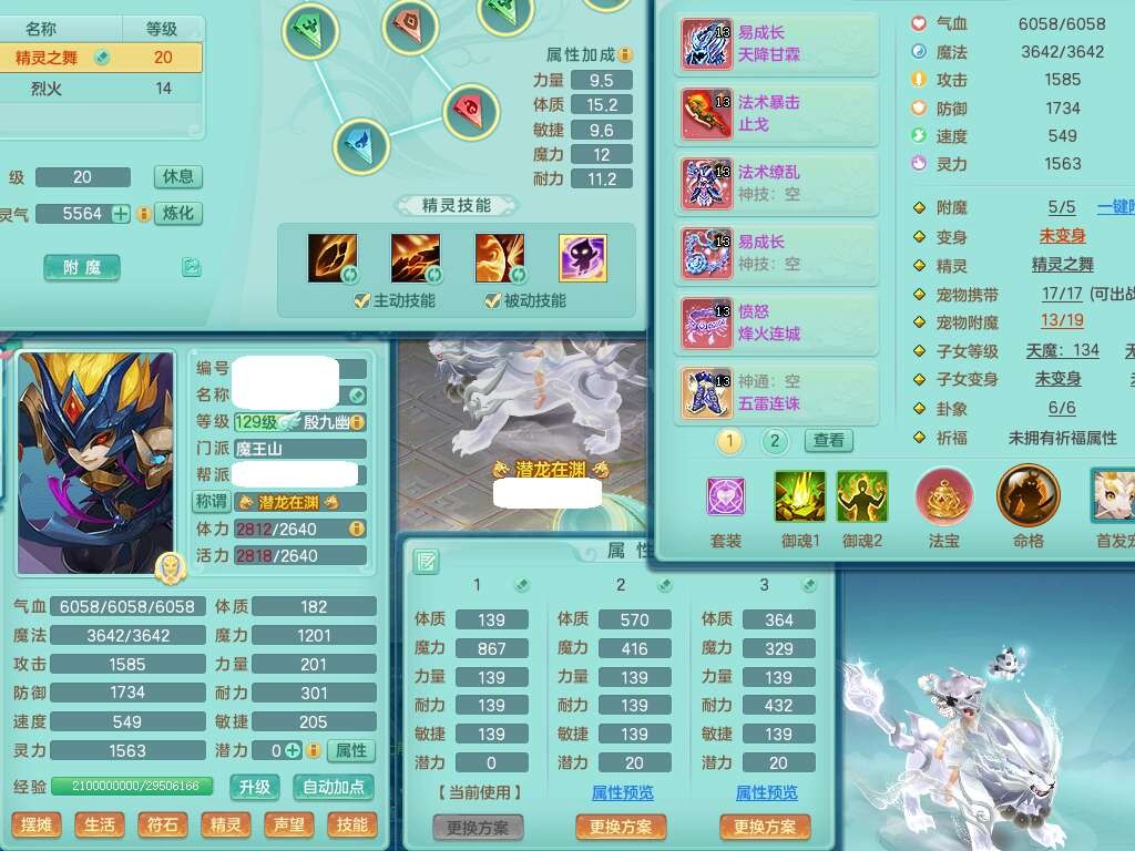 C22342超凡入圣129男魔王,精灵舞,9龙1龙皮,3内胆神,【17只觉醒,已潜龙】,4位靓号AABB不含4,7宠皮,法爆止戈单加41武器,易成长四海单加40头,法缭单加45衣服,214易成长单加项链,愤怒烽火单加腰带,五雷单加鞋子,4.5基础鼎,15个永久格子,14个六字,2个五字,24只满果子,宠排在榜,4个染色坐骑,冰晶庭院,带33天月卡。