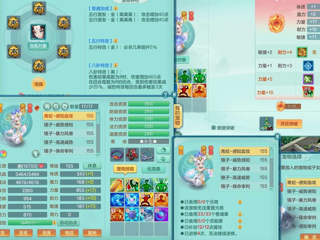 J22343醉生梦死159男万兽,精灵歌+舞,1龙没内,1内丹蛇,【7觉醒,已潜龙】,1特殊(风卷),4只六技能镜花灵,1只六技能龙姬,易成长破魔斩单加57头,911狂暴易成长单加武器,崩山单加55衣服,神佑群体守备单加52链子,易成长慈航单加56腰带,破甲鞋子,5.5基础鼎+70攻+280血,15个永久格子,7个纯六字,5个五字,14只满果子,仓库还有55个果子,宠排在榜,经验在榜,双人坐骑,神驹马上发财+火焰之力武器,有52个神兽内丹碎片,162天月卡。➕159男无量,1神兽,3觉醒,1特殊(剑气),3只六技能镜花灵,易成长野兽衣服,愤怒移魂大法腰带,六特。➕159女盘丝,2只六技能镜花灵,易成长明镜非台单加52头,易成长野兽单加55武器,愤怒迟滞腰带,六特。➕159男魔王。