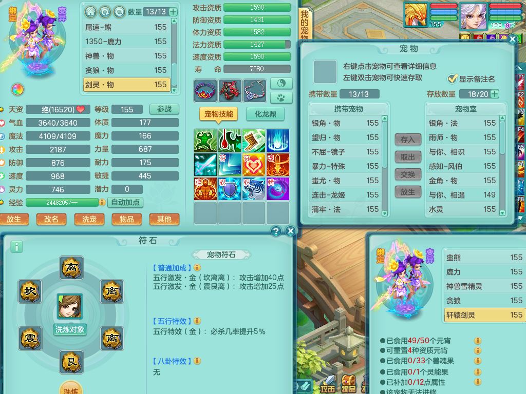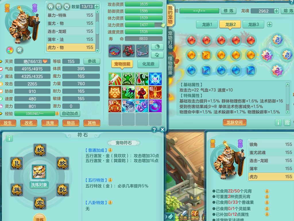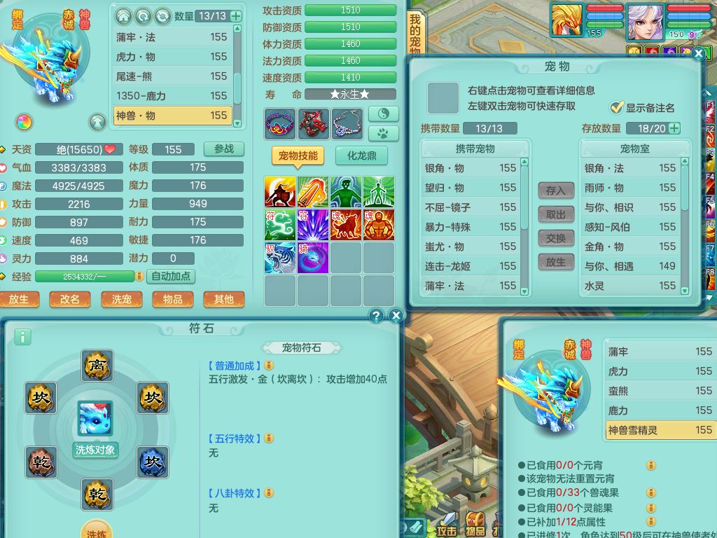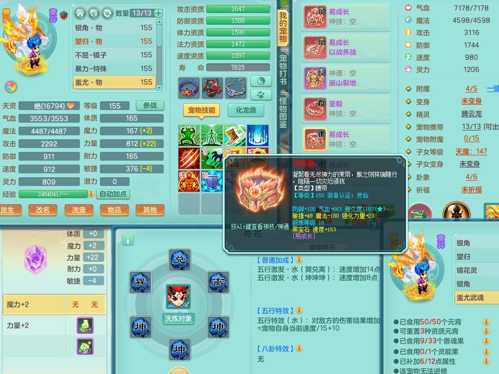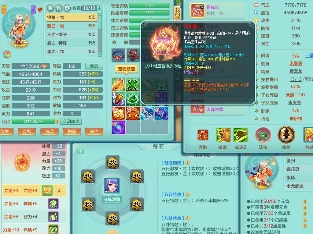 tx10431天下无双159男万兽精灵歌,1神兽(无内)1特殊(冲锋)1镜花1龙姬,1觉醒1个纯6字,8红,919Y以战武器,Y头,崩山衣服,坚毅项链,Y四海鞋,鼎4.0,16仙兽灵,飞行双人坐骑,带150奶粉魔王,支持7天换绑