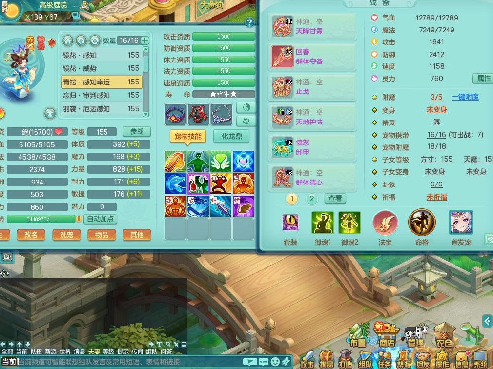jt10433九天揽月159男佛门【潜龙号+神驹马到成功+西瓜冰】精灵舞,1龙(无内)1内丹青蛇12皮(1幻灵果),5特殊(羽袭/守护/怒破/剑胆/善恶)3镜花1龙姬,21只满果子16觉醒9个纯6字,8红愤怒6特,回春群体守备武器,愤怒卸甲腰带,鼎6.0+70+280,2套符石,158天月卡,庭院148房屋153,精灵皮肤,28内丹碎片,宠排在榜,2坐骑(1只双人)带2个150奶粉