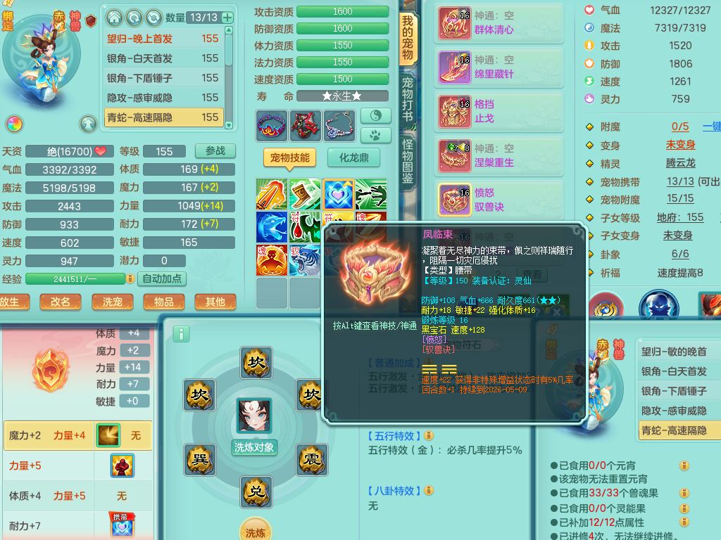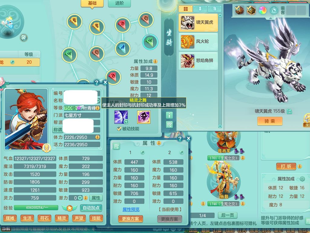 cf10434超凡入圣159男方寸精灵舞,满级共鸣,1内丹青蛇3皮4特殊(冲锋/破碎/墨守/虎虎兽决)8只满果子3觉醒6个4字3个5字(1洗练珠),8红愤怒6特,格挡止戈衣服,愤怒驭兽腰带,封锁水清武器,仓库回春武器,鼎5.5,永久头饰,69仙兽灵,飞行双人坐骑