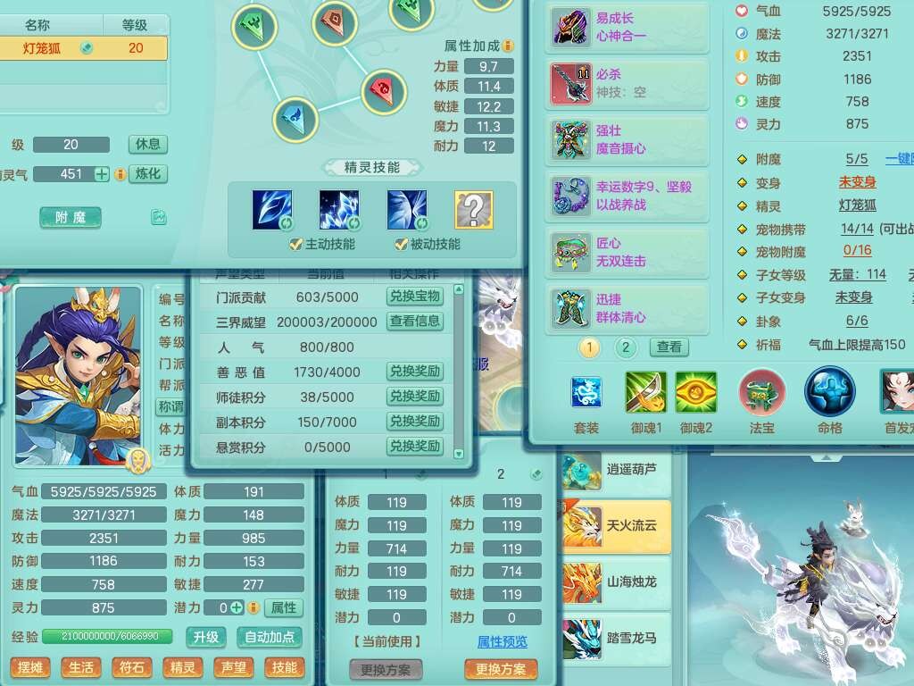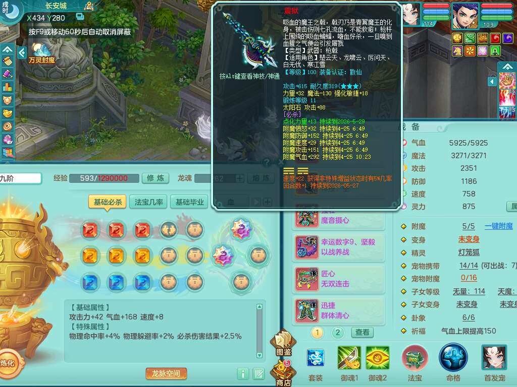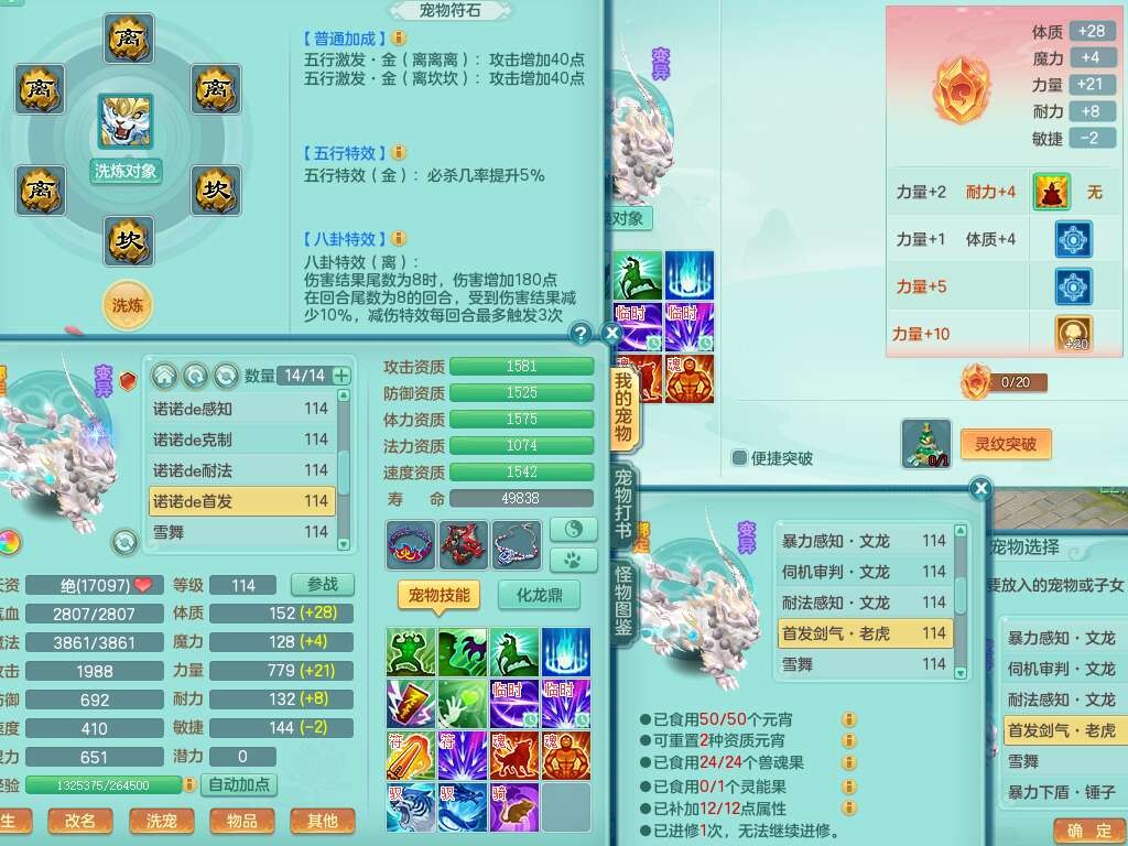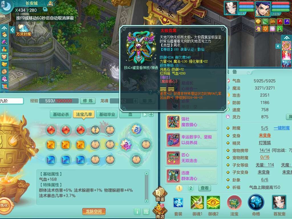 J22357风驰电掣109男力天宫,1龙1内胆神,1破镜,9只觉醒(潜龙条件化龙鼎满足,符石差2个附加属性,宠物1只满足),4宠皮,615必杀单加武器,匠心破血单加腰带,有愤怒玉清腰带,愤怒群体守备腰带,可玩辅助愤怒六特,2.5基础鼎+42攻+168血,3个纯六字,2个5字,16只满果子,宠排在榜,背包38神兽内胆碎片,3个黑白染色坐骑,月卡还有62天。➕109女无名谷,精灵歌,1神兽+36神兽内胆碎片,4只觉醒。