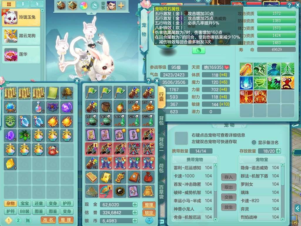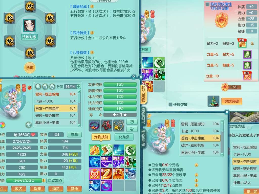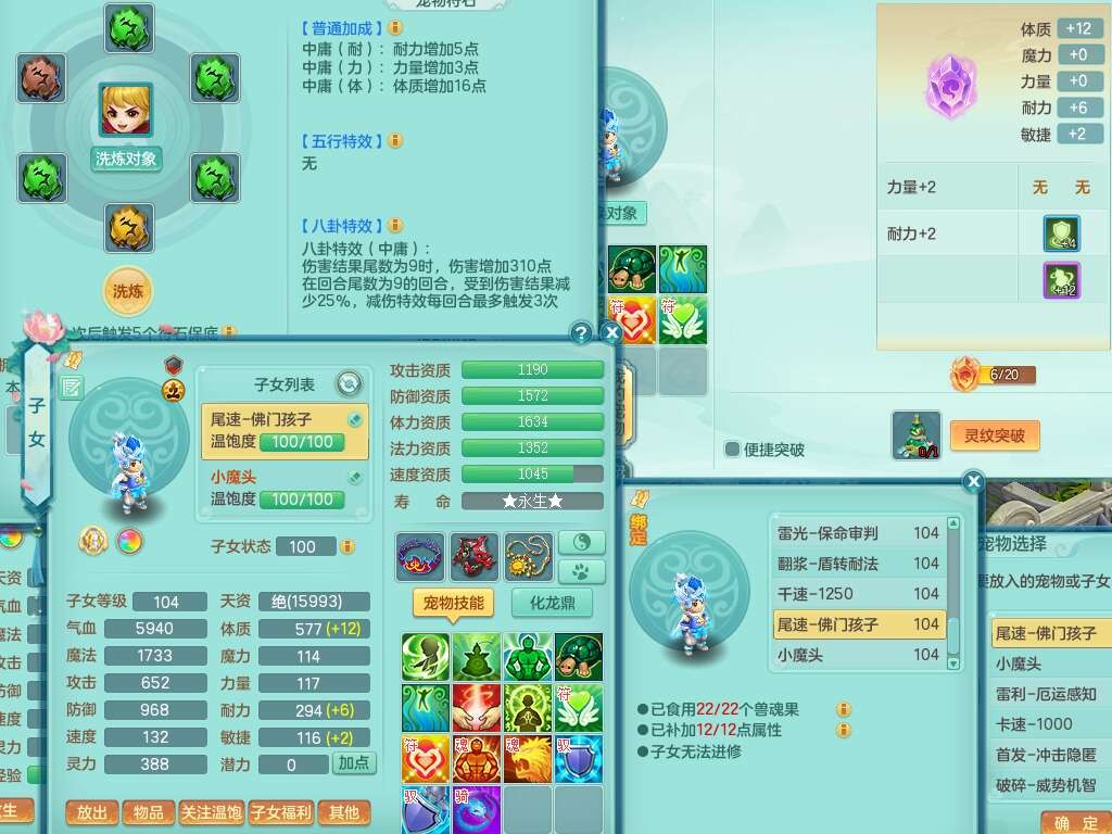 L22354今年勇99男无名谷,2龙(1龙没内),2内胆神(1蛇1马),2神兽+33个神兽内丹碎片,【12觉醒,已潜龙】,1宠皮,易成长罗汉单加35头,556易成长武器,崩山单加衣服,神佑链子,愤怒四海单加腰带,迅捷易成长单加鞋子,法系有163易成长奇珍链子,155易成长单加33链子,法爆单加武器,五雷单加33头,法缭单加34鞋子,3.0基础鼎+42攻+168血,14个纯六字,2个五字,22只满果子,宠排在榜,4个孩子,2只双人坐骑,带133天月卡。➕99男天魔,1神兽,易成长单加头,547易成长武器,破血单加34衣服,神佑链子,愤怒单加腰带,匠心易成长鞋子。➕99女盘丝,2觉醒,易成长笑里单加头,幸运4玉清单加31衣服,神佑四海链子,三红愤怒幸运4心神合一单加30腰带,易成长野兽鞋子,六特。
