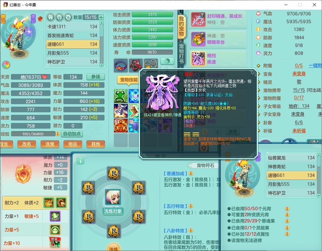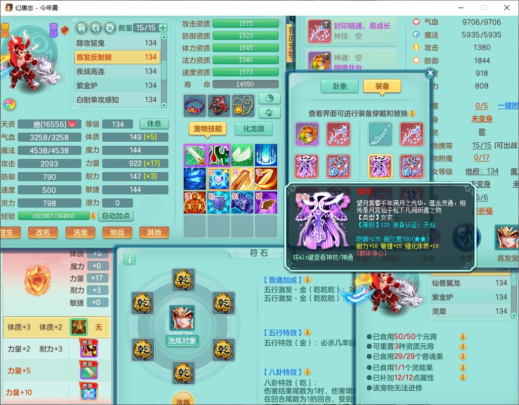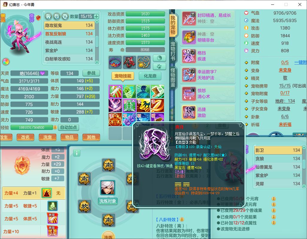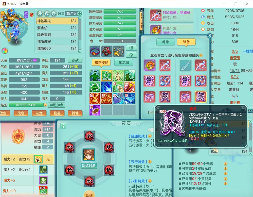 71483YB今年勇129女天宫【潜龙过半】精灵舞,2龙(1换、无内)1内丹青蛇1神石1金炉1羽袭1九幽,11觉醒13六字3五字8四字23只满果子,11红星辰之拥装备,封印精通Y帽子,格挡疾速衣服,幸运罗汉项链,愤怒水清腰带,迅捷激励鞋子,仓库多装备,可搭辅助星辰之拥,回春Y武器,鼎4.0+56+224,庭院177房屋169,永久外观、精灵皮肤,41个内丹碎片,近700W神武币,2双人坐骑(1飞行);带155奶粉,300多w神武币;带成品159男地府,装备宝宝齐全,4特殊(夺命,兽决禁锢、怒破、双星),46个内丹碎片