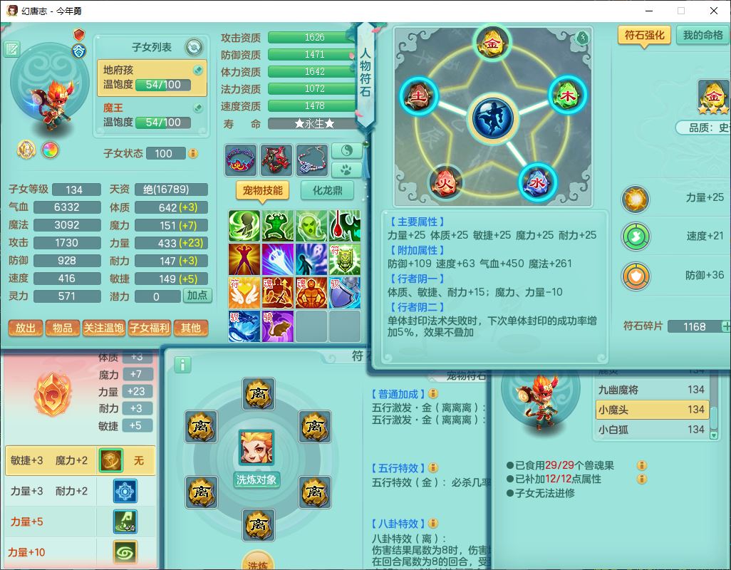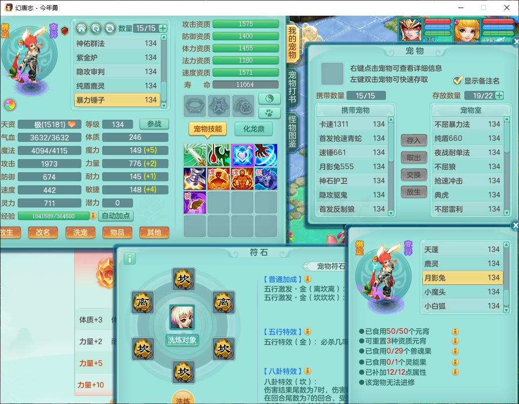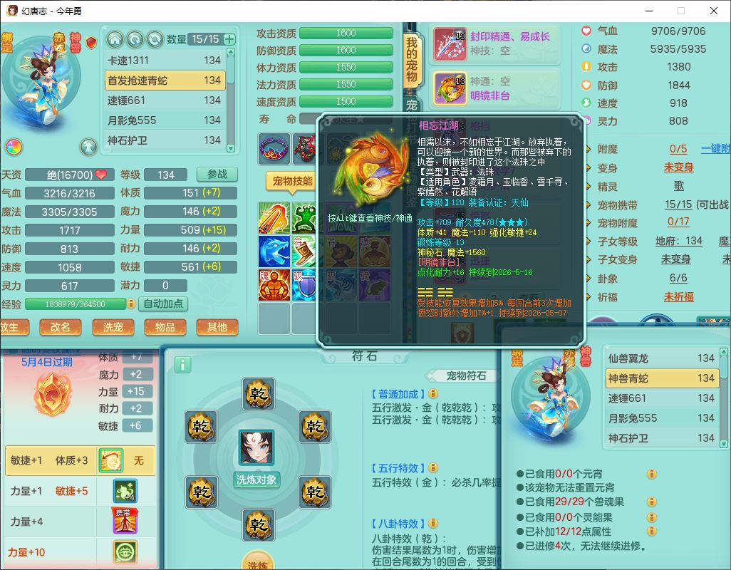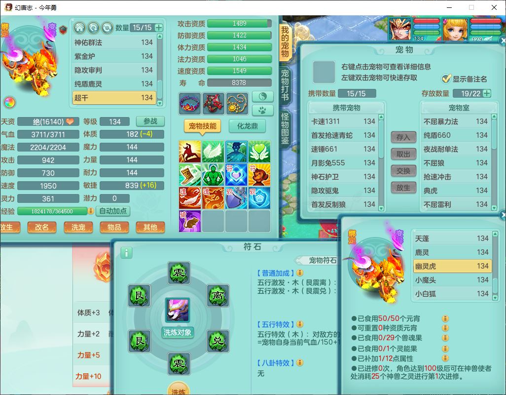 71483YB今年勇129女天宫【潜龙过半】精灵舞,2龙(1换、无内)1内丹青蛇1神石1金炉1羽袭1九幽,11觉醒13六字3五字8四字23只满果子,11红星辰之拥装备,封印精通Y帽子,格挡疾速衣服,幸运罗汉项链,愤怒水清腰带,迅捷激励鞋子,仓库多装备,可搭辅助星辰之拥,回春Y武器,鼎4.0+56+224,庭院177房屋169,永久外观、精灵皮肤,41个内丹碎片,近700W神武币,2双人坐骑(1飞行);带155奶粉,300多w神武币;带成品159男地府,装备宝宝齐全,4特殊(夺命,兽决禁锢、怒破、双星),46个内丹碎片