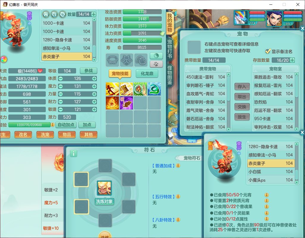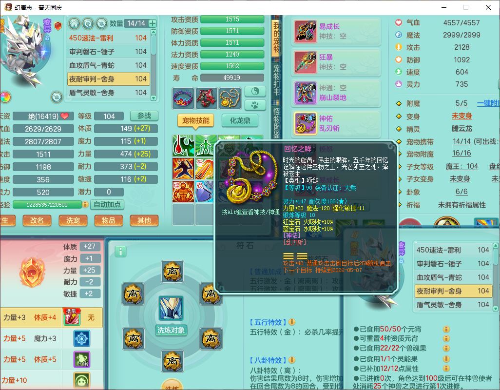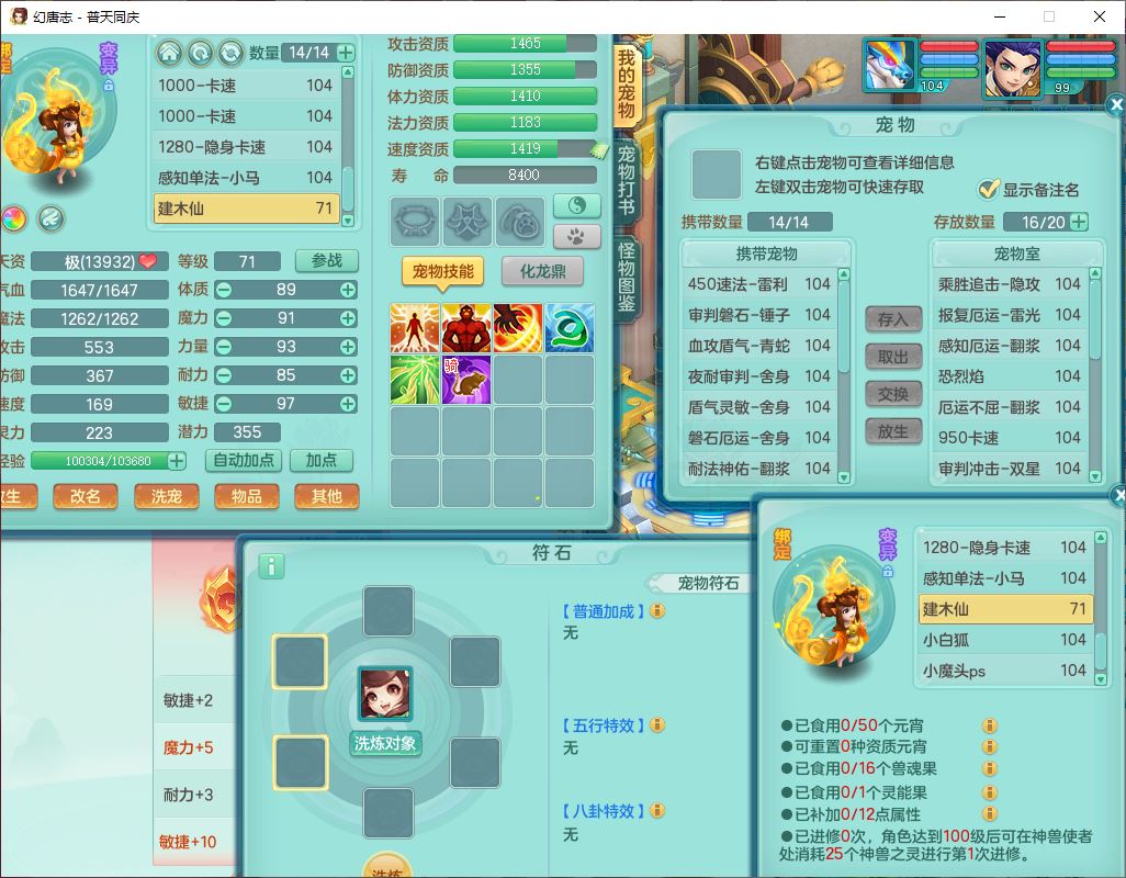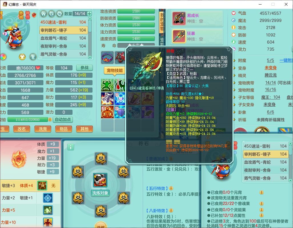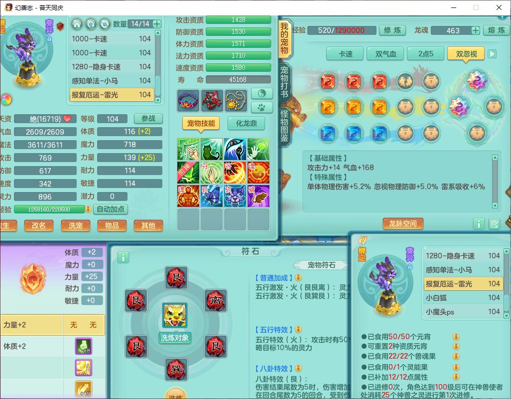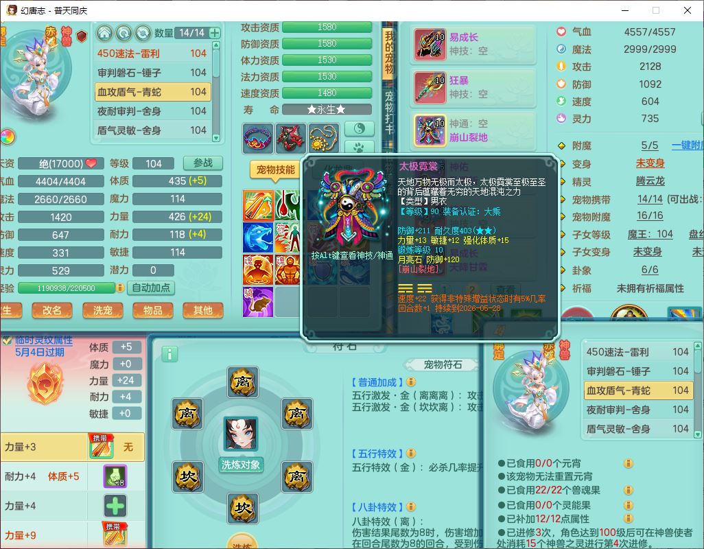 62441普天同庆99男天宫【潜龙号】力敏、全魔双精灵,1龙(换,破境)3内(1青蛇1龙马,1破境)4翻江3舍身1金炉1童子,8觉醒6宠皮7六字11四字19只满果子,8红装备,狂暴武器,崩山衣服,神佑乱刃项链,Y四海鞋子,Y笑里腰带,Y卸甲帽子,鼎2.5+42+168,3套符石,77天月卡,庭院157房屋153,永久外观、精灵皮肤,46个内丹碎片,2坐骑