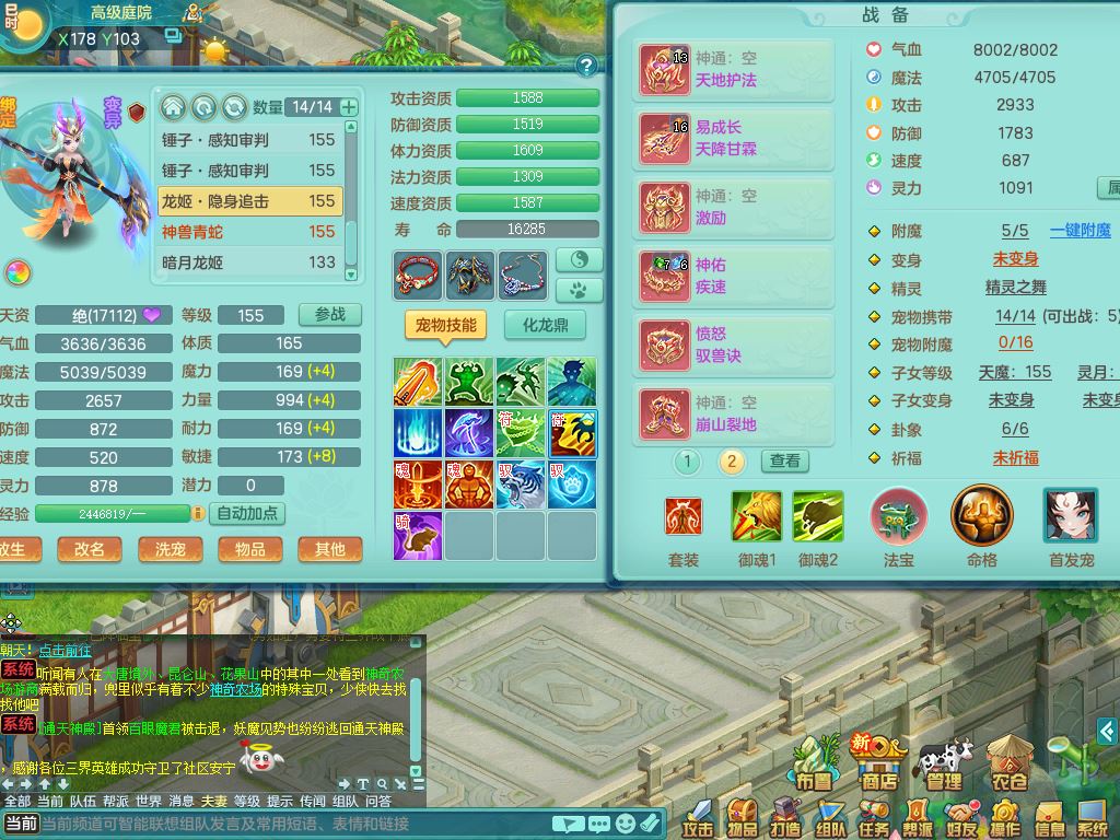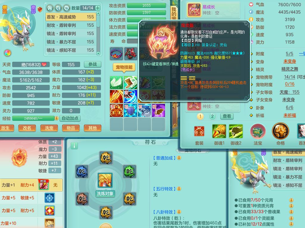 24-10443,2024区159男万兽【暴龙洪荒+西瓜冰】精灵舞,8字靓号,1内丹龙1青蛇无内1皮,4镜花1龙姬,7只满果子5觉醒3个5字(1洗练珠)1个6字,8红,932单加Y四海武器,Y头,崩山衣服,神佑流云项链,愤怒驭兽腰带,仓库封印头,格挡衣服,单加法缭鞋,鼎5.0,23天月卡,房屋151,永久外观精灵皮肤,1877金币,22仙兽灵44内丹碎片,两只双人坐骑,有双重