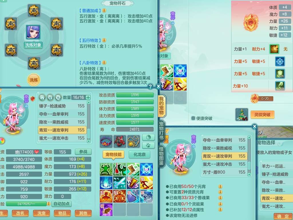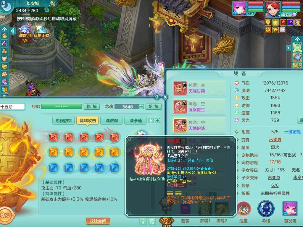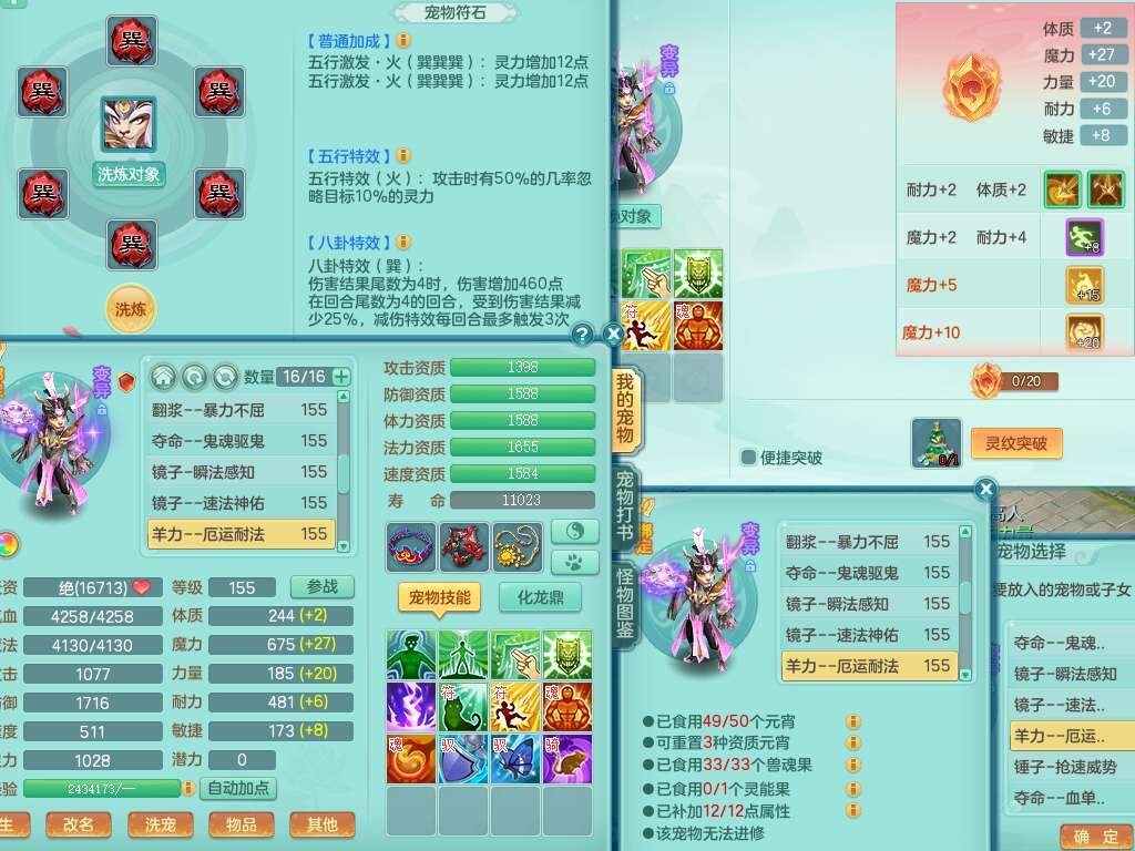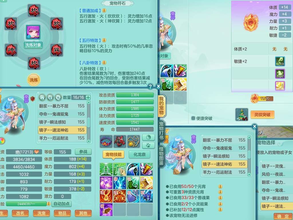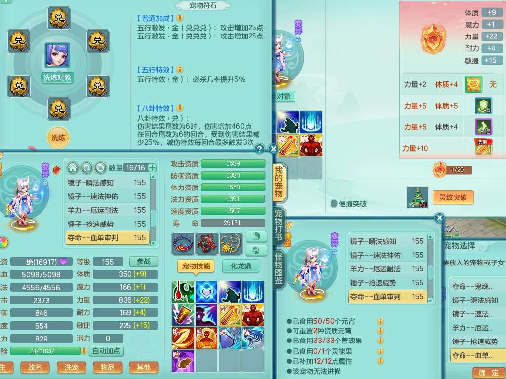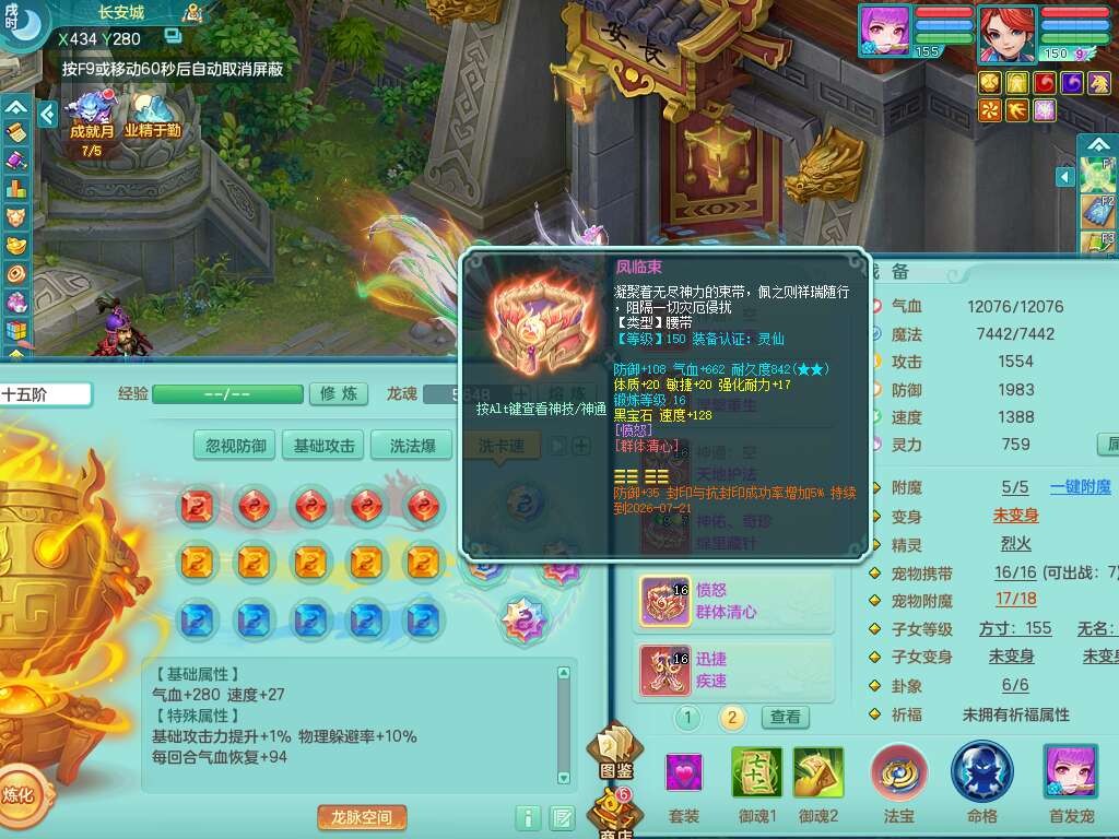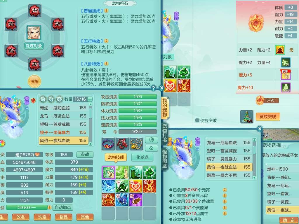 S22372风驰电掣159女方寸,精灵舞,1龙无内,1内胆神,【9只觉醒,已潜龙】,1宠皮,4特殊(青霜,夺命2,灵傀),3只六技能镜花灵,2只六技能龙姬,愤怒6特,可玩任何封辅,934易成长必杀单加武器,5.5基础鼎+70攻,280血,14个格子,8个纯六字,20只满果子,背包45神兽内丹碎片,经验成就在榜,火焰之力武器皮肤,双人飞行坐骑+火焰之力,带2272金币,205W银币,月卡还有53天。