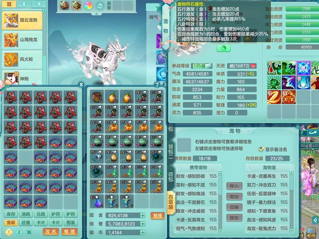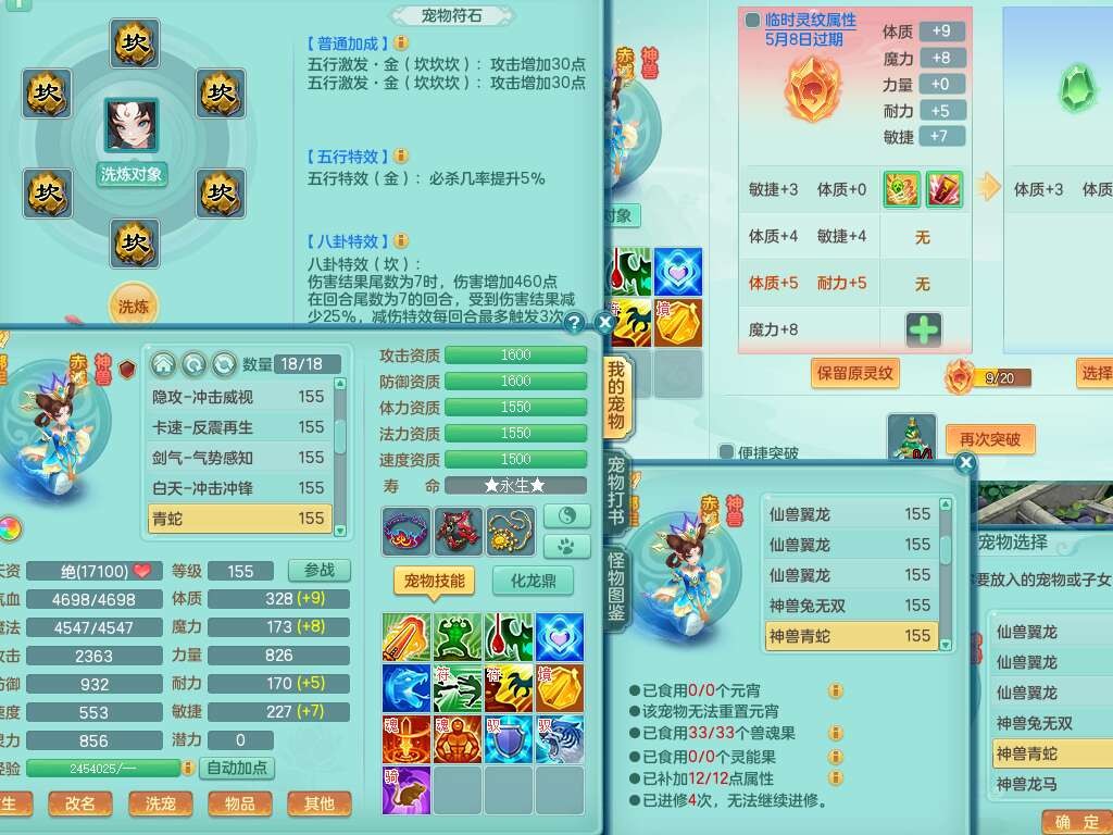 A22371今年勇159男天宫,精灵歌+舞,7龙3内(1龙马1蛇),8破镜,【11只觉醒,已潜龙】,8位靓号,4只六技能镜,7特殊,化龙鼎6.0,15个纯六字,暴龙泰坦+西瓜冰+神驹马到成功。