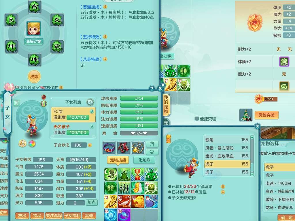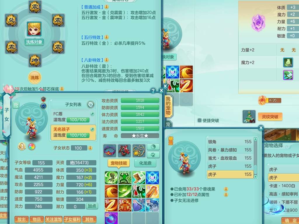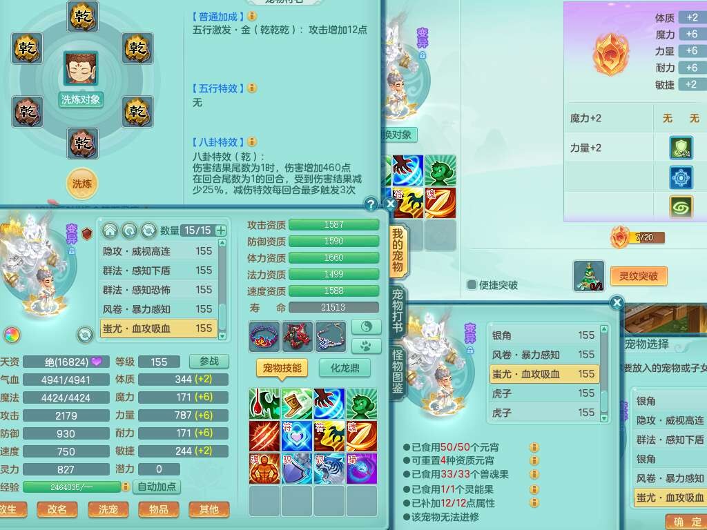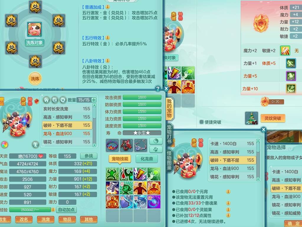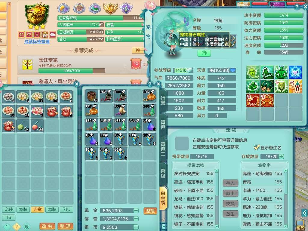 S22362风驰电掣159男灵月山,精灵舞,2龙2内胆神(1马),【10觉醒,已潜龙】,4位靓号不含4,3宠皮,3特殊(羽袭,善恶),4只六技能镜花灵,愤怒单加51腰带,易成长迟滞鞋子,五特,有愤怒单加57腰带,5.5基础鼎+70攻+280血,差174积分永久14个格子,7个纯六字,2个五字,18只满果子,双人坐骑,有40个神兽内丹碎片,87天月卡。
