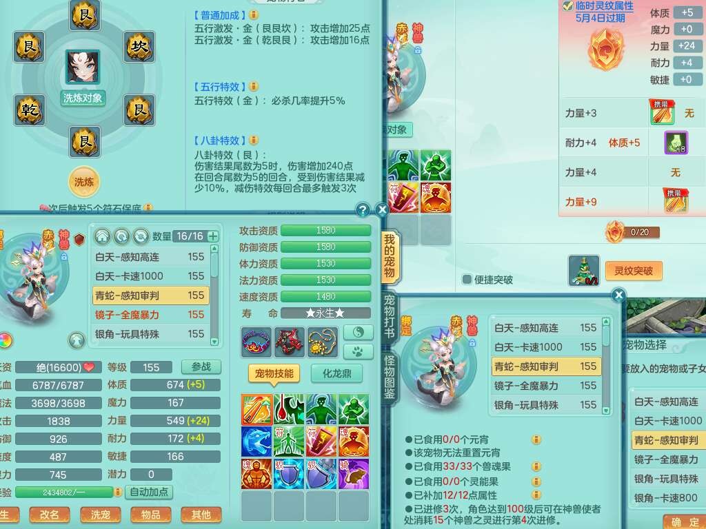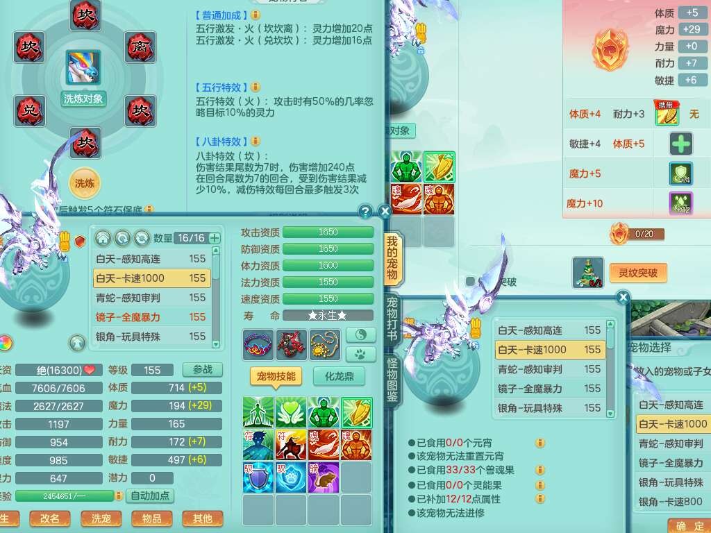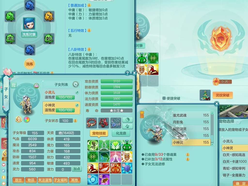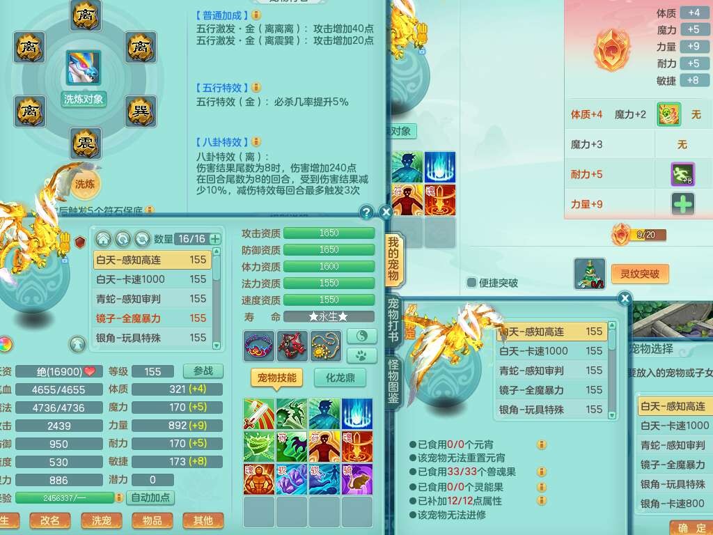 S22361龙腾九州159男天宫,精灵舞,2龙(1龙没内),1内丹蛇,2觉醒,4位靓号不含4,1特殊(枪出),1只六技能镜花灵,1只六技能龙姬,易成长单加50头,904击退群体守护武器,神佑四灵诀单加链子,指挥易成长单加53腰带,崩山鞋子,13个永久格子,6只满果子,双人坐骑,有28个神兽内丹碎片,107天月卡。