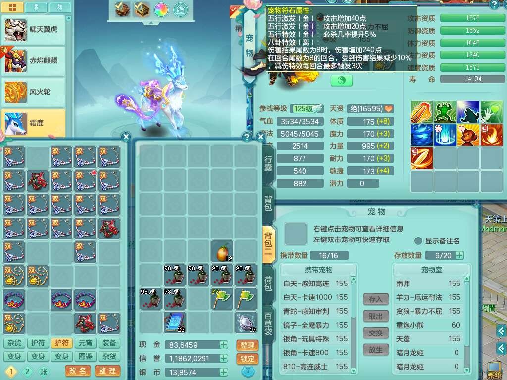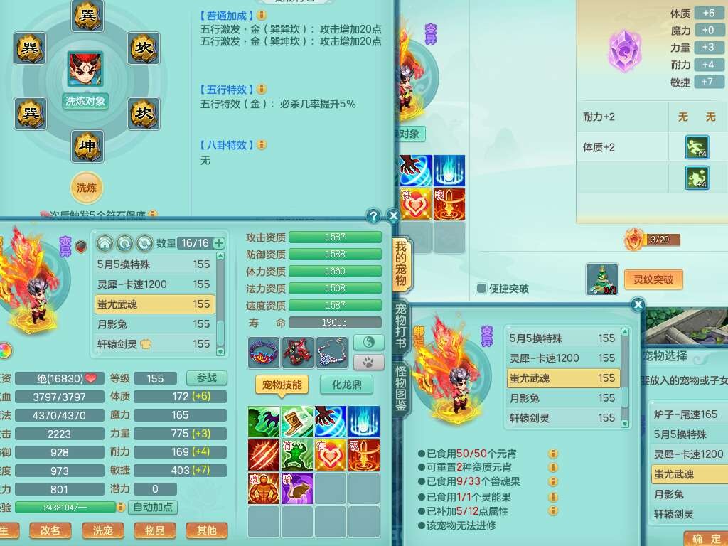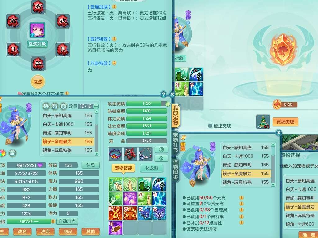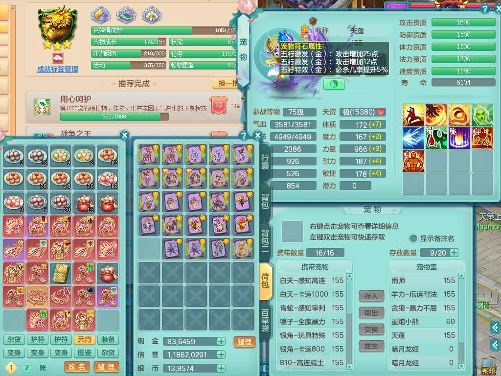 S22361龙腾九州159男天宫,精灵舞,2龙(1龙没内),1内丹蛇,2觉醒,4位靓号不含4,1特殊(枪出),1只六技能镜花灵,1只六技能龙姬,易成长单加50头,904击退群体守护武器,神佑四灵诀单加链子,指挥易成长单加53腰带,崩山鞋子,13个永久格子,6只满果子,双人坐骑,有28个神兽内丹碎片,107天月卡。