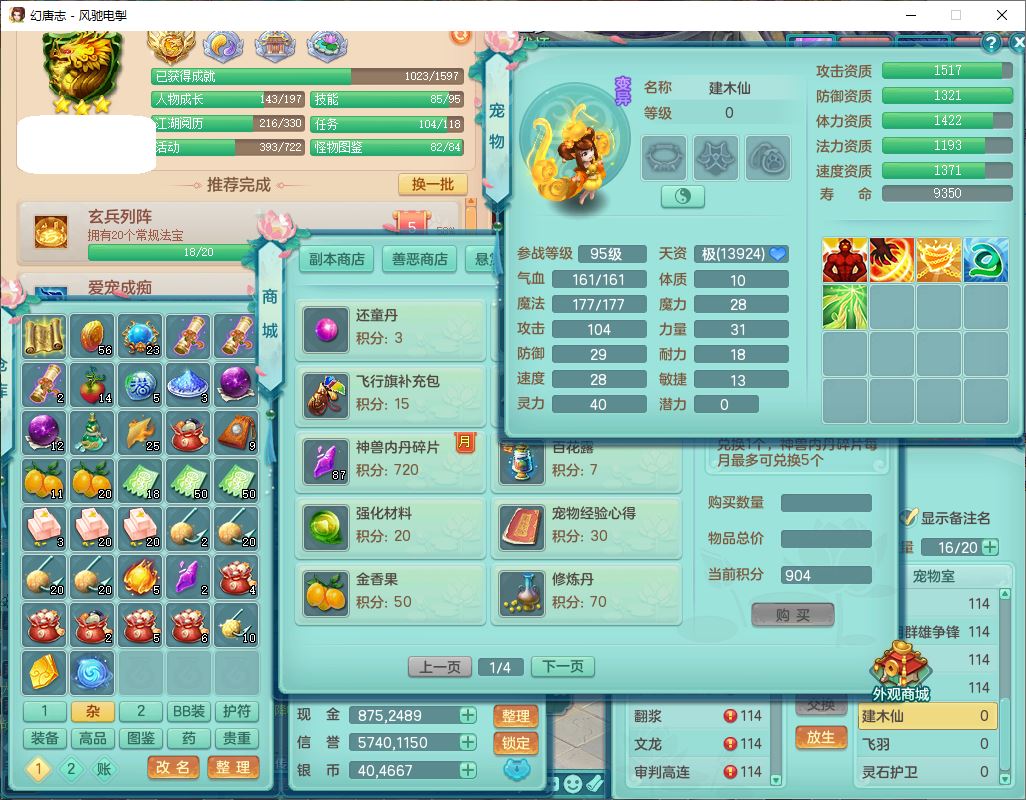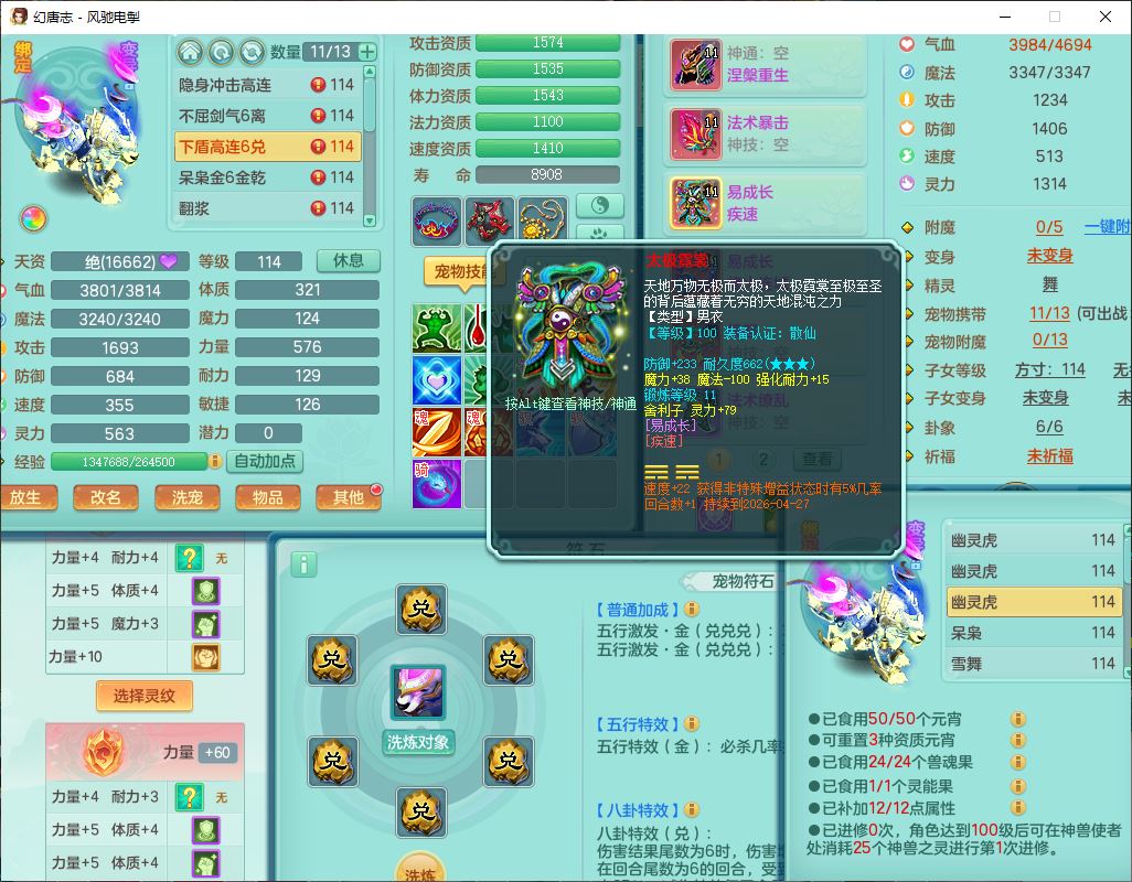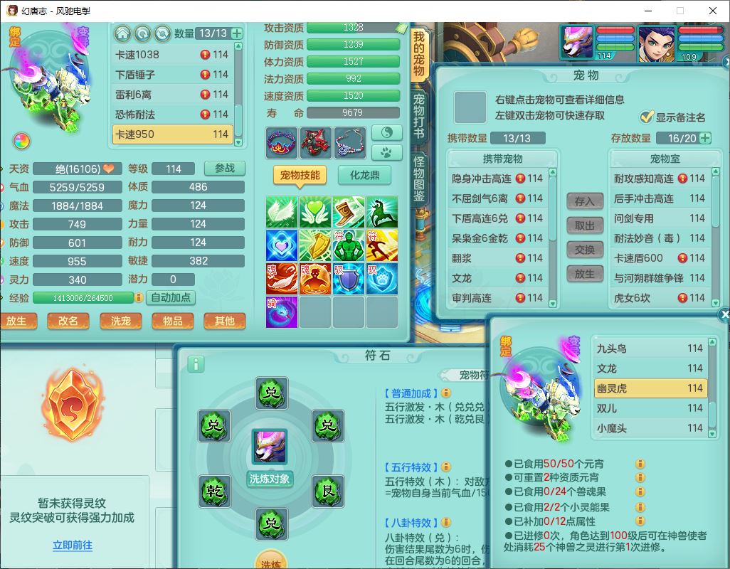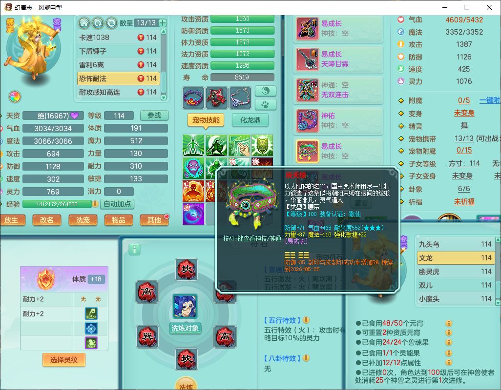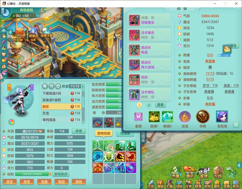 4380风驰电掣109男龙宫【潜龙号】精灵舞,1内2羽袭1翻江,宝宝种类齐全,7觉醒8六字8四字16只满果子,9红装备,法爆武器,Y疾速衣服,Y烽火项链,法缭鞋子,一套8红物理装,Y四海武器,神佑项链,Y破体鞋子,鼎3.0+42+168,2套符石,庭院161,永久外观、精灵皮肤,23个仙兽灵,3双人坐骑(2飞行)
