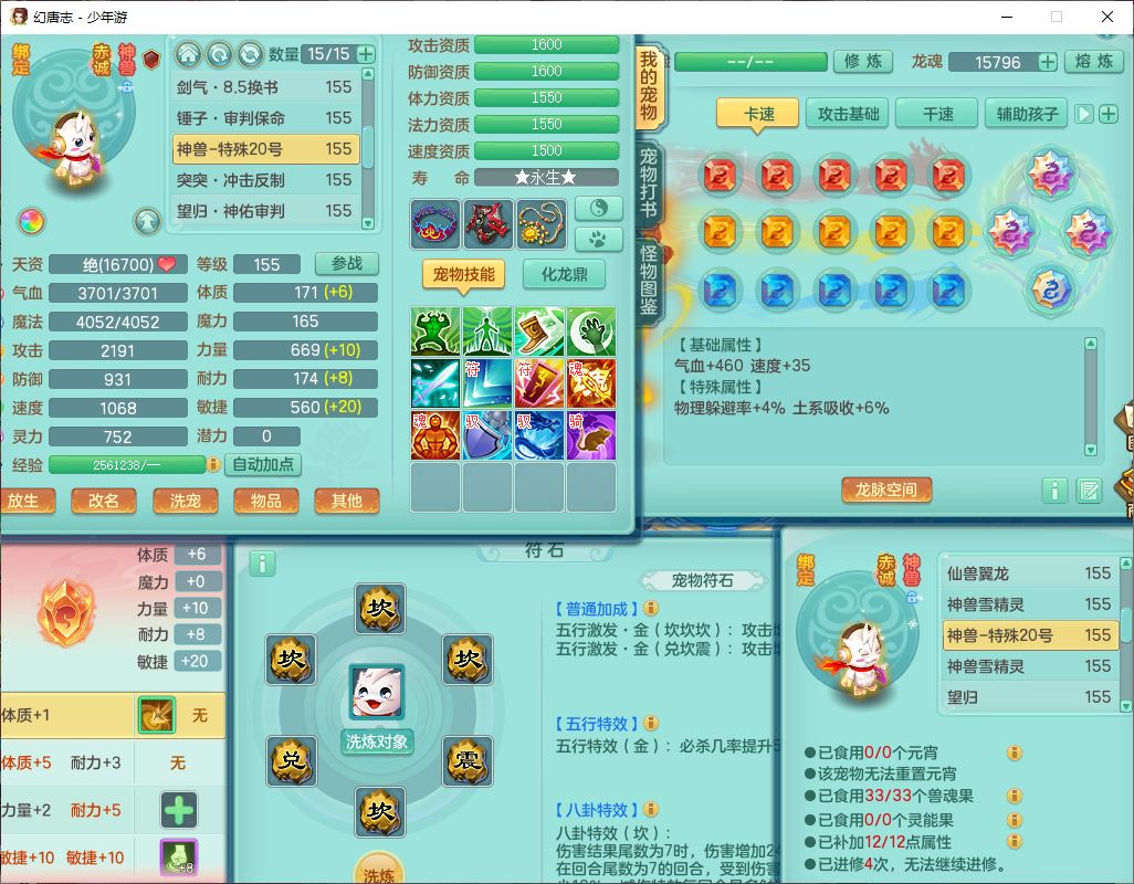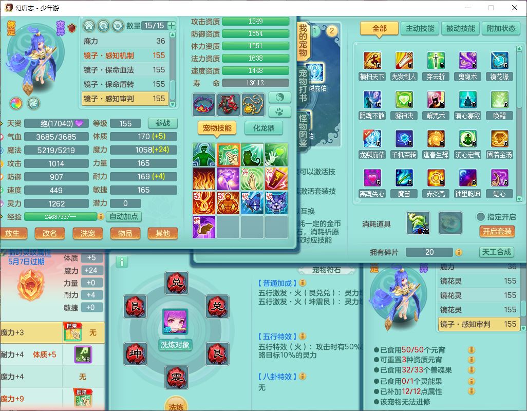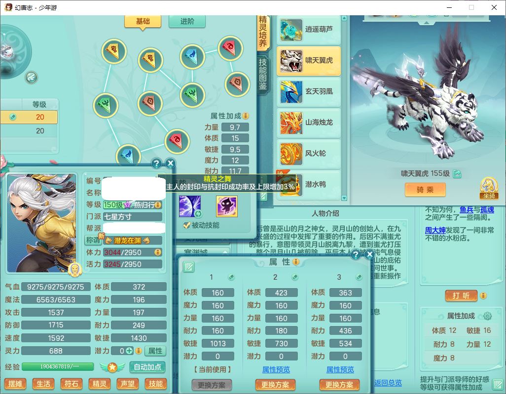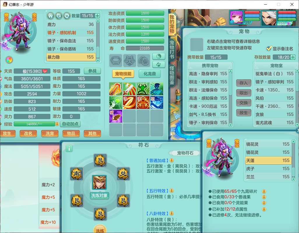 24340少年游159男方寸【潜龙号】8位靓号,精灵舞,6龙(1换,1破境)3内1望归4镜花2特殊(焚心,兽决祈雨),12觉醒1宠皮11六字1五字9四字综合20只满果子,8红全单加装备,愤怒Y腰带,鼎5.5+70+280,130多w神武币,1神兽内丹,5坐骑(3双人飞行)
