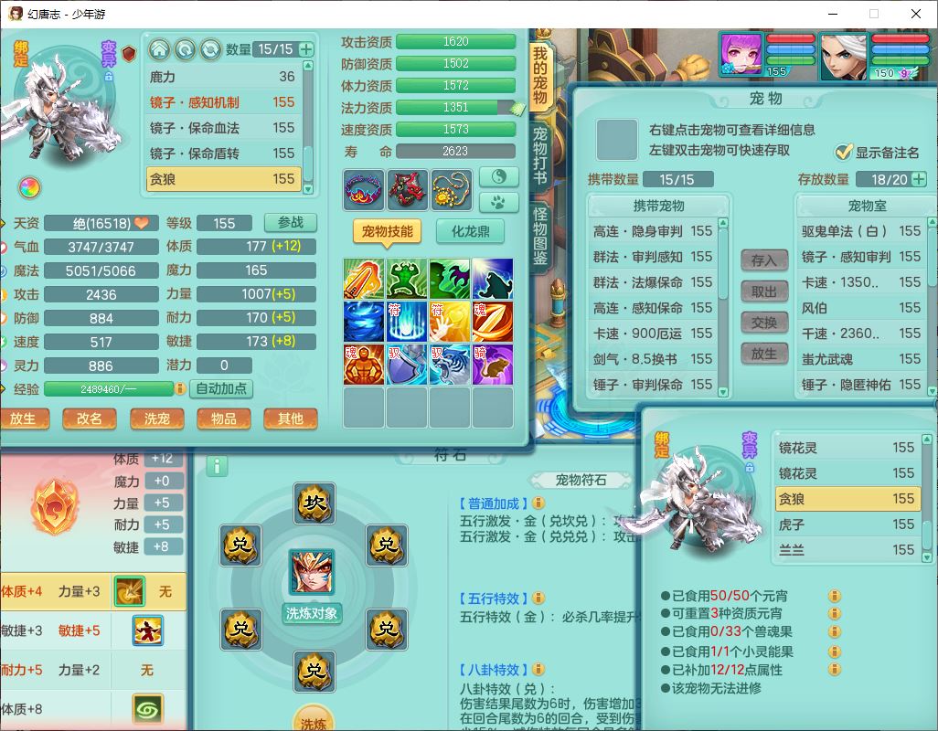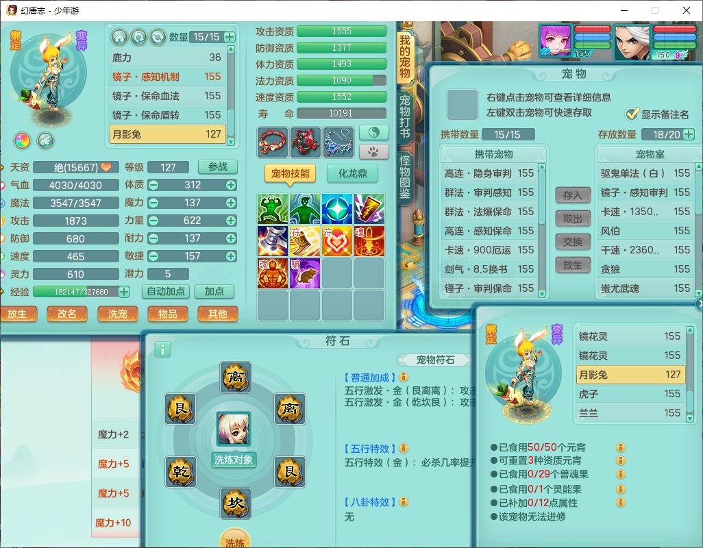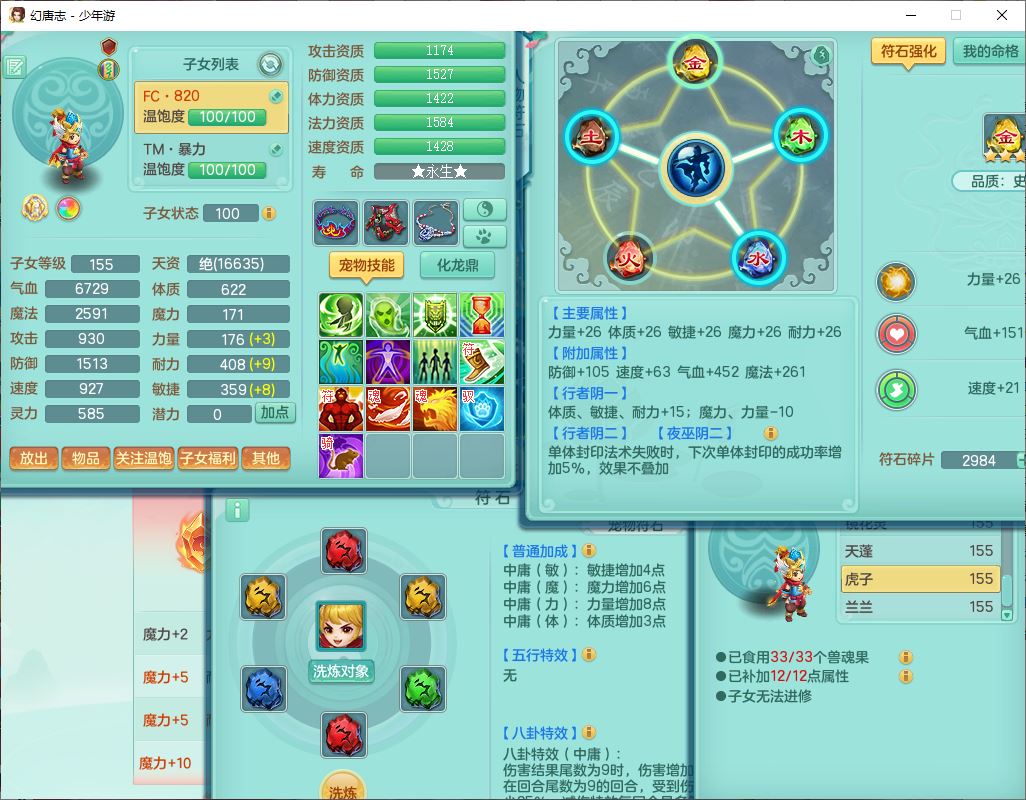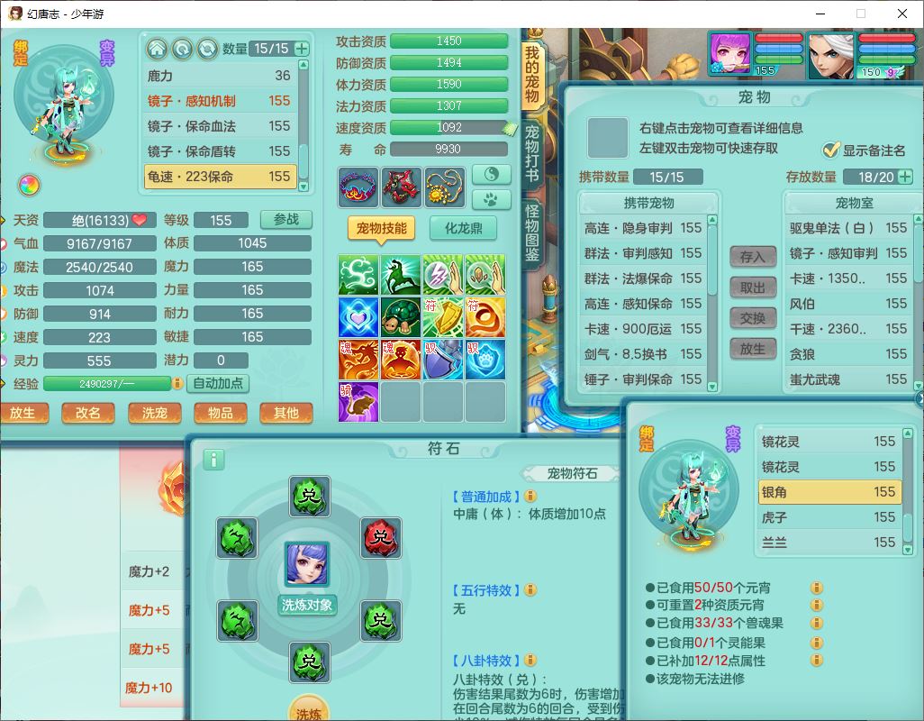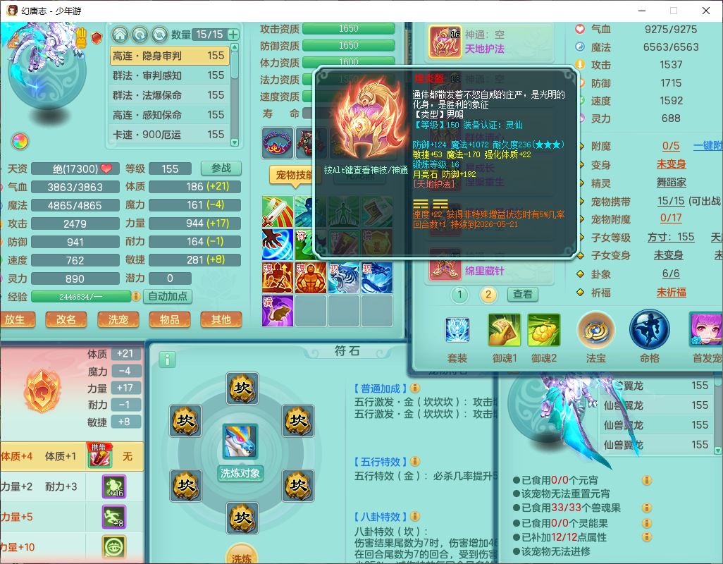 24340少年游159男方寸【潜龙号】8位靓号,精灵舞,6龙(1换,1破境)3内1望归4镜花2特殊(焚心,兽决祈雨),12觉醒1宠皮11六字1五字9四字综合20只满果子,8红全单加装备,愤怒Y腰带,鼎5.5+70+280,130多w神武币,1神兽内丹,5坐骑(3双人飞行)