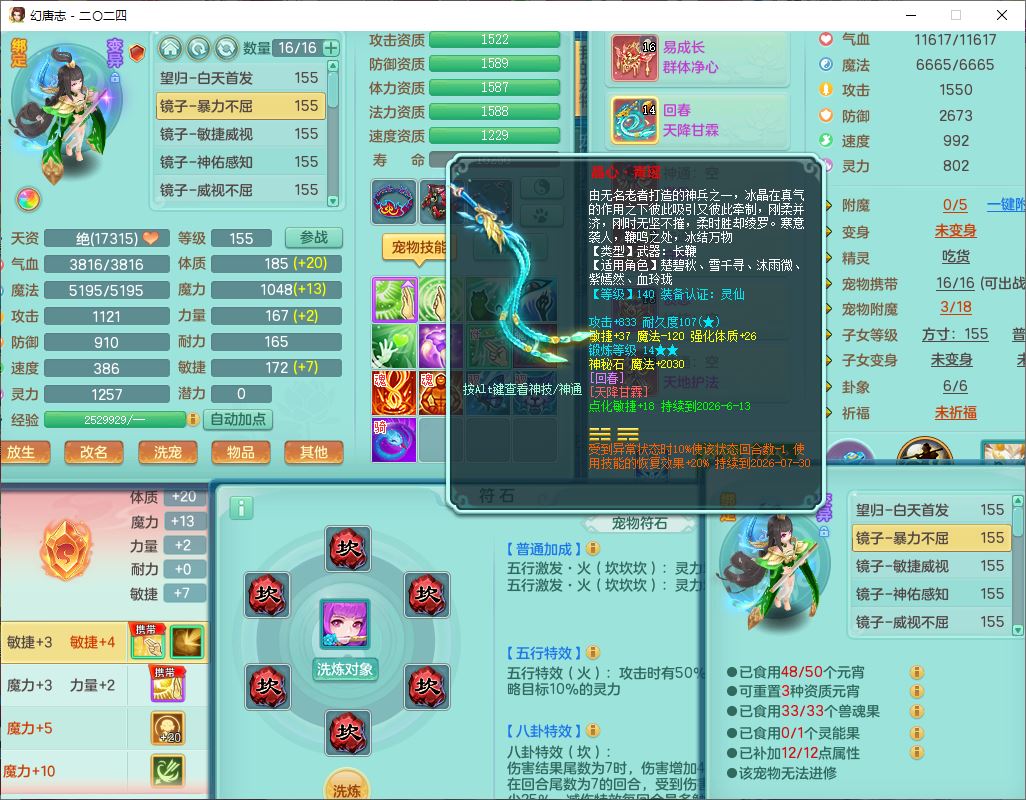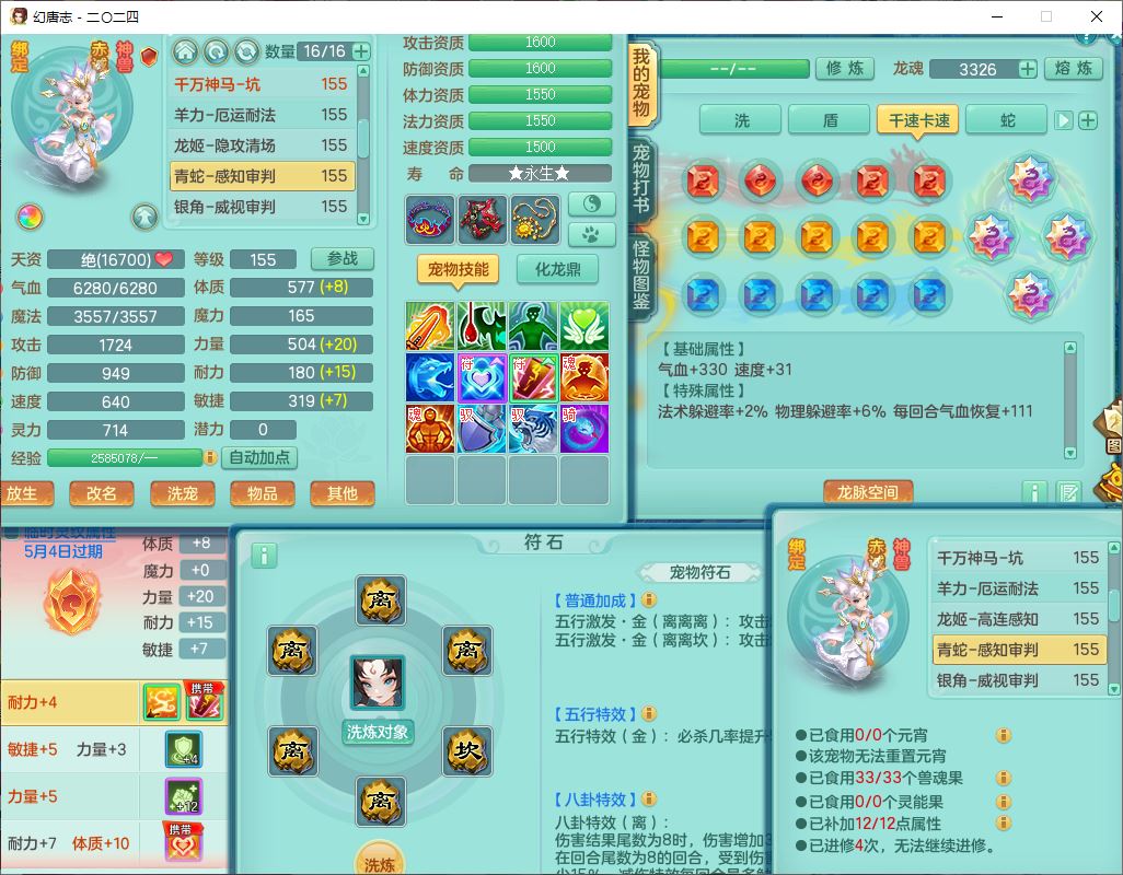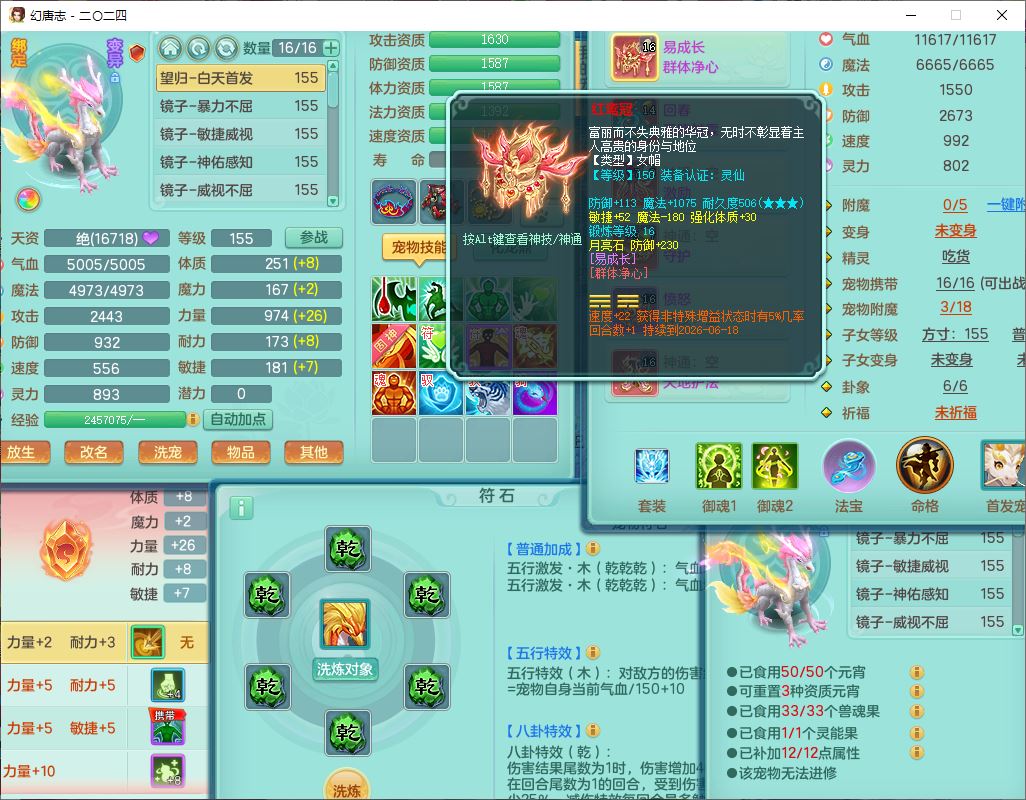 24-10456,2024区159女无量【马上发财+火焰之力+准潜龙号,差2条主符石1条附加】精灵舞,2龙(1无内)3内(1青蛇1龙马)1望归4镜花1龙姬1金炉,13觉醒2宠皮7六字1五字5四字综合18只满果子,全单加8红装备,Y晶清帽子,回春四海武器,愤怒腰带,仓库多装备,法缭真元衣服,破甲愈气鞋子,934单加Y武器,震怒四海腰带,鼎5.5+70+280,144天月卡,冰晶庭院146,永久外观、精灵皮肤,4000多金币,3坐骑
