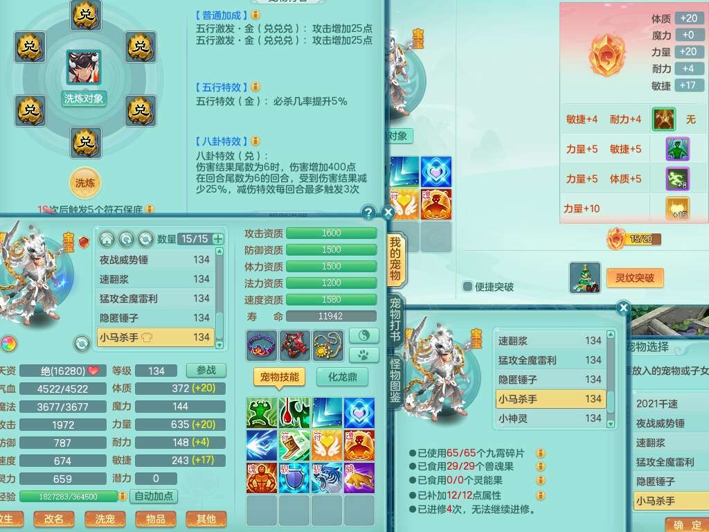 K22386普天同庆129男方寸,精灵舞,2龙2内胆神(1蛇),2破镜,1神兽(蛇)+77个神兽内丹碎片,【19觉醒,已潜龙】,9宠皮,三红封印精通易成长明镜非台头,愤怒笑里单加腰带,迅捷四海单加41鞋子,六特,物理装备有,718易成长单加42武器,破甲明镜非台单加头,坚毅链子,4.0基础鼎+56攻+224血,13个纯六字,1个五字,25只满果子,仓库还有33个果子,宠排在榜,3只双人坐骑,暴龙洪荒+西瓜冰武器,带2097金币,185天月卡。➕159女万兽,精灵舞,1觉醒,1宠皮,2特殊(虎虎,上善),精准易成长头,900必杀易成长武器,神佑单加链子,愤怒单加53腰带,三红迅捷易成长慈航鞋子,有924易成长武器,5.5基础鼎+70攻,双人坐骑。