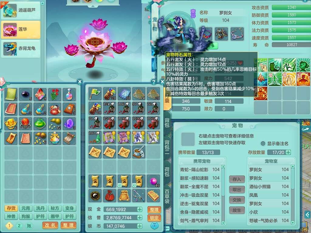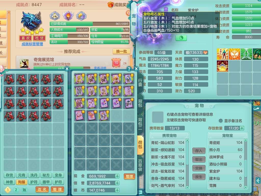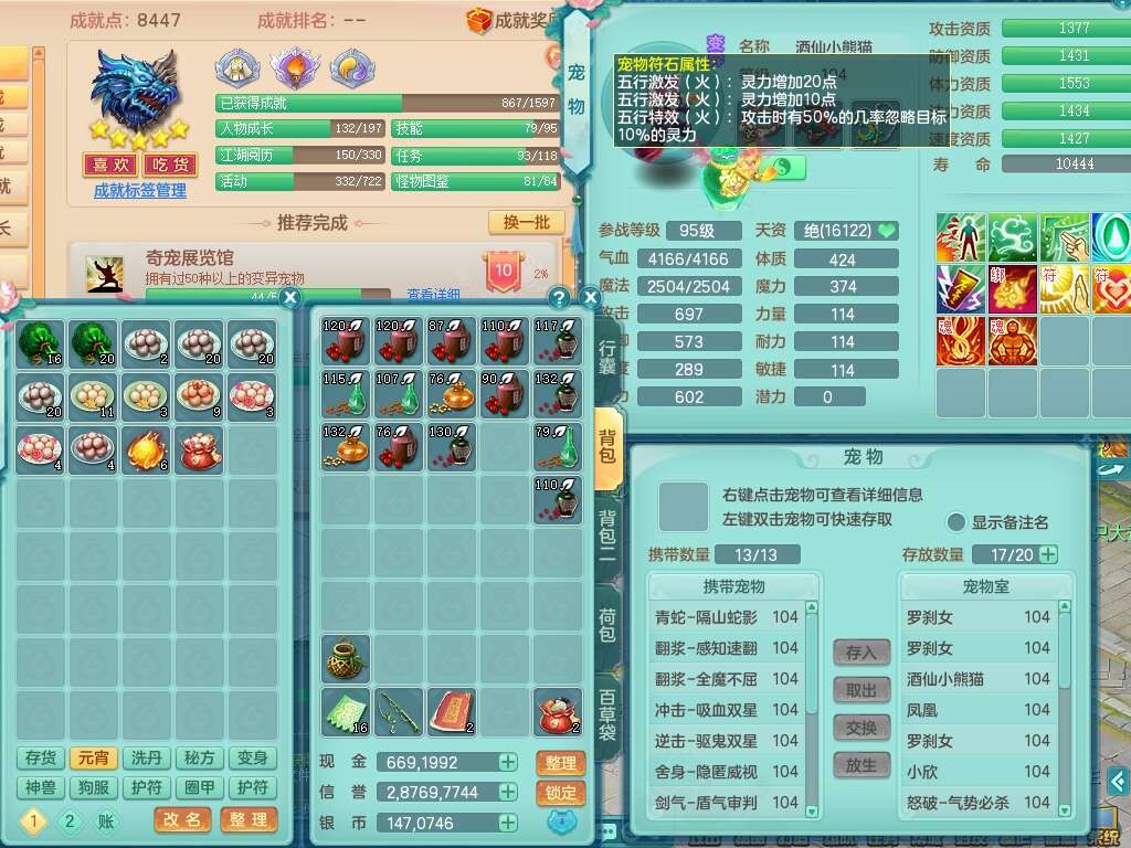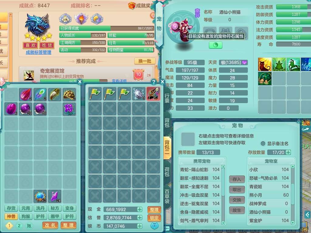 S22395,2020区99男万兽,1内胆神,1只觉醒,8位靓号,541易成长必杀单加武器,崩山单加衣服,神佑玉清链子,愤怒心神合一单加腰带,易成长单加30鞋子,仓库有548狂暴单加武器,542易成长奇珍单加33武器,3.0基础鼎,综合12只满果子,仓库62仙兽蛋,24神兽内丹碎片,双人坐骑,带百万银币。