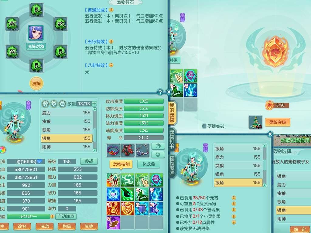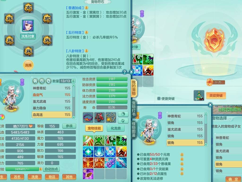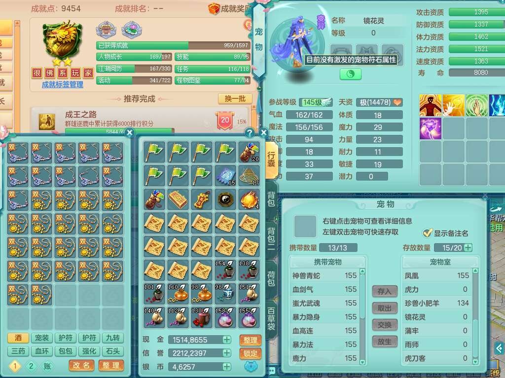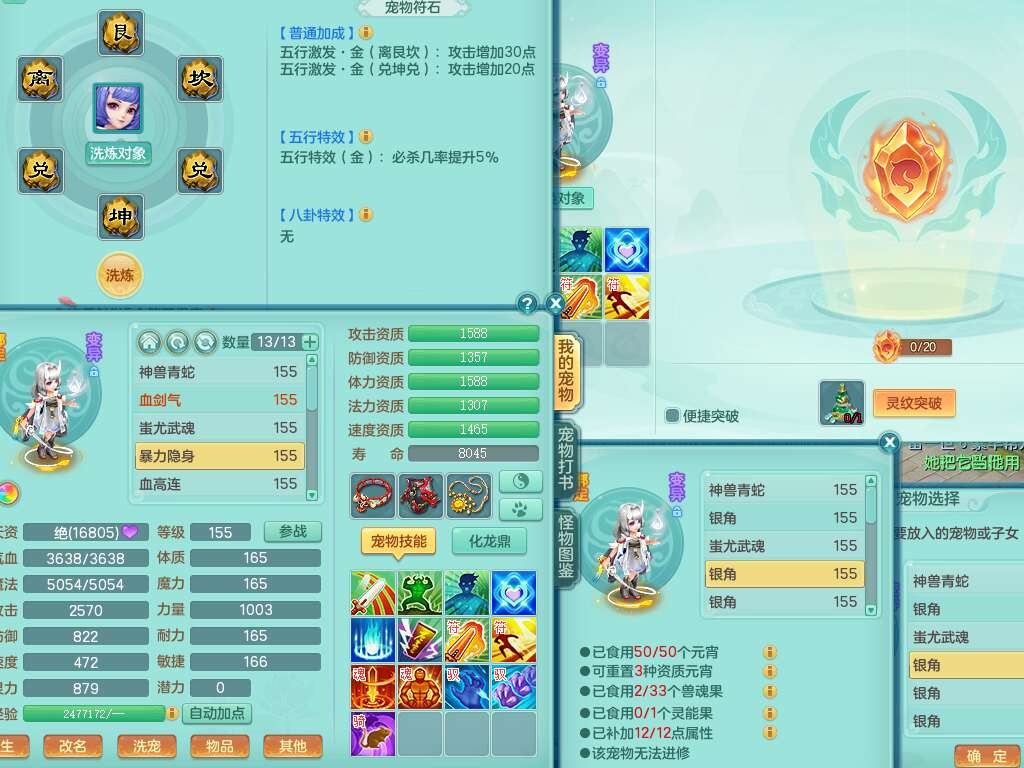 S22388风华绝代159男龙宫,精灵歌,1内胆神,1特殊(月光),击退单加56武器,有928法暴单加55武器,易成长单加56衣服,易成长激励单加52鞋子,4.5基础鼎,综合4只满果子。