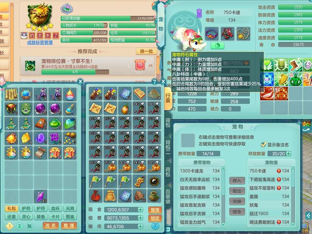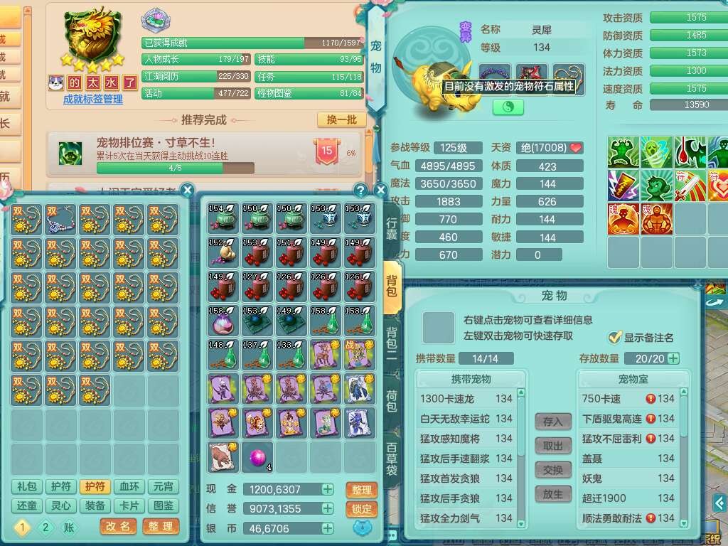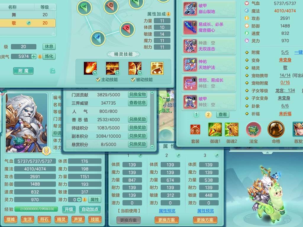 K22380普天同庆129男万兽,精灵歌+舞,1龙无内,1内胆神,5只觉醒(潜龙条件化龙鼎满足,符石差4个主要属性,2个附加属性,宠物3只满足),星辰之拥,物理双破甲,破甲崩山头,破甲单加鞋子,三红必杀易成长魔音武器,破血单加45衣服,神佑罗汉单加45链子,愤怒易腰带,有209易成长单加链子,五雷单加头,4.5基础鼎,6个纯六字,3个5字,19只满果子,仓库48神兽内丹碎片,宠排在榜,成就在榜,沙洲羊驼坐骑,带1763金币,月卡还有37天。