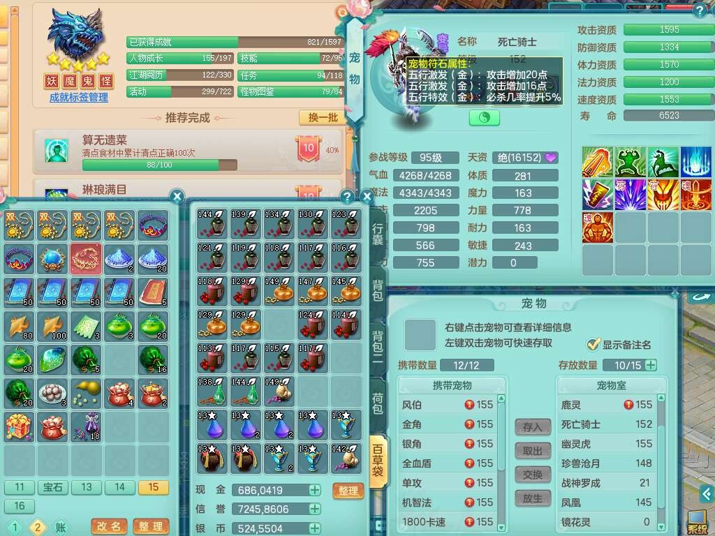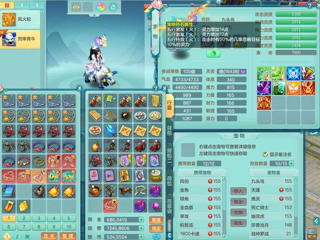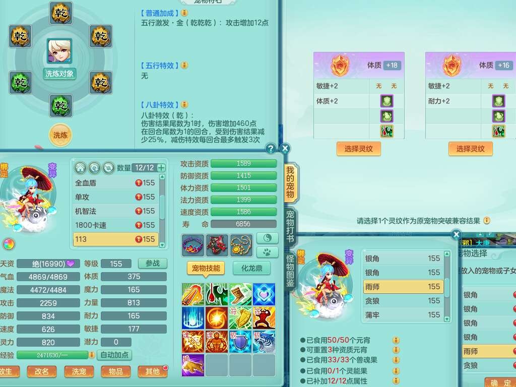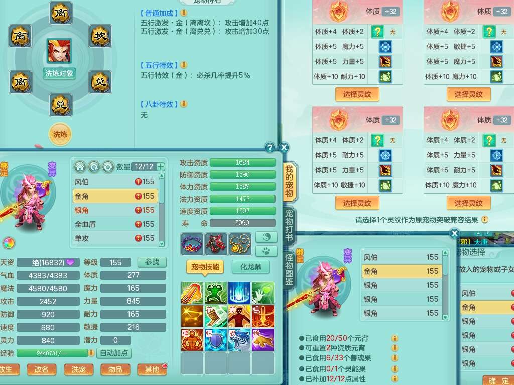 K22375浪淘沙159男方寸,精灵舞,3觉醒,2特殊(双星,以战),易成长封印精通单加头,易成长玉清链子,愤怒单加53腰带,迅捷单加50鞋子,4.5基础鼎,1个五字,综合4只满果子,带524w神武币。➕159女五庄,精灵歌,1神兽,1只六技能镜花灵,912狂暴易成长单加武器,神佑链子,易成长单加腰带,易成长单加53鞋子,4.5基础鼎。➕159女万兽,精灵歌,2觉醒,1特殊(剑气),易成长单加54头,934狂暴武器,神佑单加51链子,易成长单加50腰带,4.5基础鼎,1个五字,2只满果子,带169w神武币。