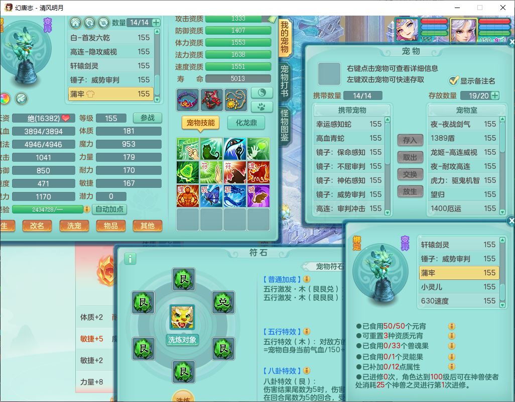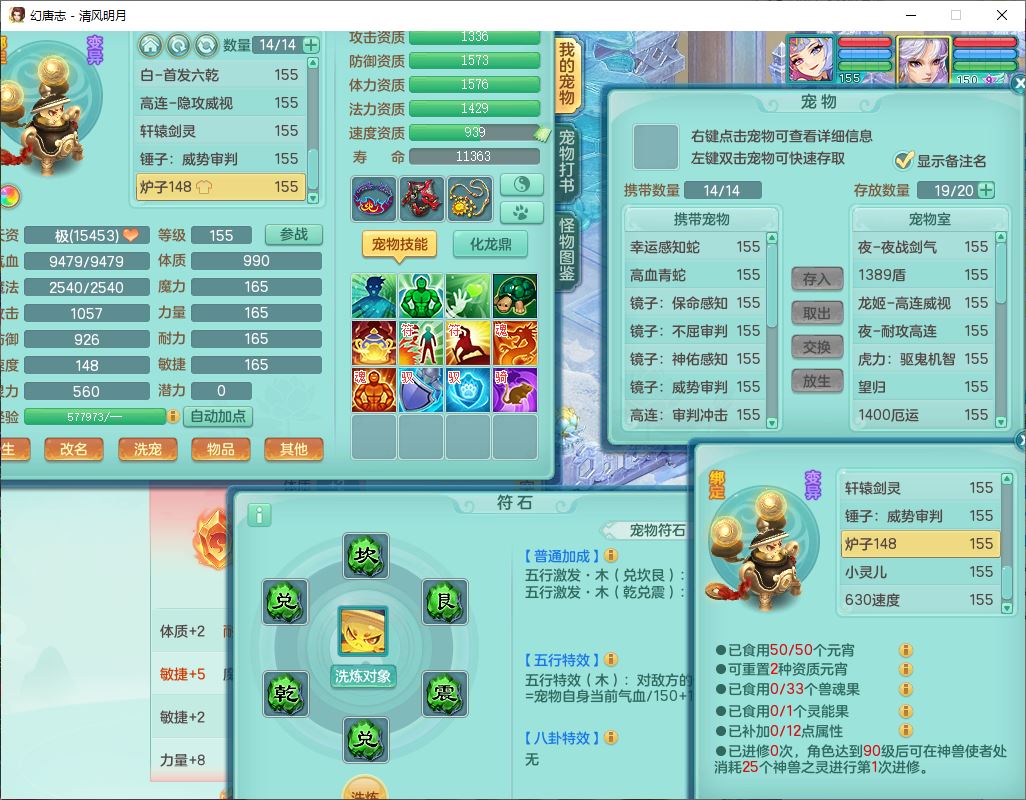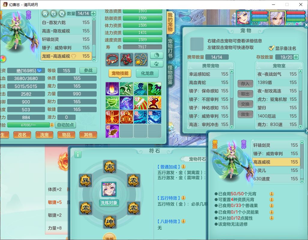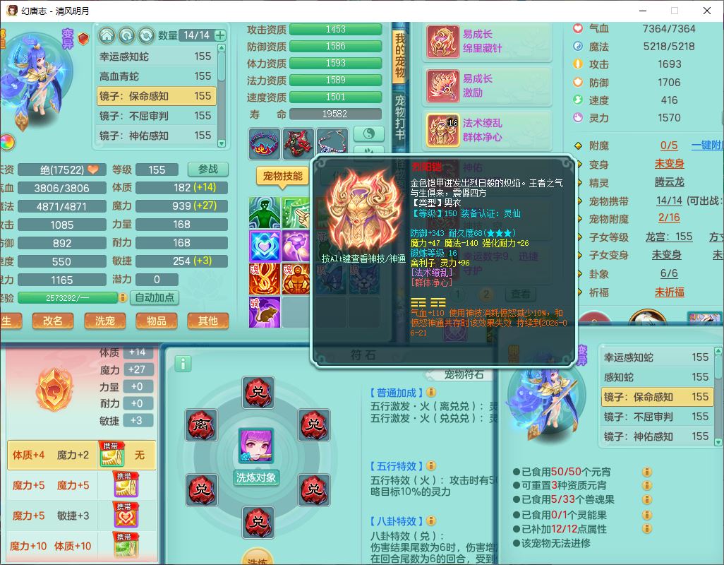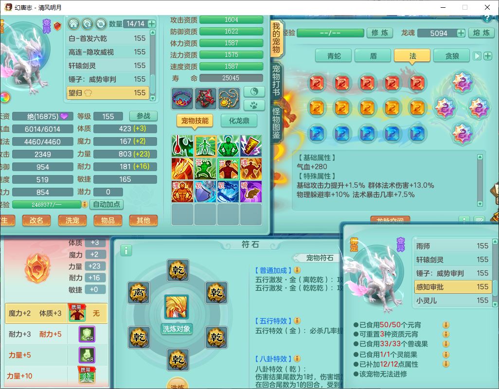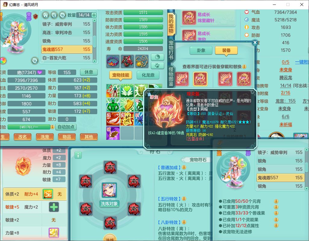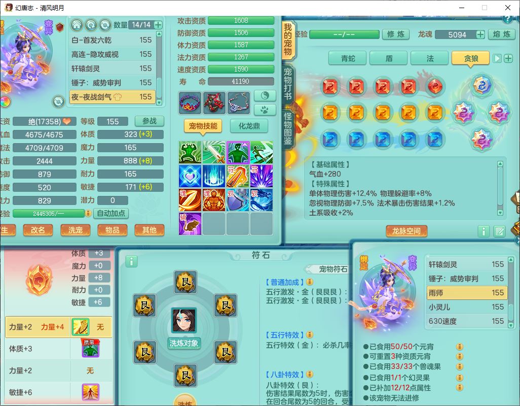 62444清风明月159男魔王【准潜龙号,差3条主符石1条附加1颗赤炎】精灵舞,2内丹青蛇1望归4镜花1龙姬1金炉,12觉醒5宠皮11六字3五字7四字20只满果子,10红双法缭星辰之拥装备,五雷帽子,法爆魔音武器,法缭晶清衣服,266单加Y四灵项链,Y烽火腰带,法缭鞋子,一套12红辅助装,Y笑里衣服,Y激励武器,幸运迅捷守护鞋子,鼎5.5+280,185天月卡,冰晶庭院157,永久外观、精灵皮肤,18个仙兽灵,34个内丹碎片,2双人坐骑(1飞行),带两个156奶粉,装备宝宝齐全