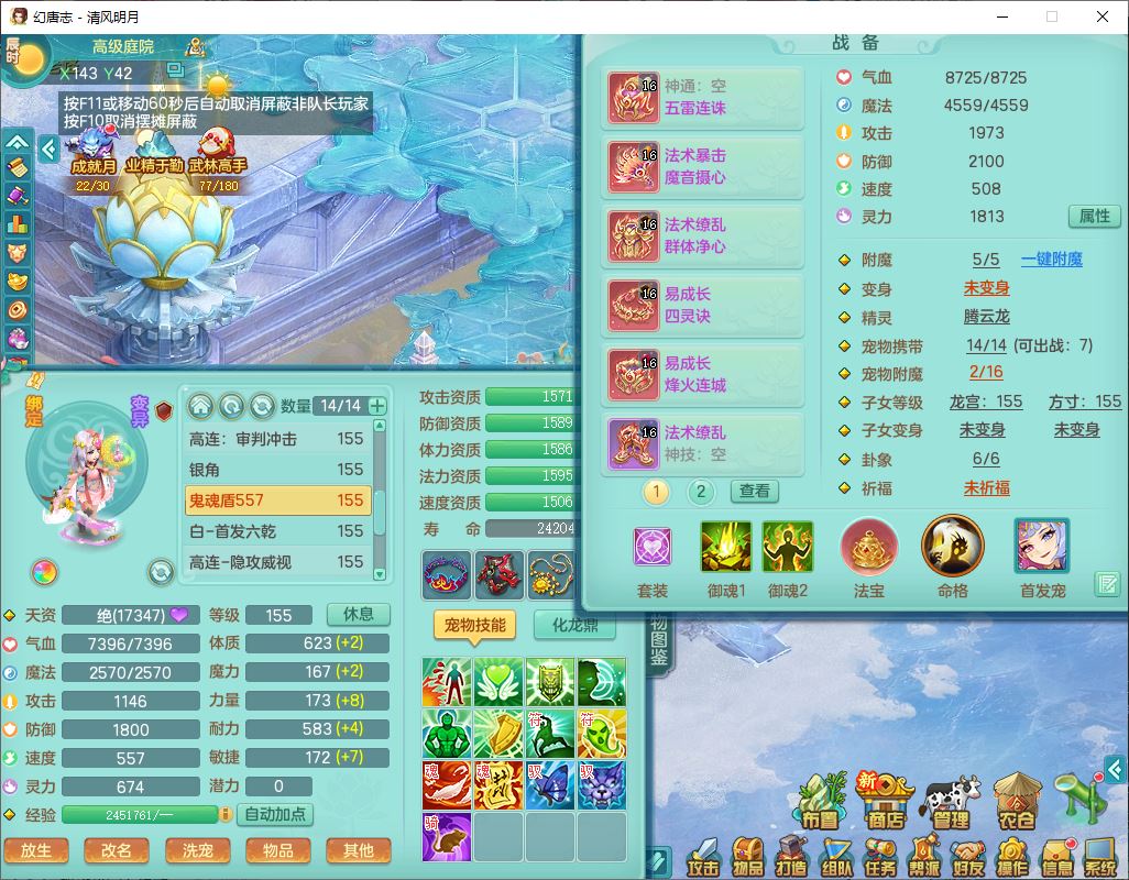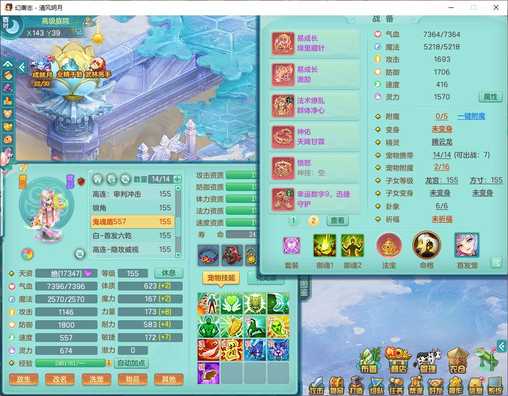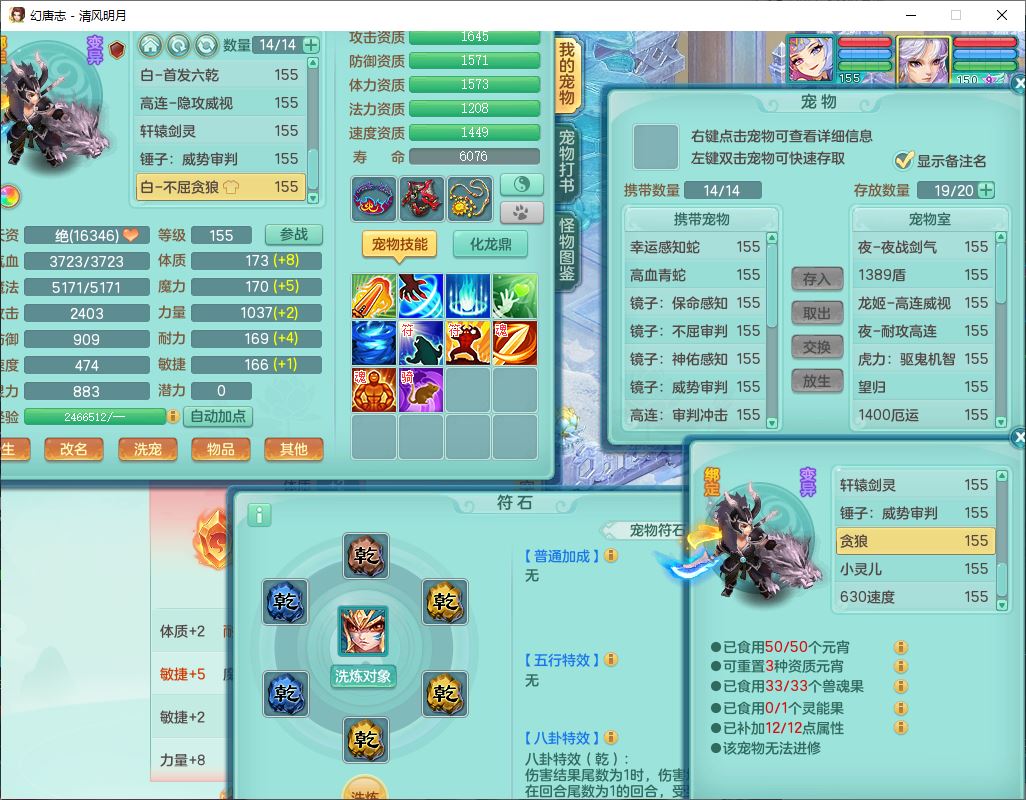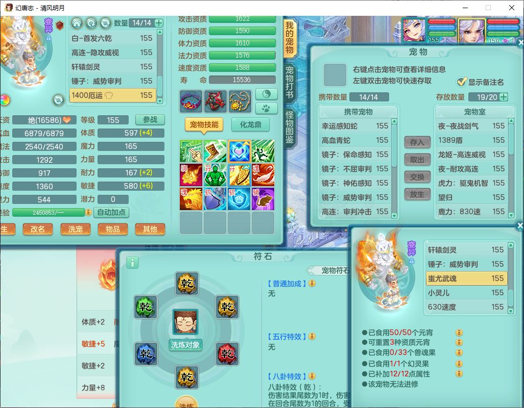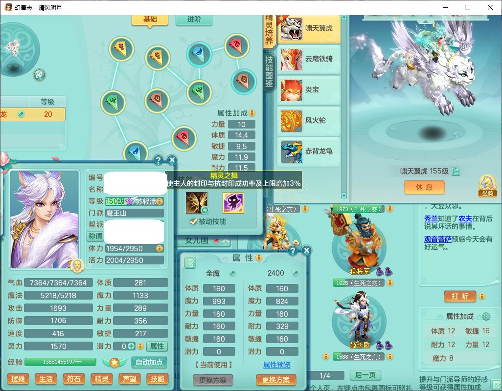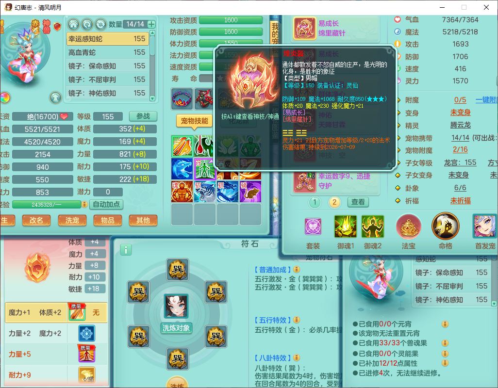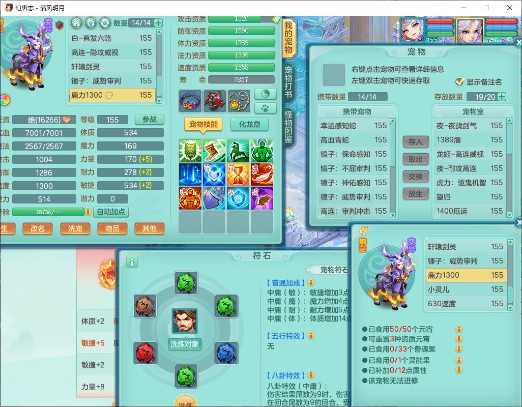 62444清风明月159男魔王【准潜龙号,差3条主符石1条附加1颗赤炎】精灵舞,2内丹青蛇1望归4镜花1龙姬1金炉,12觉醒5宠皮11六字3五字7四字20只满果子,10红双法缭星辰之拥装备,五雷帽子,法爆魔音武器,法缭晶清衣服,266单加Y四灵项链,Y烽火腰带,法缭鞋子,一套12红辅助装,Y笑里衣服,Y激励武器,幸运迅捷守护鞋子,鼎5.5+280,185天月卡,冰晶庭院157,永久外观、精灵皮肤,18个仙兽灵,34个内丹碎片,2双人坐骑(1飞行),带两个156奶粉,装备宝宝齐全