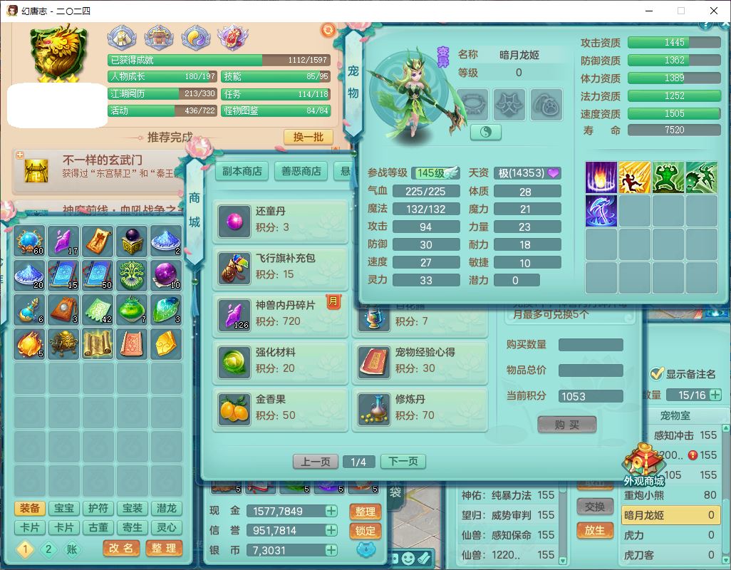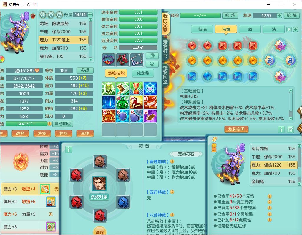 24355,2024区159男龙宫【暴龙洪荒+西瓜冰】精灵舞,2龙2内(1龙马)1望归4镜花1龙姬,1觉醒4宠皮1六字2五字3四字11只满果子,8红装备,Y笑里帽子,五雷武器,愤怒烽火腰带,Y法缭鞋子,有物理装备,狂暴守护武器,崩山项链,破甲鞋子,鼎4.5,122天月卡,冰晶庭院183房屋186,永久外观、精灵皮肤,60个仙兽灵,17个内丹碎片,3双人坐骑(1双人)