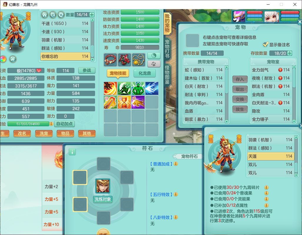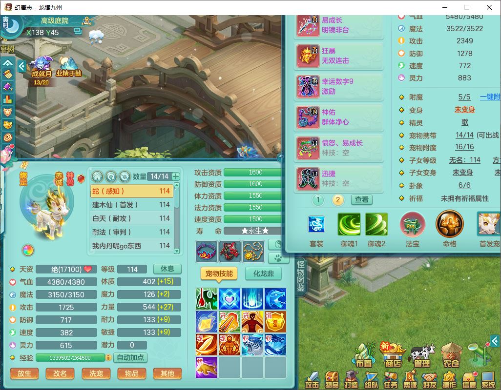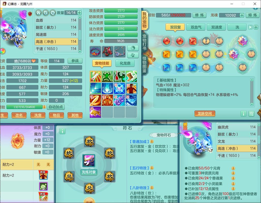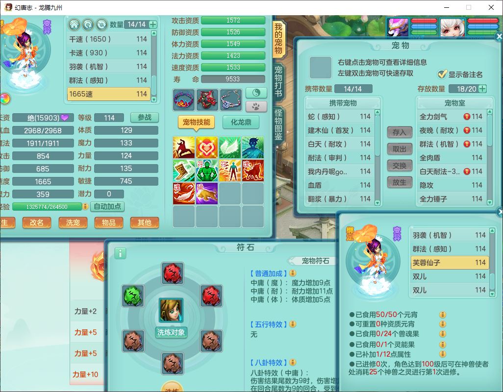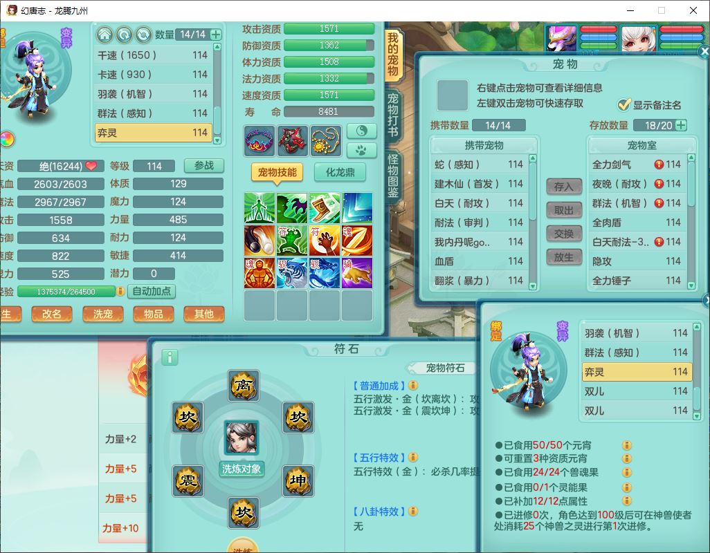 24354龙腾九州109女无名【潜龙号+暴龙洪荒】精灵歌,1龙(换、无内)1内丹龙马(破境)1建木1飞羽2羽袭,8觉醒1宠皮7六字9四字18只满果子,11红装备,Y明镜帽子,狂暴破血武器,幸运9激励衣服,神佑晶清项链,愤怒Y腰带,幸运4四海鞋子,鼎3.0+42+168,2套符石,57天月卡,永久头饰、精灵皮肤,31个内丹碎片,1双人坐骑