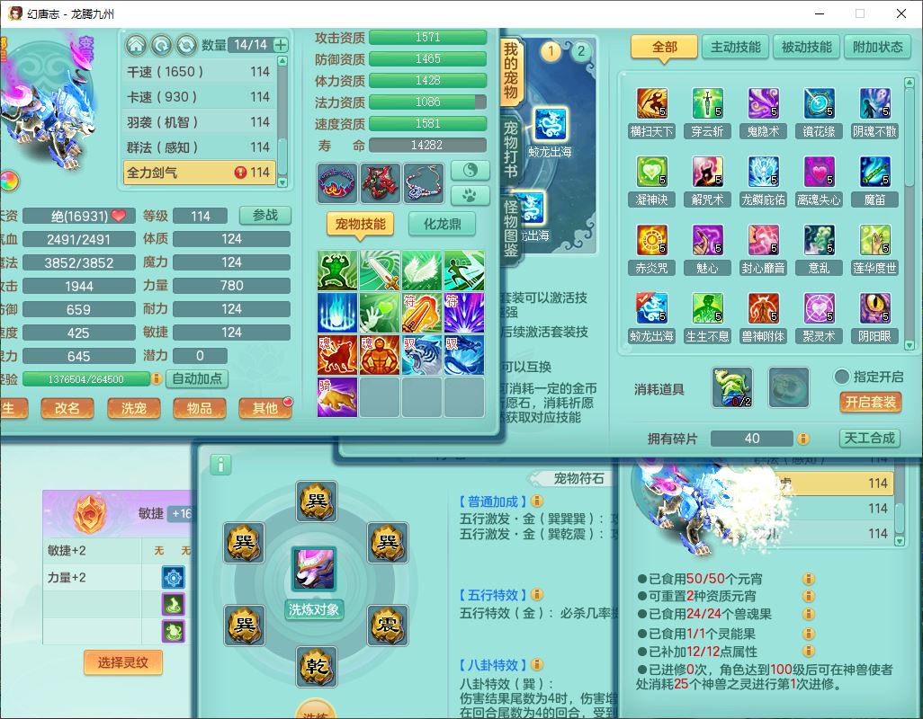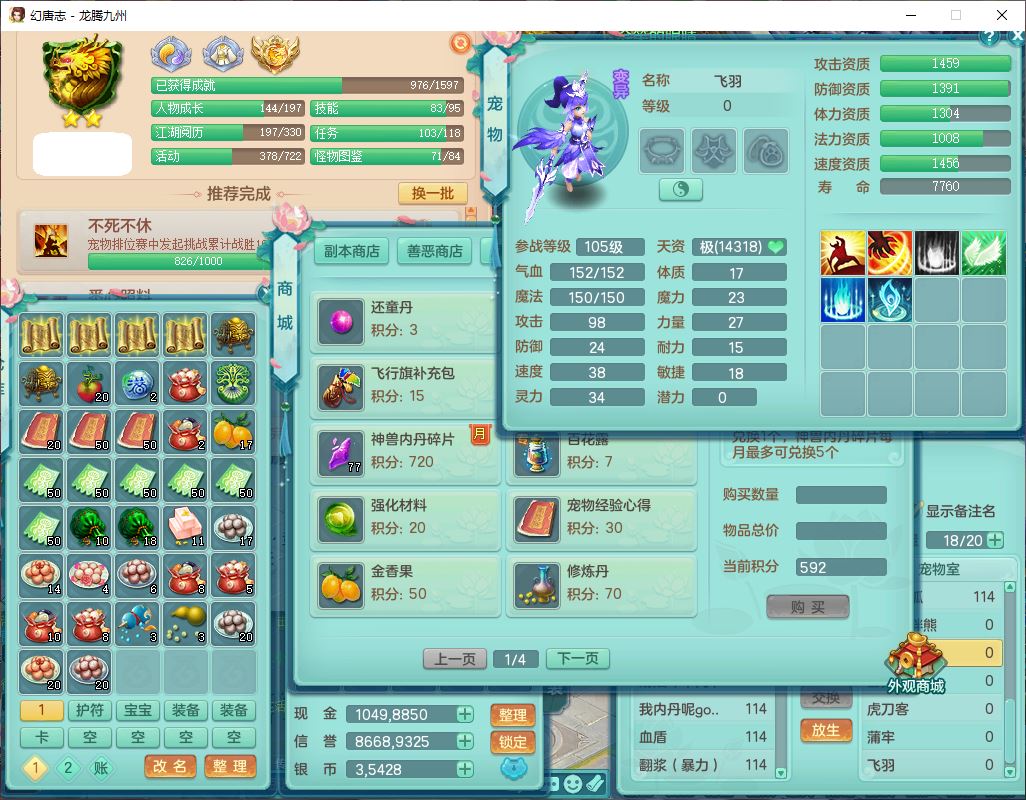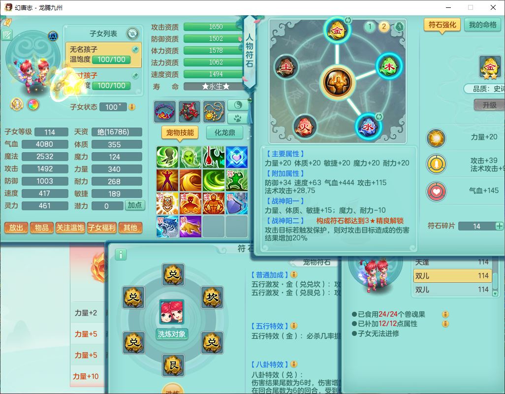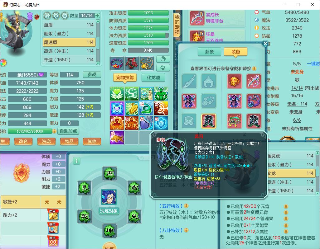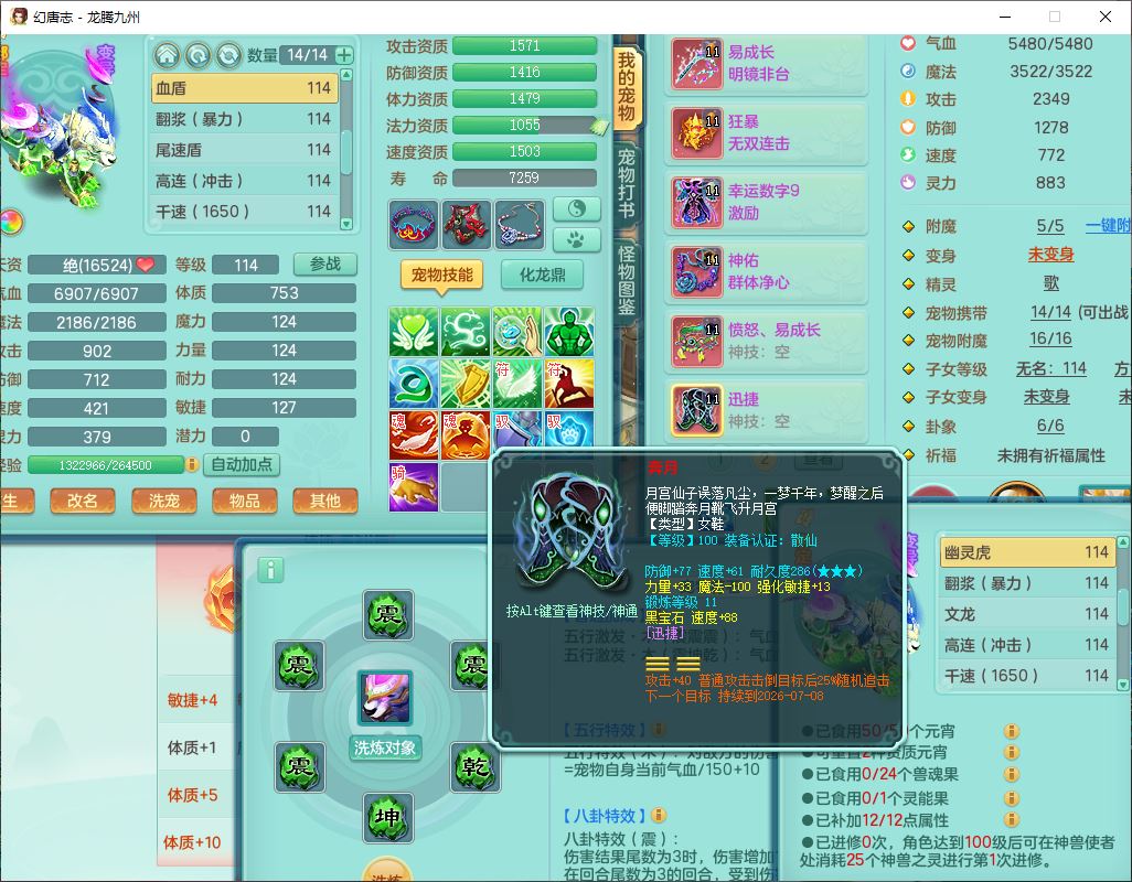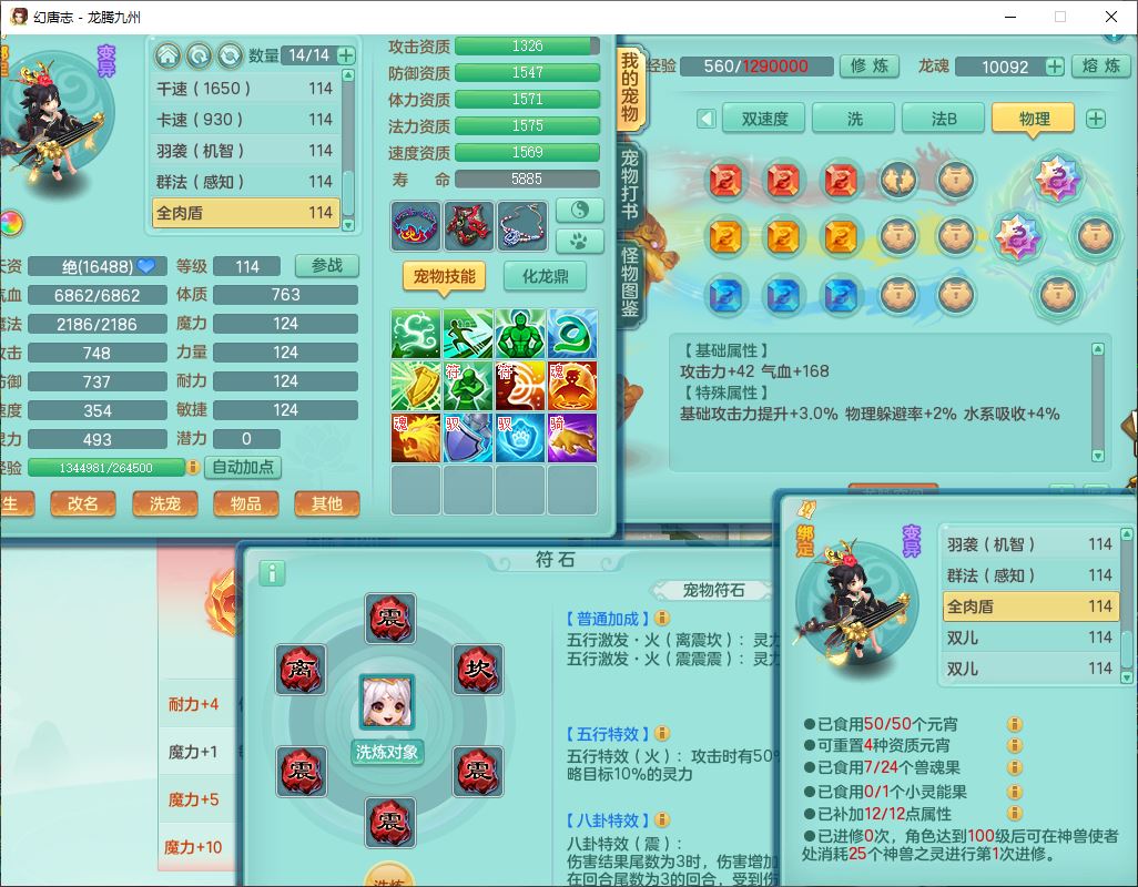 24354龙腾九州109女无名【潜龙号+暴龙洪荒】精灵歌,1龙(换、无内)1内丹龙马(破境)1建木1飞羽2羽袭,8觉醒1宠皮7六字9四字18只满果子,11红装备,Y明镜帽子,狂暴破血武器,幸运9激励衣服,神佑晶清项链,愤怒Y腰带,幸运4四海鞋子,鼎3.0+42+168,2套符石,57天月卡,永久头饰、精灵皮肤,31个内丹碎片,1双人坐骑