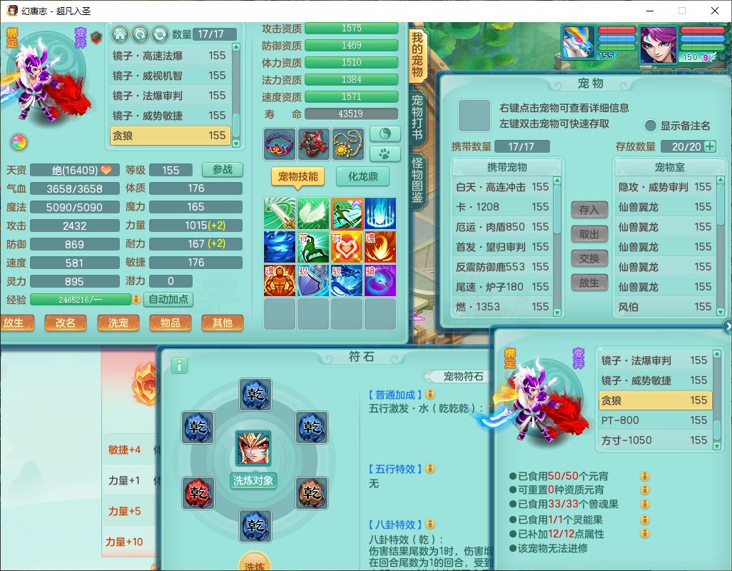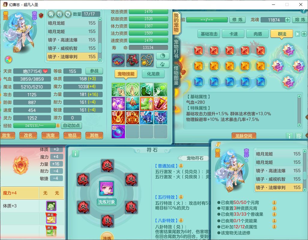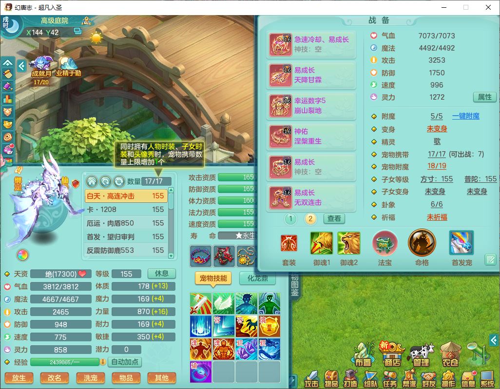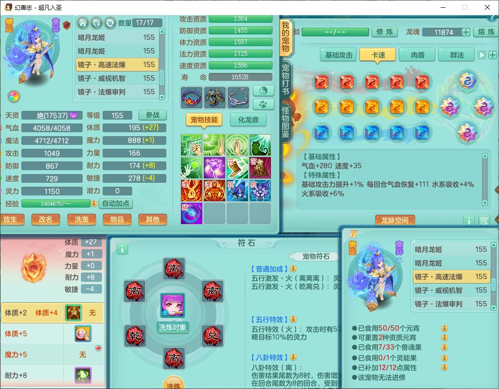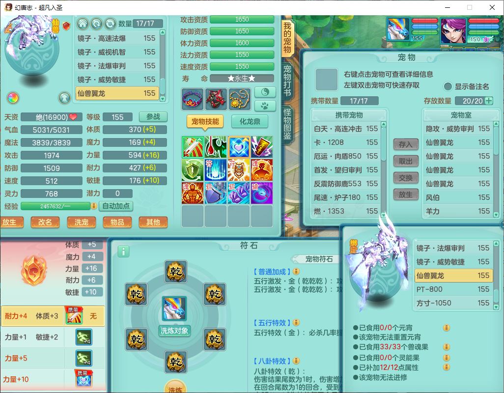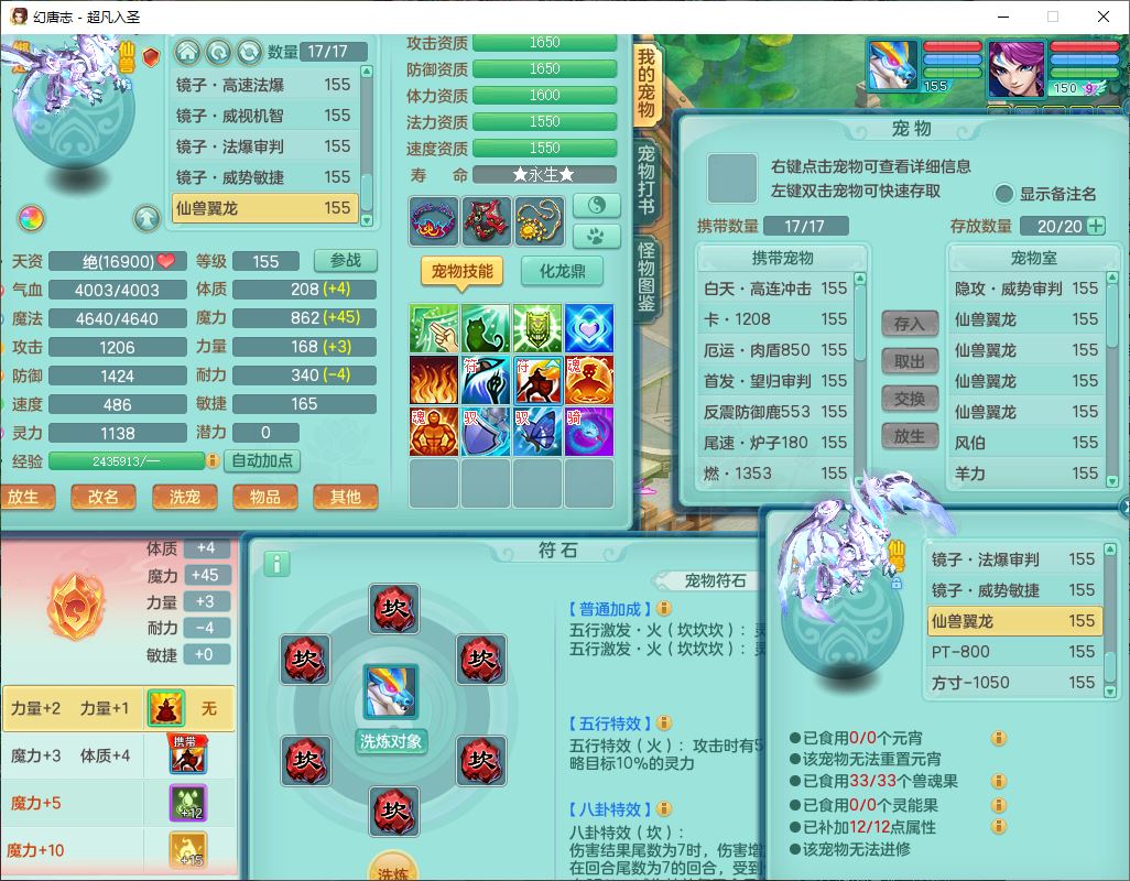 62443超凡入圣159男万兽【潜龙在渊】精灵歌,4位靓号,7龙(1换)2内5镜花3龙姬1望归1金炉,8觉醒3宠皮(1幻灵果)13六字3五字7四字26只满果子,17格子,11红装备,急速冷却Y帽子,Y四海武器,幸运崩山衣服,神佑慈航项链,Y破血鞋子,一套法系装备,法爆武器,Y明镜衣服,五雷帽子,272Y项链,法缭鞋子,鼎5.5+70+280,145天月卡,房屋159,永久外观、精灵皮肤。13个内丹碎片,6坐骑(2双人飞行)
