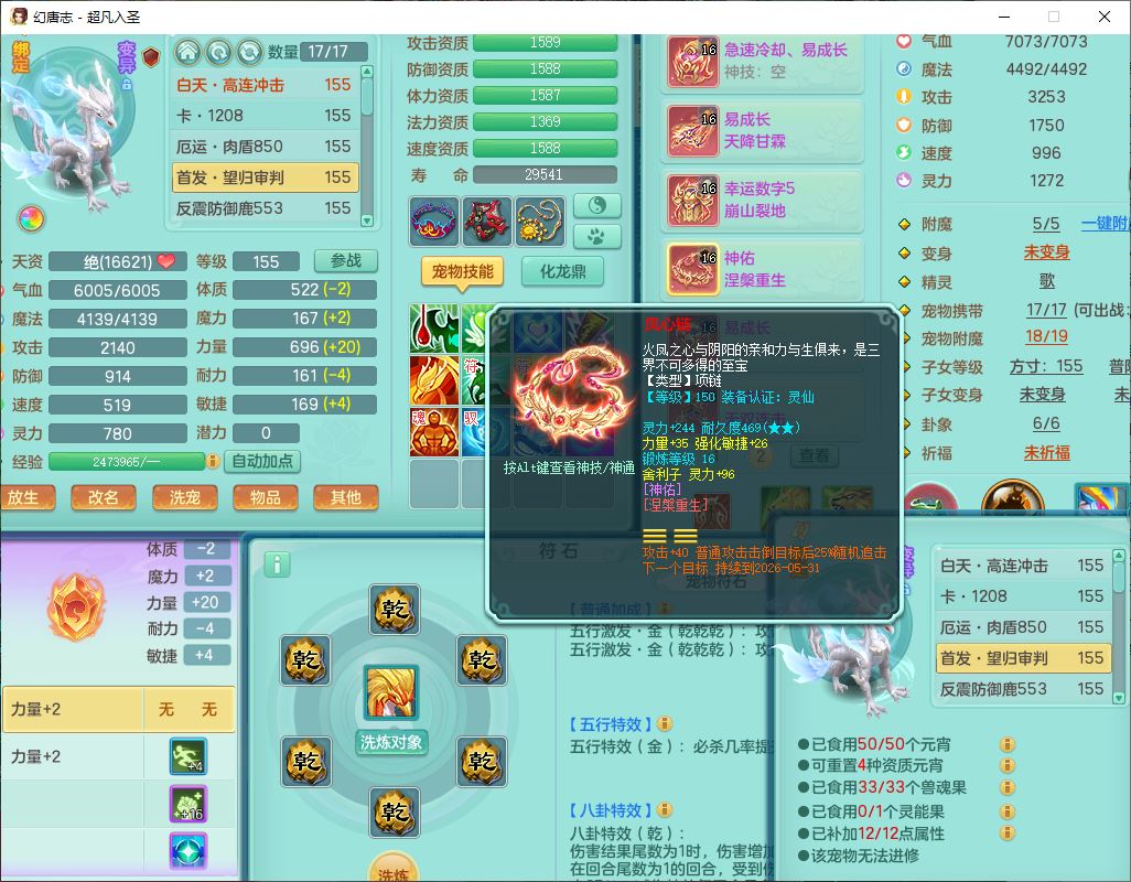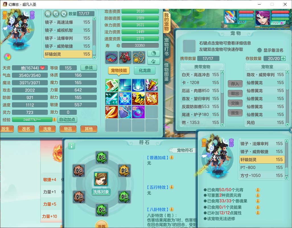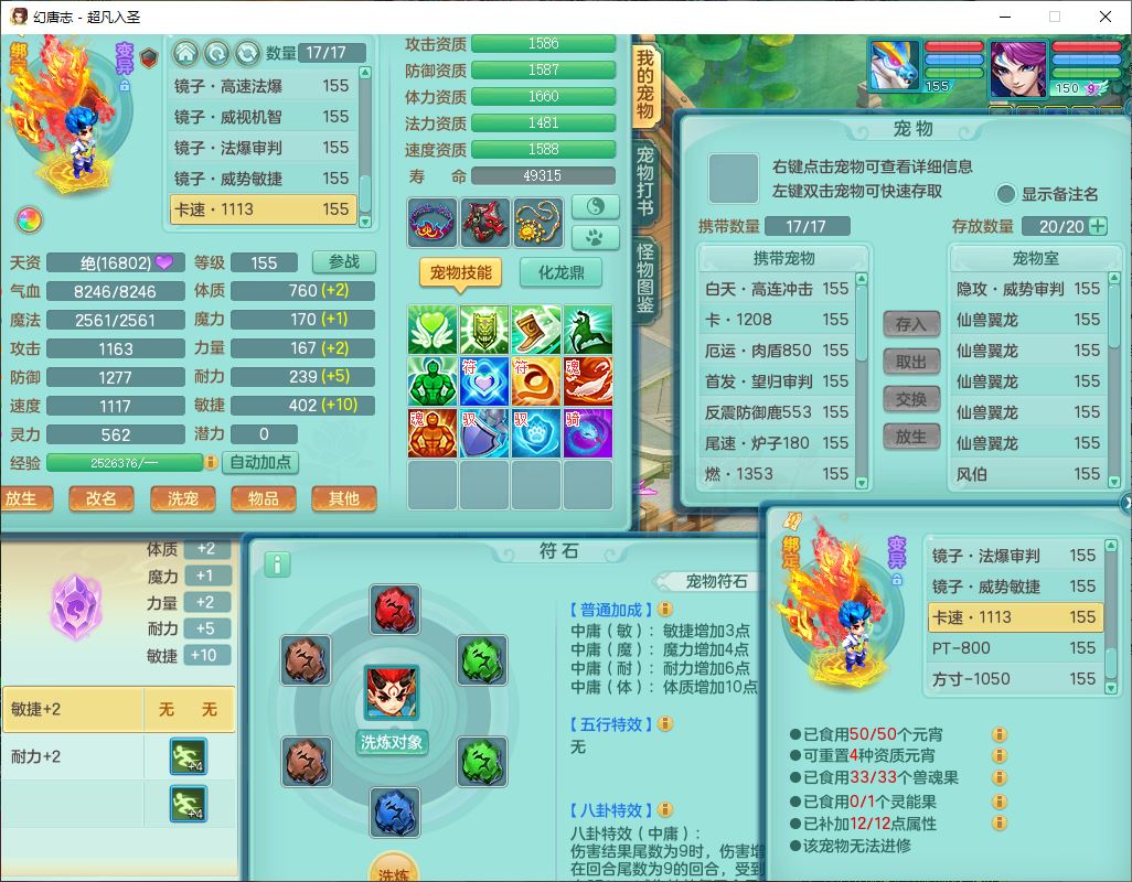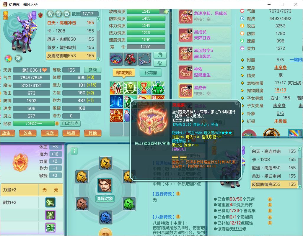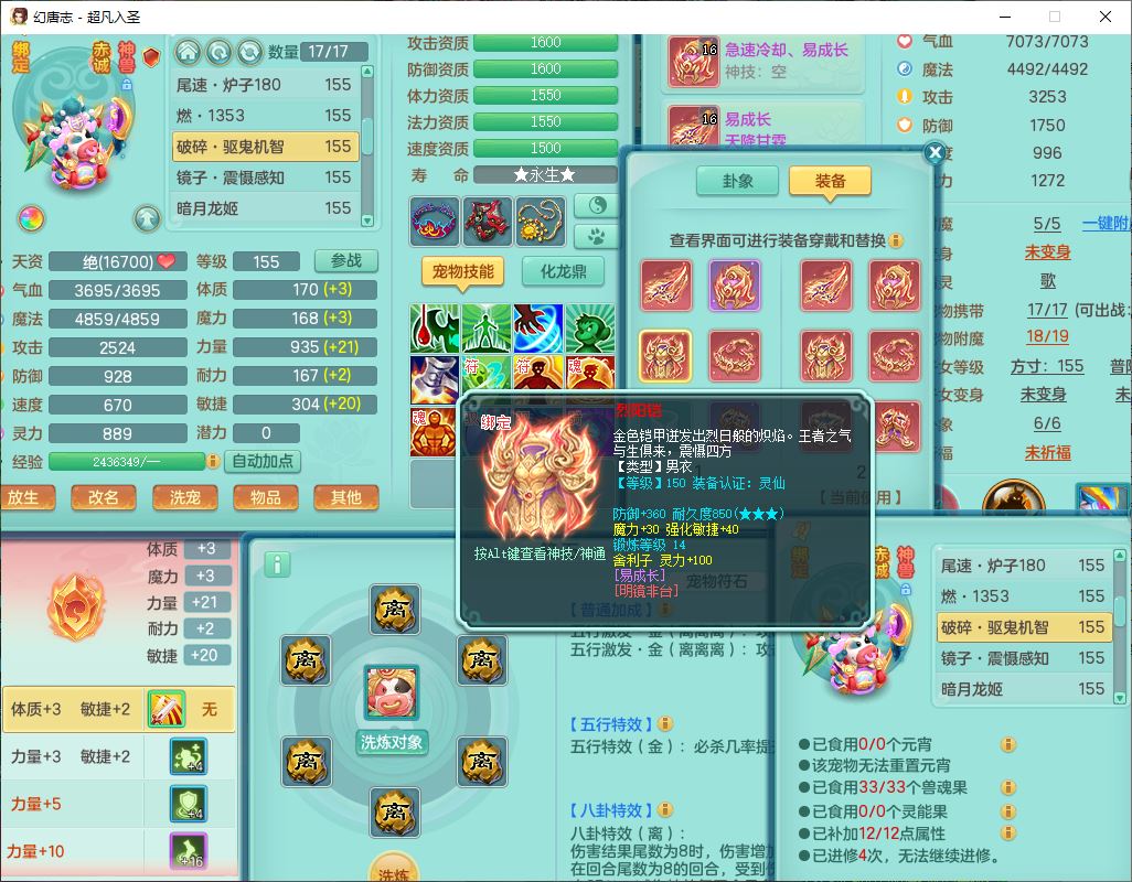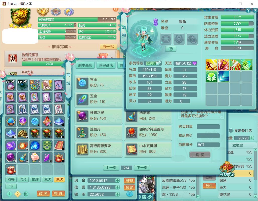62443超凡入圣159男万兽【潜龙在渊】精灵歌,4位靓号,7龙(1换)2内5镜花3龙姬1望归1金炉,8觉醒3宠皮(1幻灵果)13六字3五字7四字26只满果子,17格子,11红装备,急速冷却Y帽子,Y四海武器,幸运崩山衣服,神佑慈航项链,Y破血鞋子,一套法系装备,法爆武器,Y明镜衣服,五雷帽子,272Y项链,法缭鞋子,鼎5.5+70+280,145天月卡,房屋159,永久外观、精灵皮肤。13个内丹碎片,6坐骑(2双人飞行)